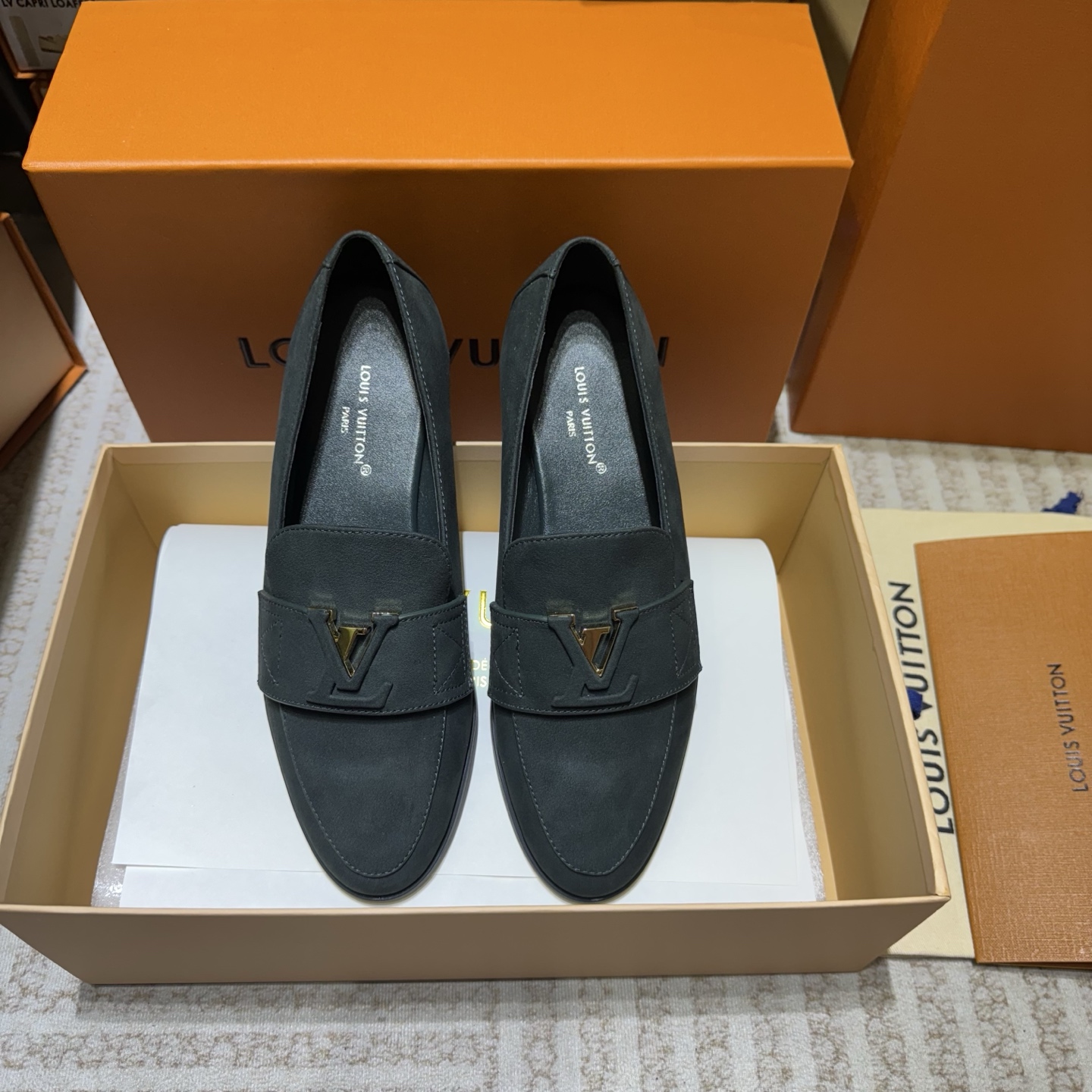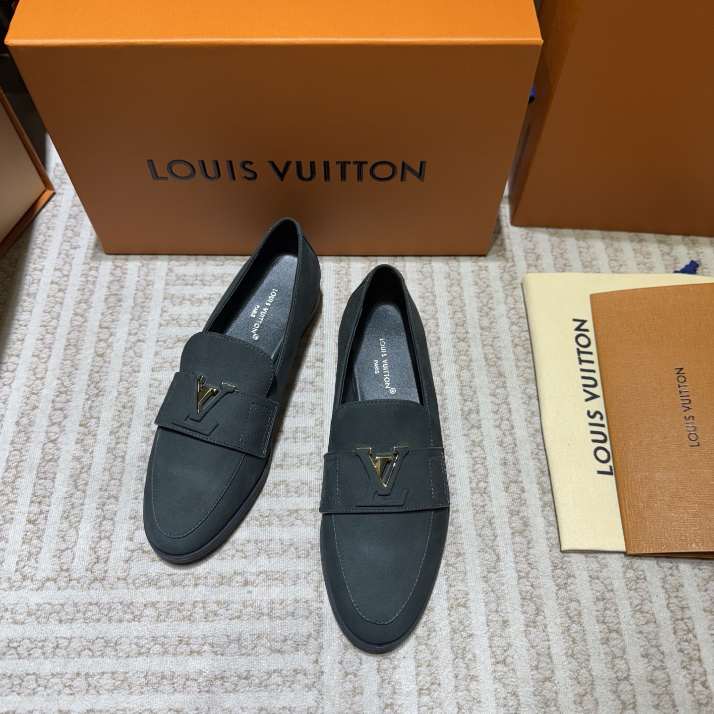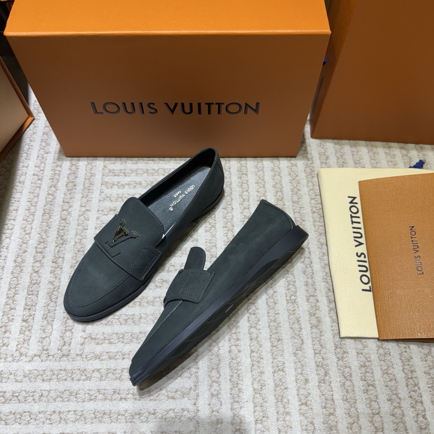 这款鞋子是AAAAA 1:1 质量 (非常棒). 使用了和原版一模一样的材料. 商标部分也保持了和路易威登/Louis Vuitton一样. 图片拍摄是实物鞋子拍摄, 您所收到的实物保证和我们图片一模一样.