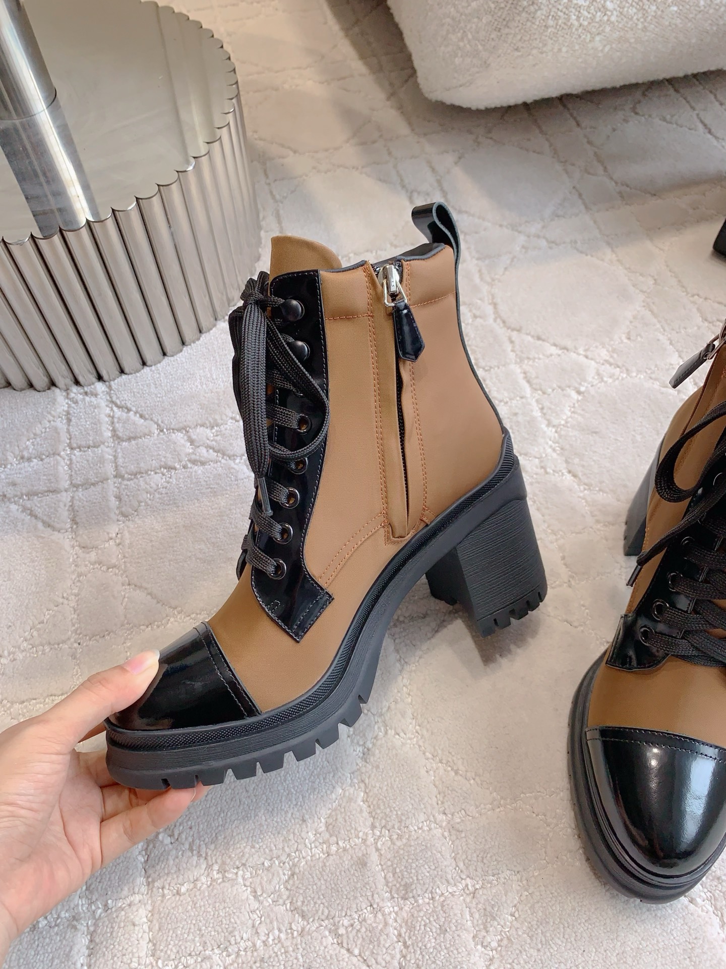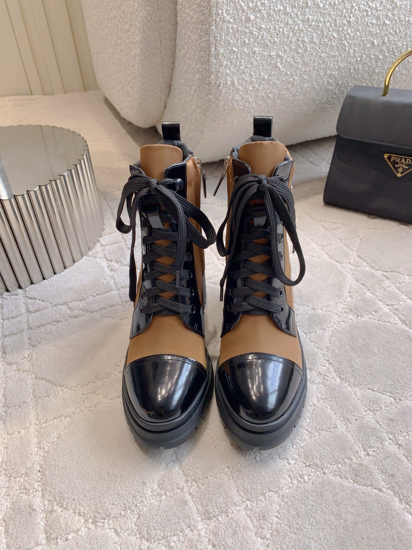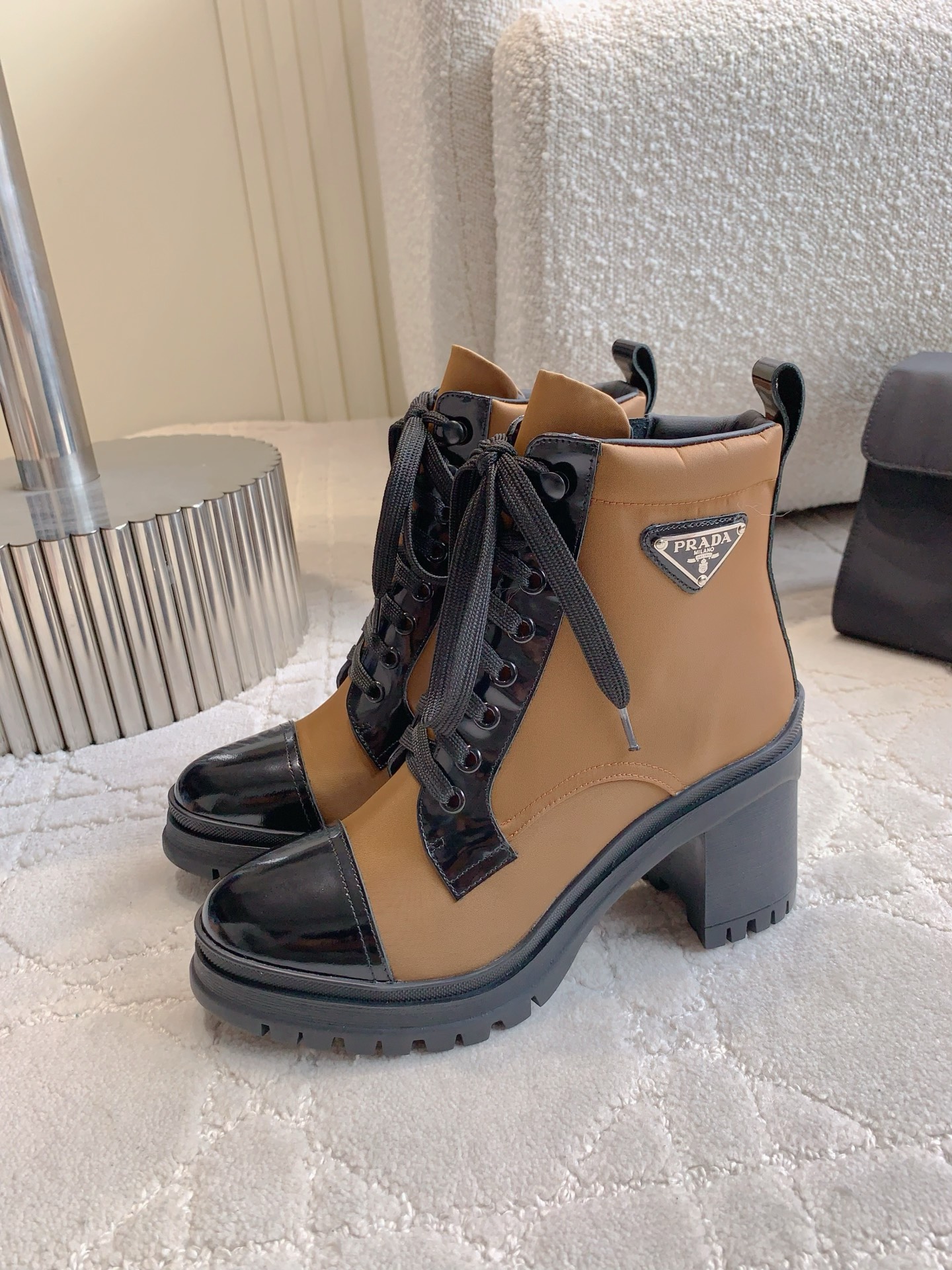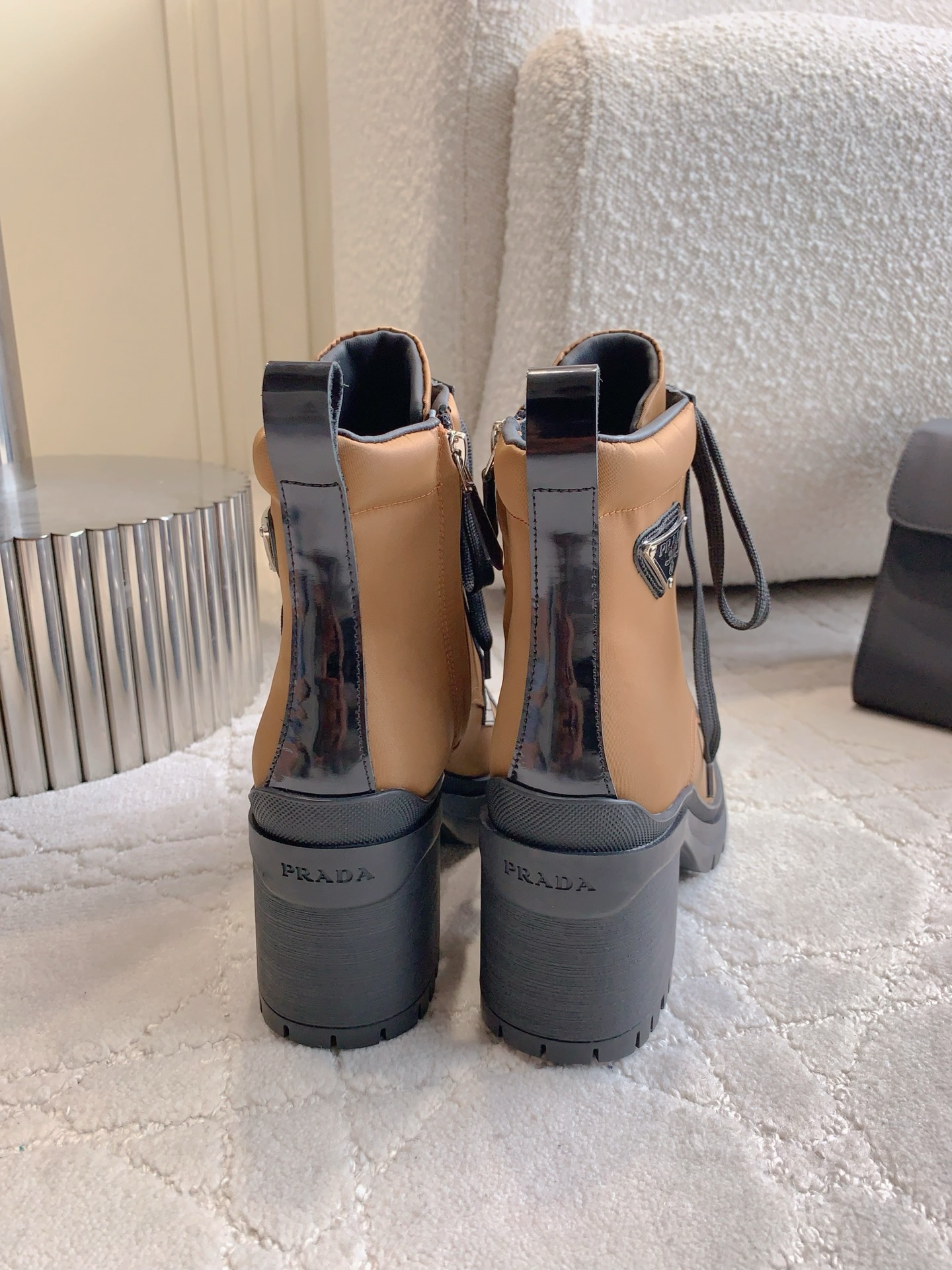 这款鞋子是AAAAA 1:1 质量 (非常棒). 使用了和原版一模一样的材料. 商标部分也保持了和普拉达/Prada一样. 图片拍摄是实物鞋子拍摄, 您所收到的实物保证和我们图片一模一样.