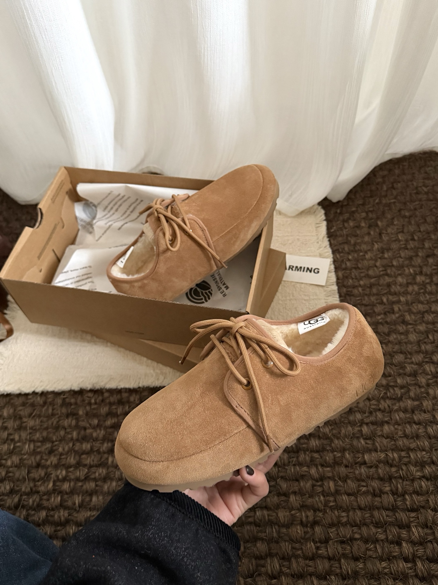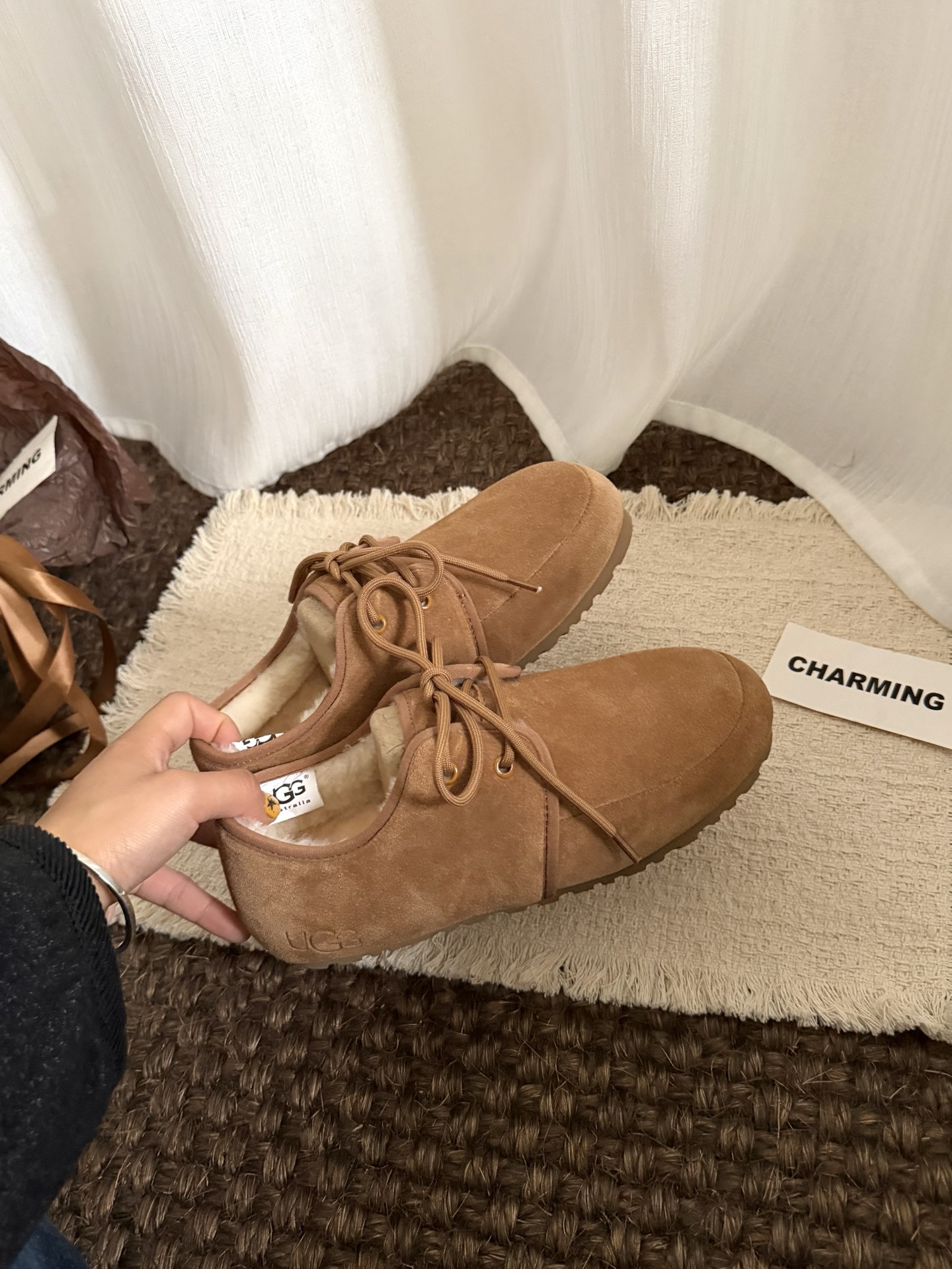 这款兒童鞋是AAAAA 1:1 质量 (非常棒). 使用了和原版一模一样的材料. 商标部分也保持了和UGG雪地靴一样. 图片拍摄是实物兒童鞋拍摄, 您所收到的实物保证和我们图片一模一样.