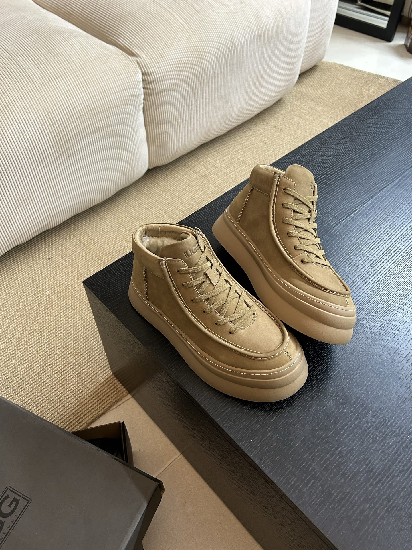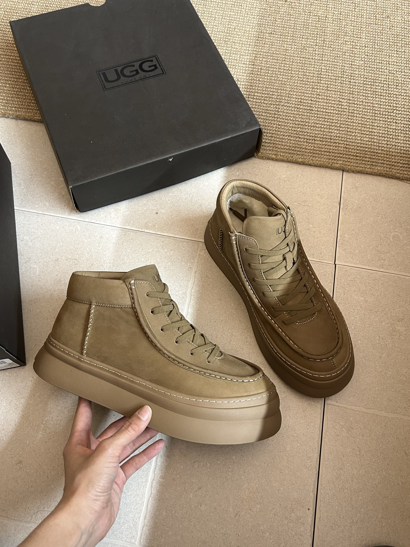 这款兒童鞋是AAAAA 1:1 质量 (非常棒). 使用了和原版一模一样的材料. 商标部分也保持了和UGG雪地靴一样. 图片拍摄是实物兒童鞋拍摄, 您所收到的实物保证和我们图片一模一样.