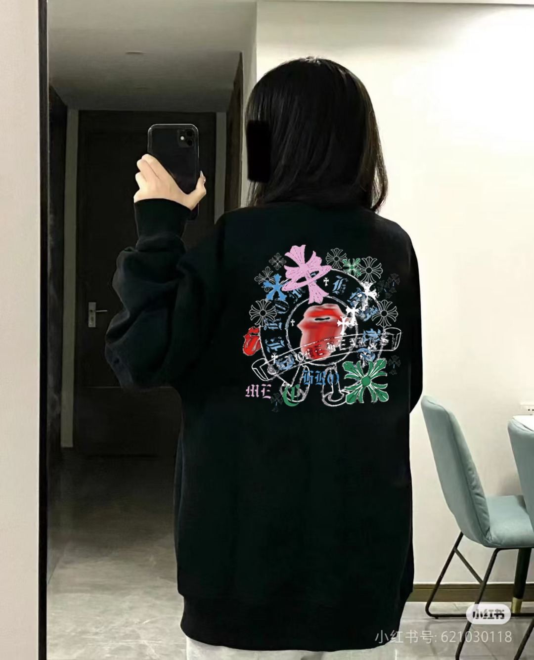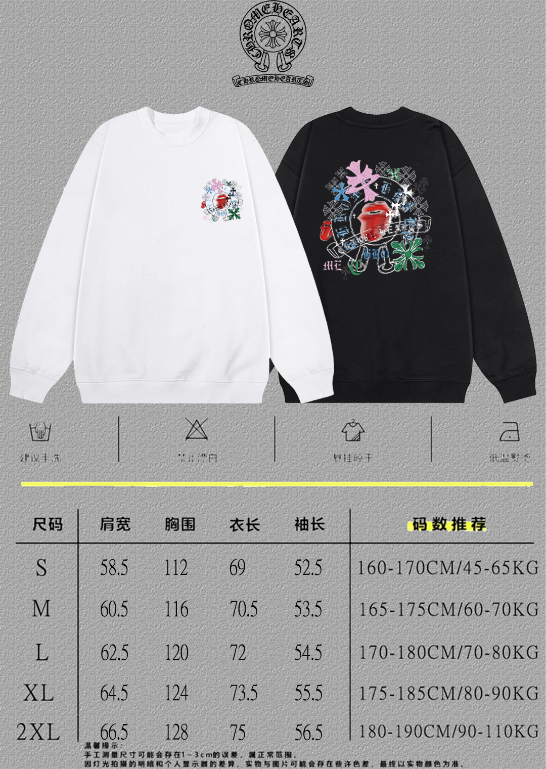 这款衣服是AAAAA 1:1 质量 (非常棒). 使用了和原版一模一样的材料. 商标部分也保持了和克罗心/Chrome Hearts一样. 图片拍摄是实物衣服拍摄, 您所收到的实物保证和我们图片一模一样.