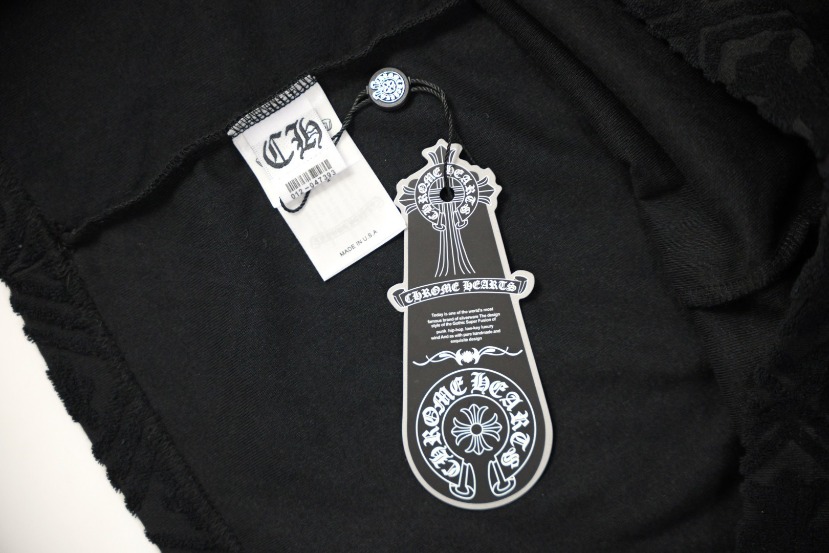 这款衣服是AAAAA 1:1 质量 (非常棒). 使用了和原版一模一样的材料. 商标部分也保持了和克罗心/Chrome Hearts一样. 图片拍摄是实物衣服拍摄, 您所收到的实物保证和我们图片一模一样.
