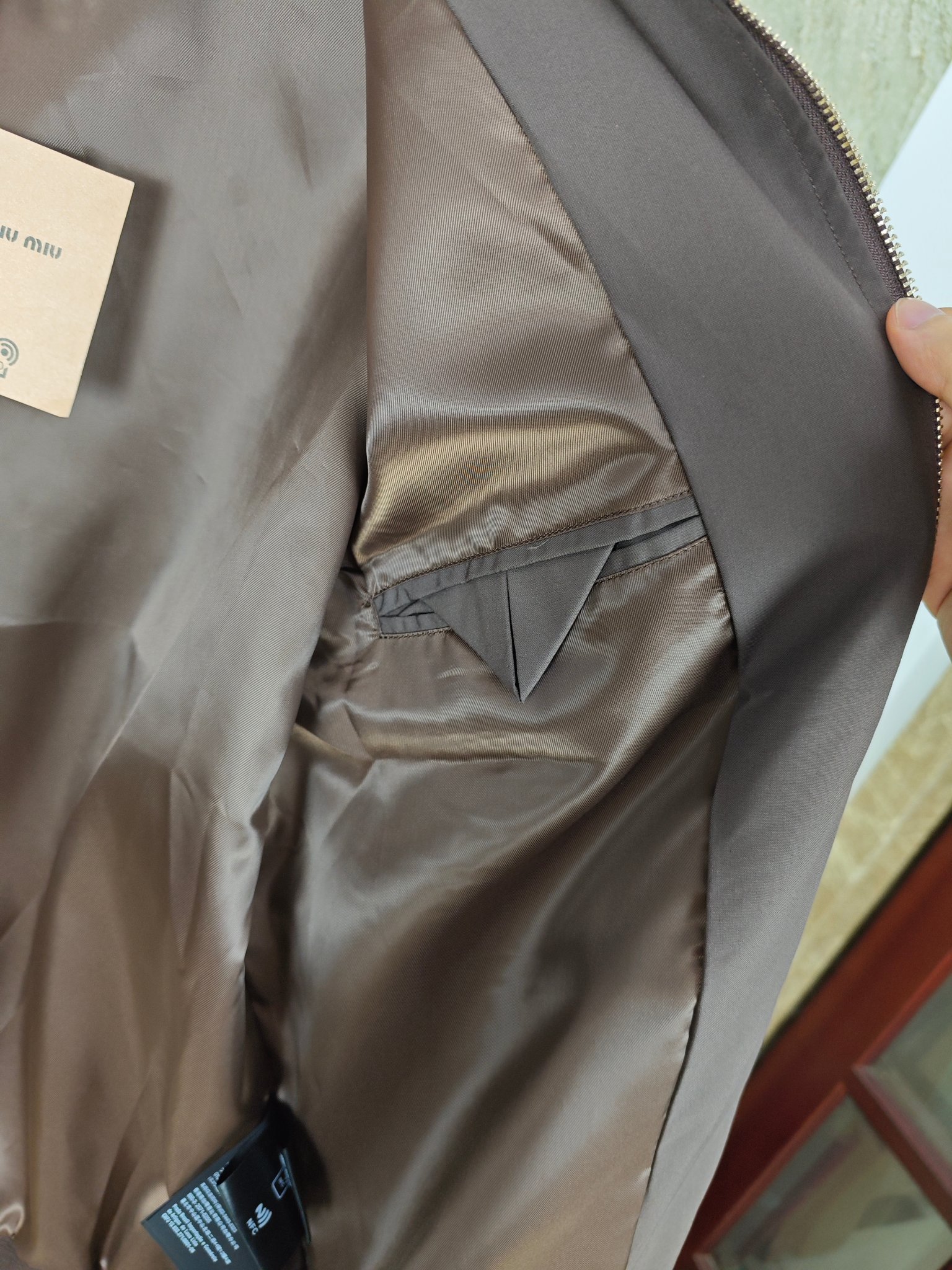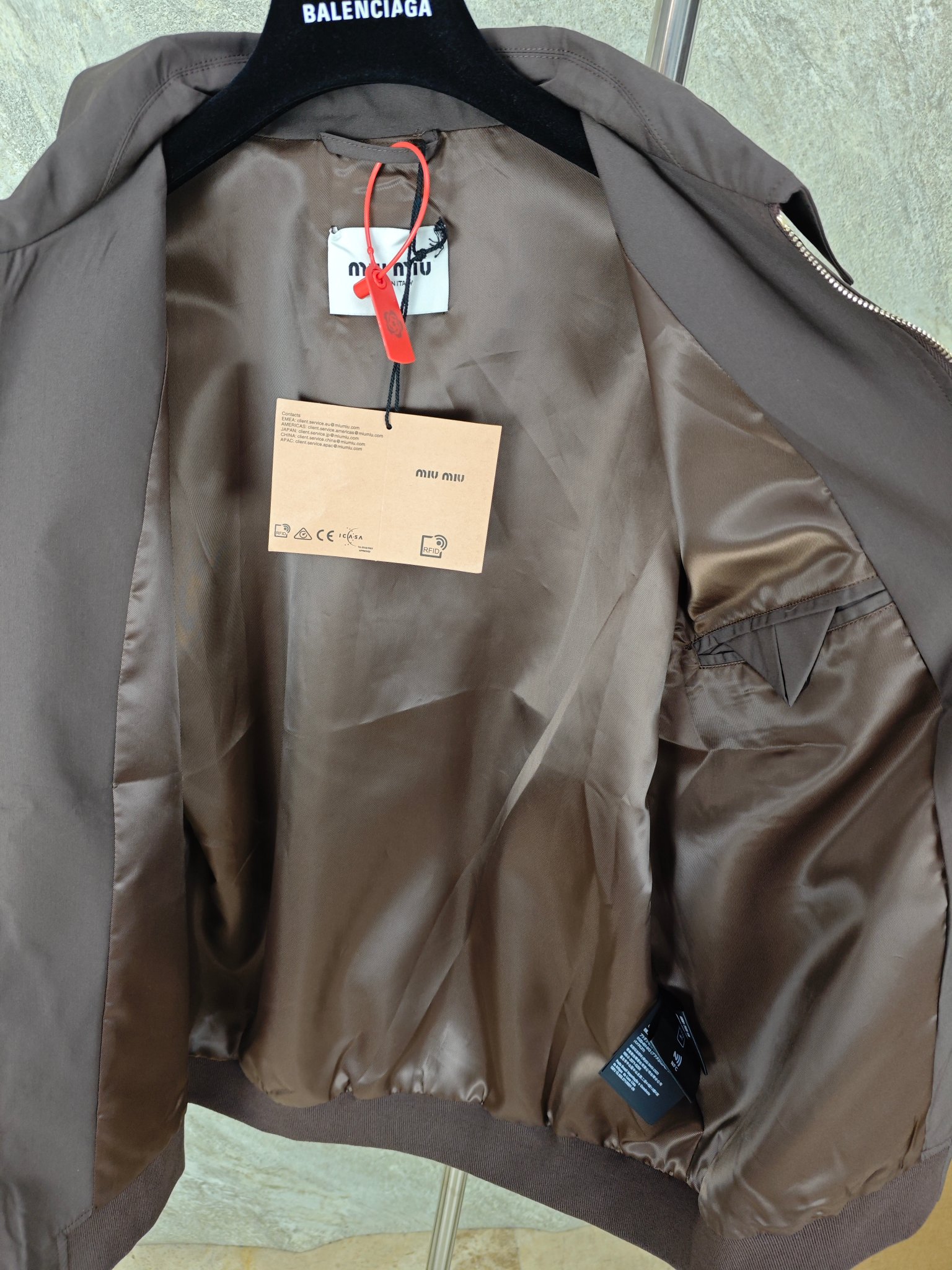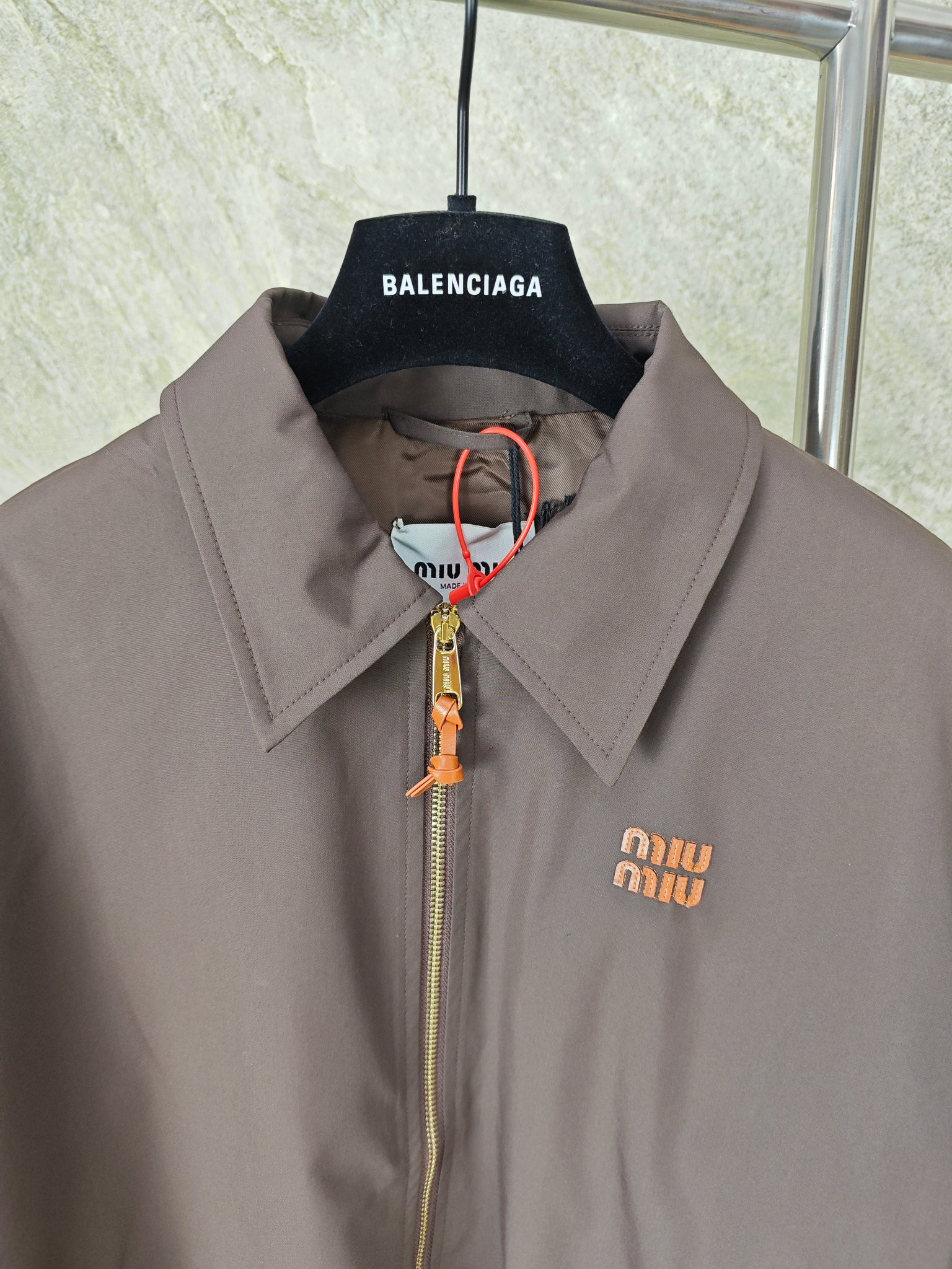 这款衣服是AAAAA 1:1 质量 (非常棒). 使用了和原版一模一样的材料. 商标部分也保持了和缪缪/Miu Miu一样. 图片拍摄是实物衣服拍摄, 您所收到的实物保证和我们图片一模一样.