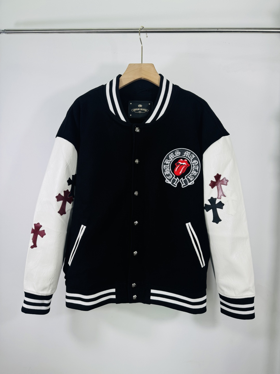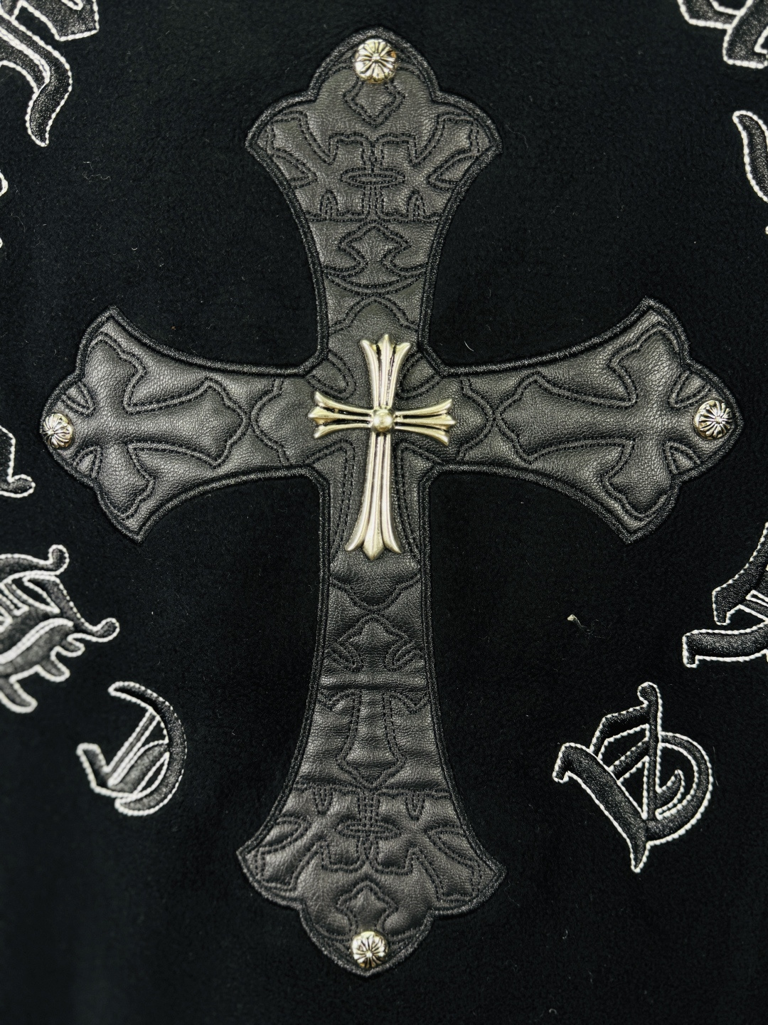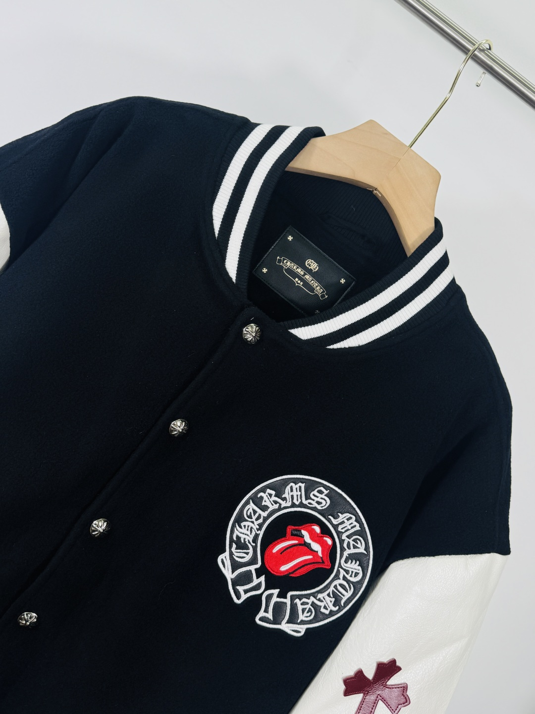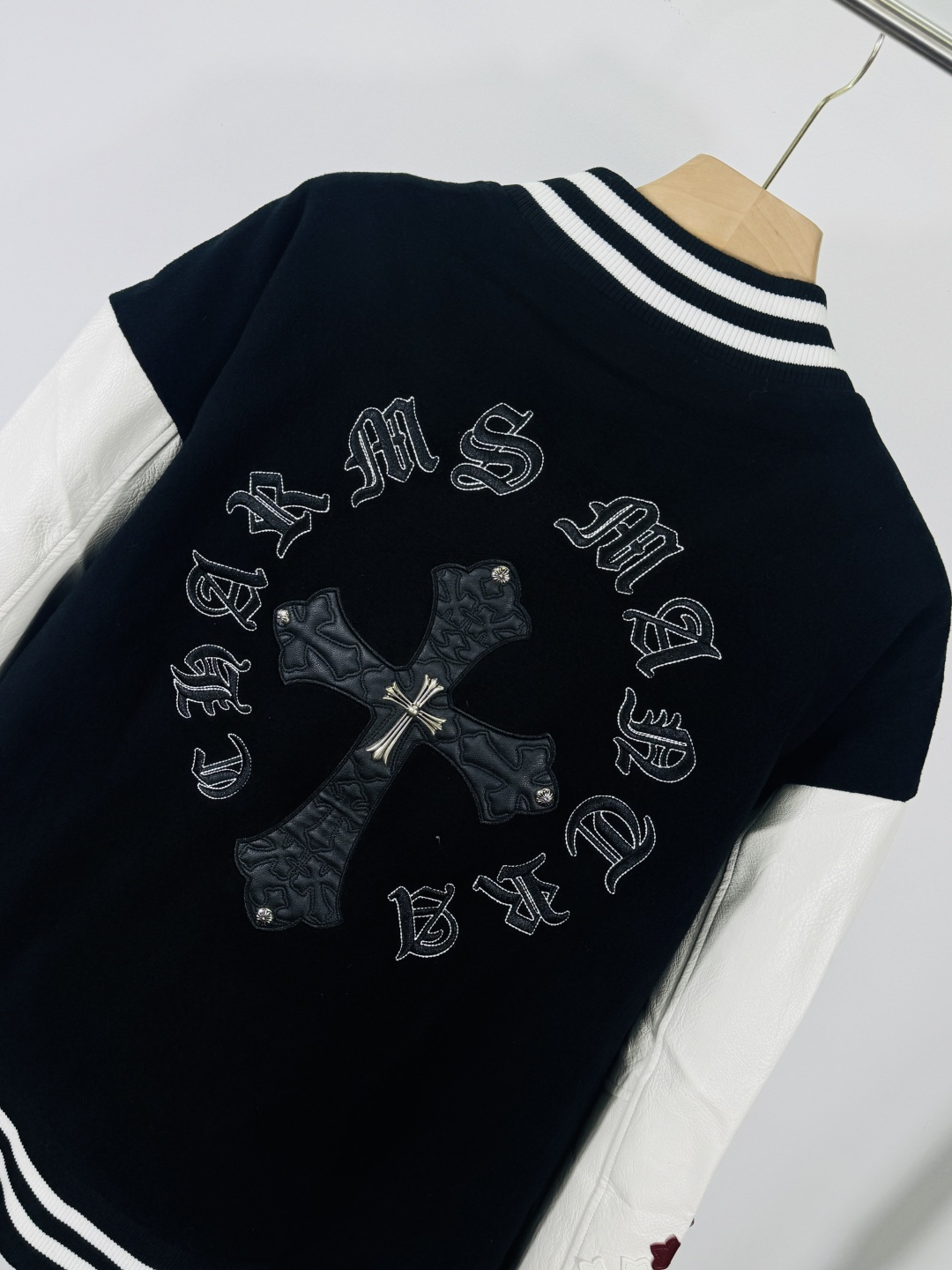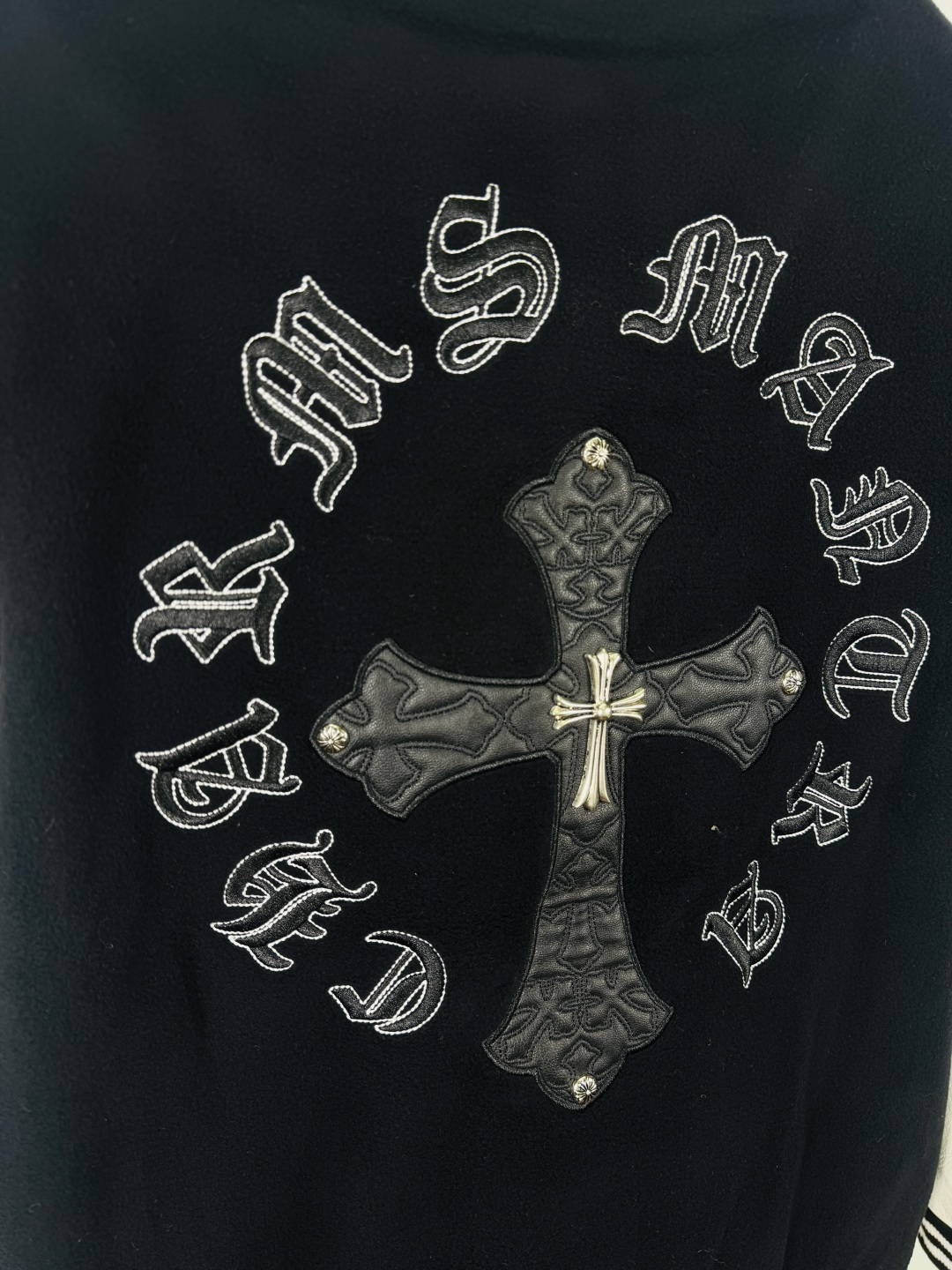 这款衣服是AAAAA 1:1 质量 (非常棒). 使用了和原版一模一样的材料. 商标部分也保持了和克罗心/Chrome Hearts一样. 图片拍摄是实物衣服拍摄, 您所收到的实物保证和我们图片一模一样.