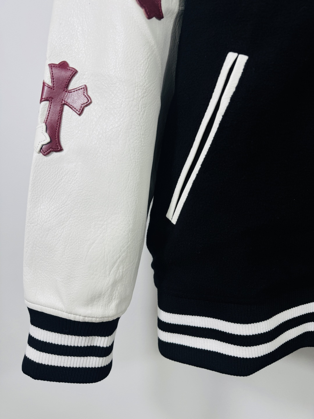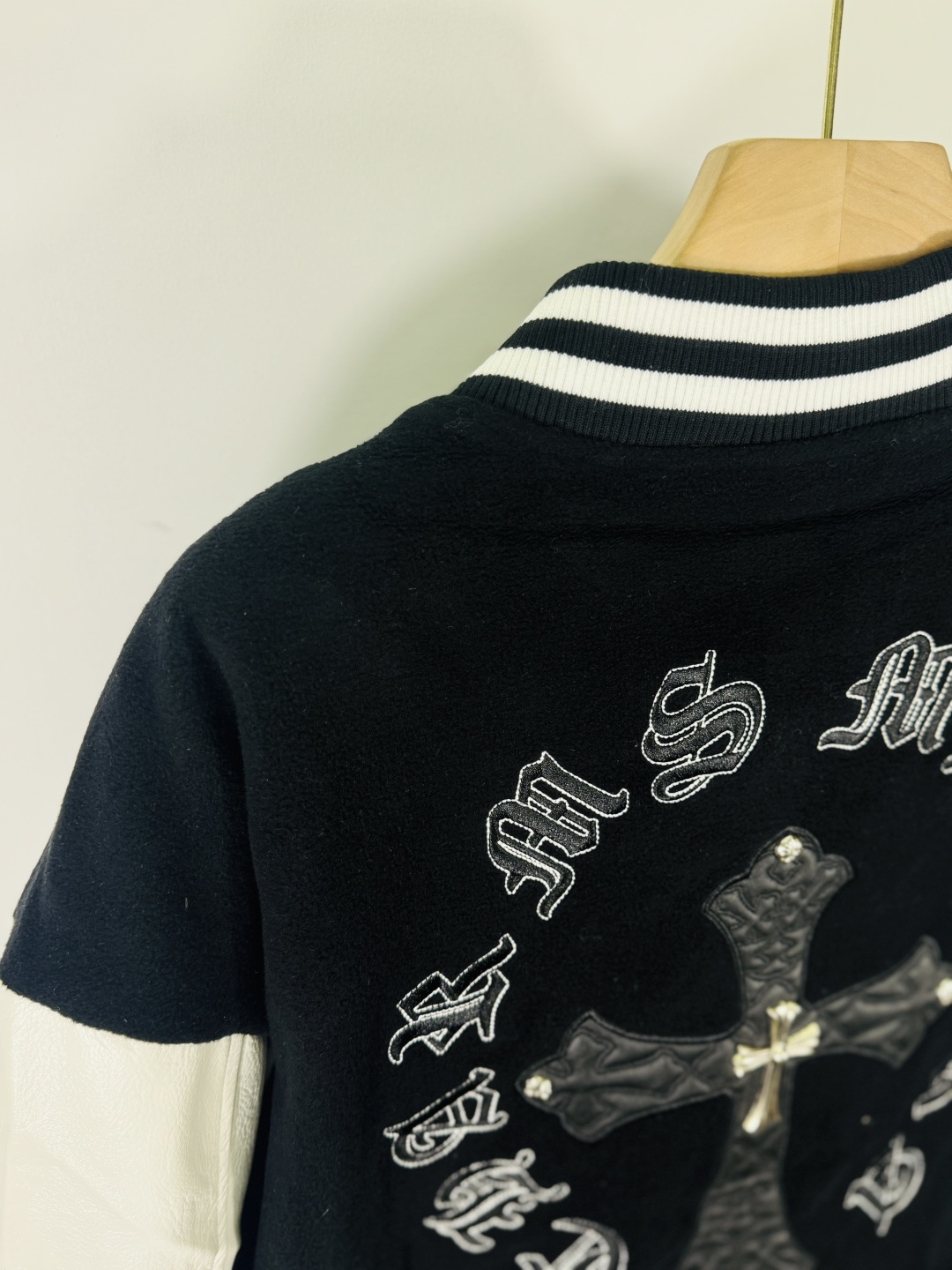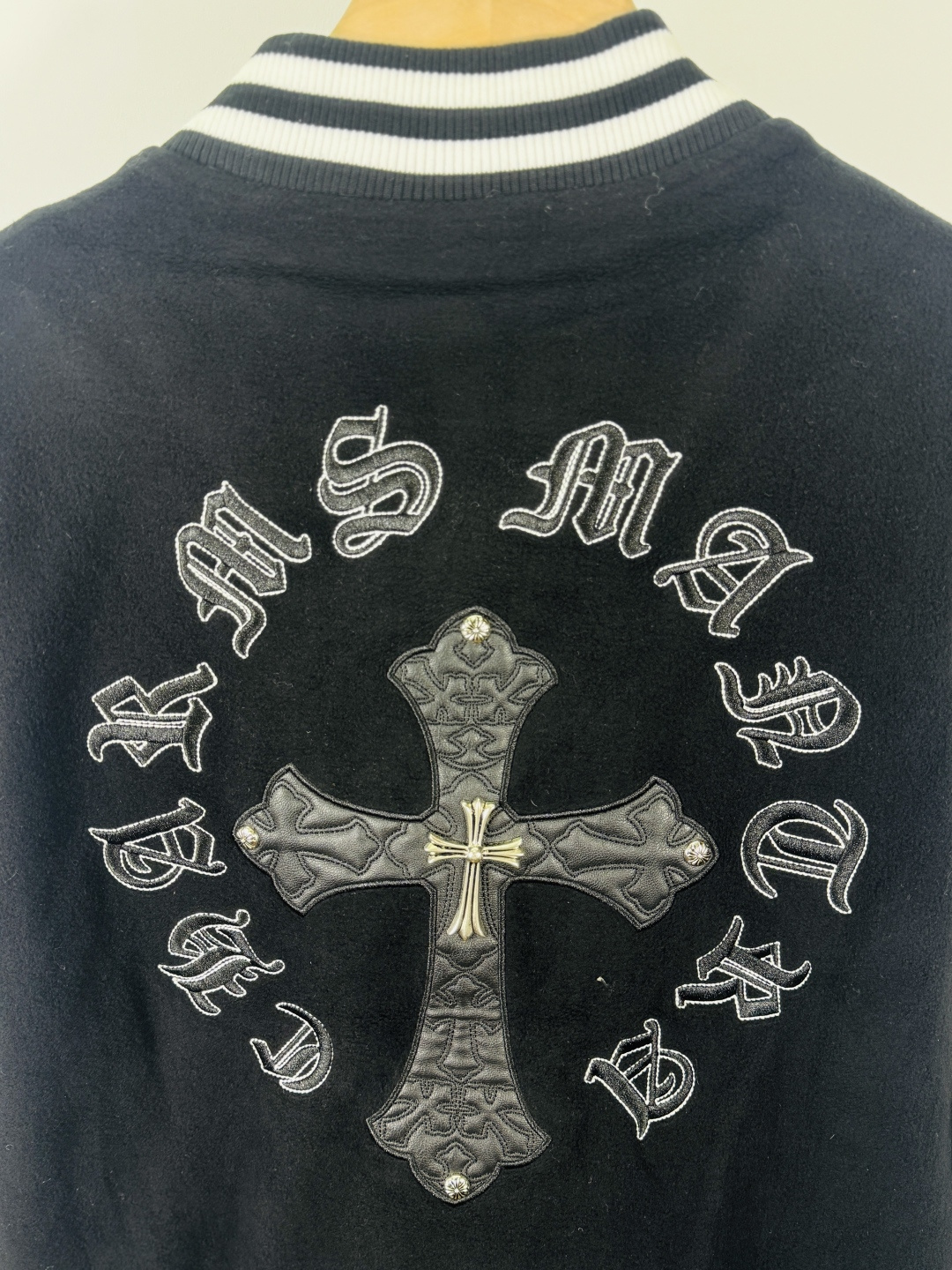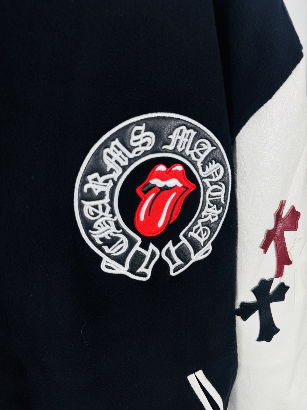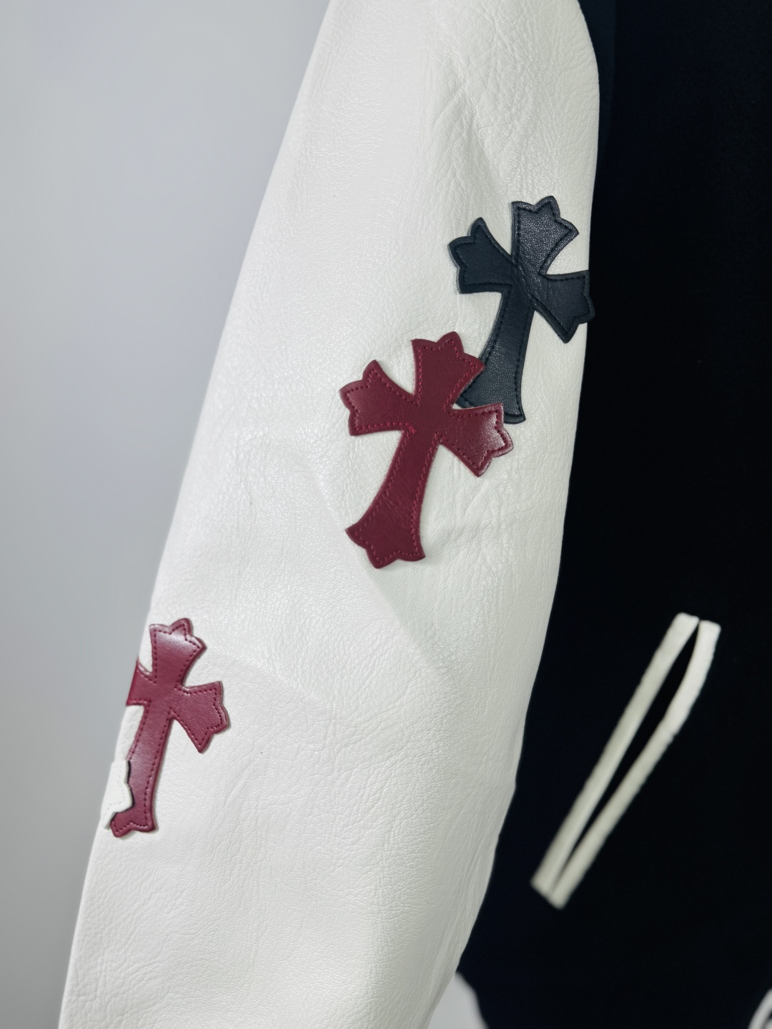 这款衣服是AAAAA 1:1 质量 (非常棒). 使用了和原版一模一样的材料. 商标部分也保持了和克罗心/Chrome Hearts一样. 图片拍摄是实物衣服拍摄, 您所收到的实物保证和我们图片一模一样.