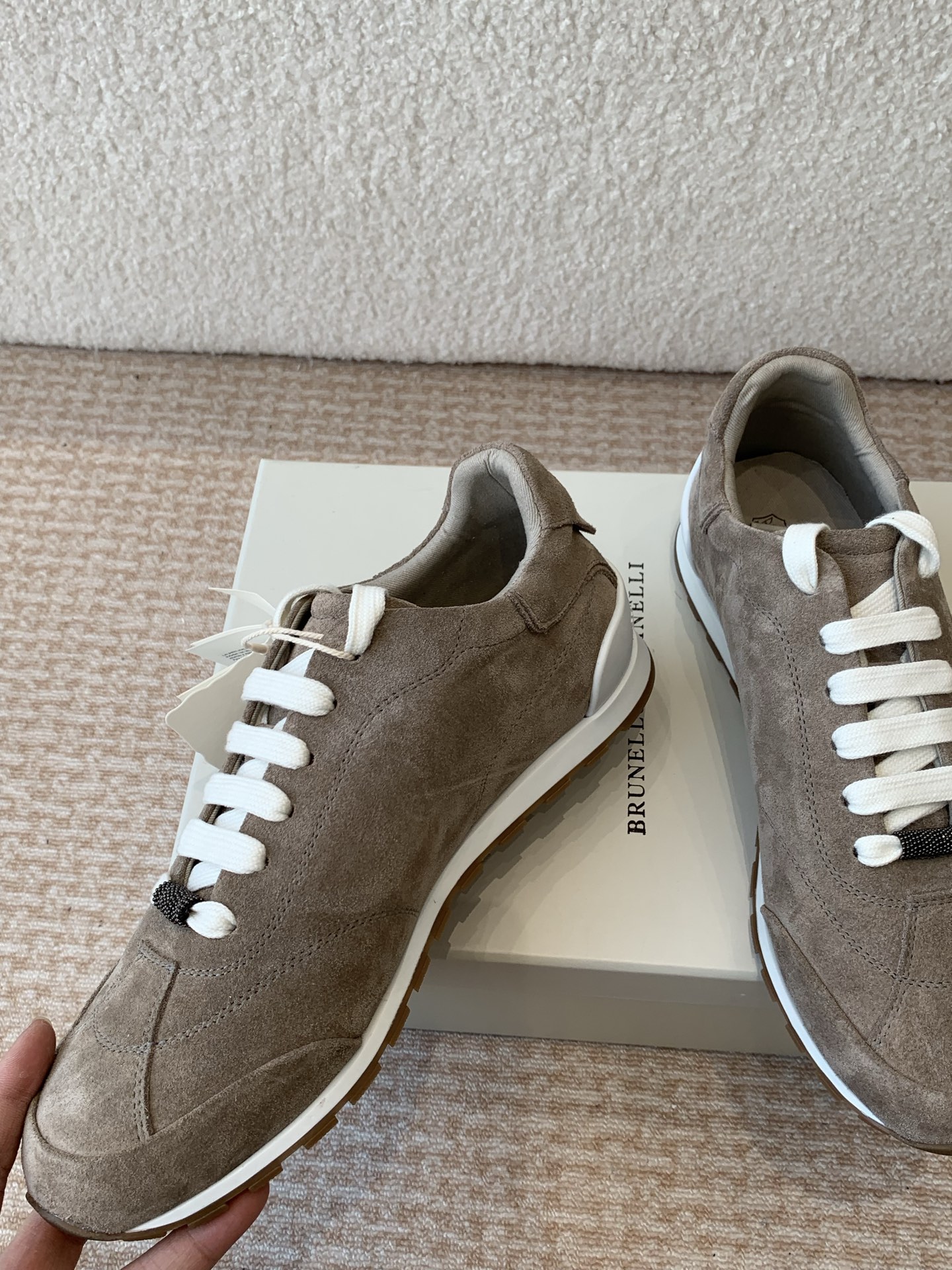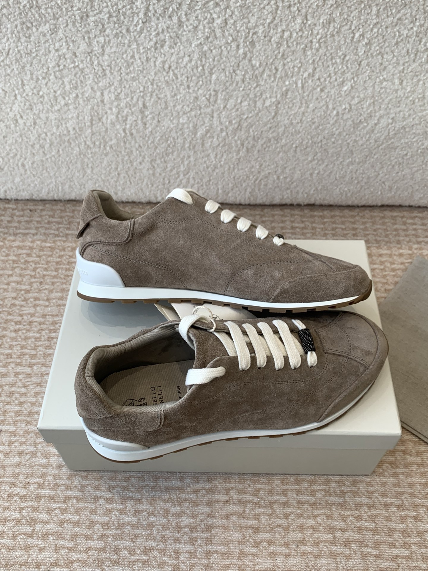 这款鞋子是AAAAA 1:1 质量 (非常棒). 使用了和原版一模一样的材料. 商标部分也保持了和Brunello Cucinelli一样. 图片拍摄是实物鞋子拍摄, 您所收到的实物保证和我们图片一模一样.