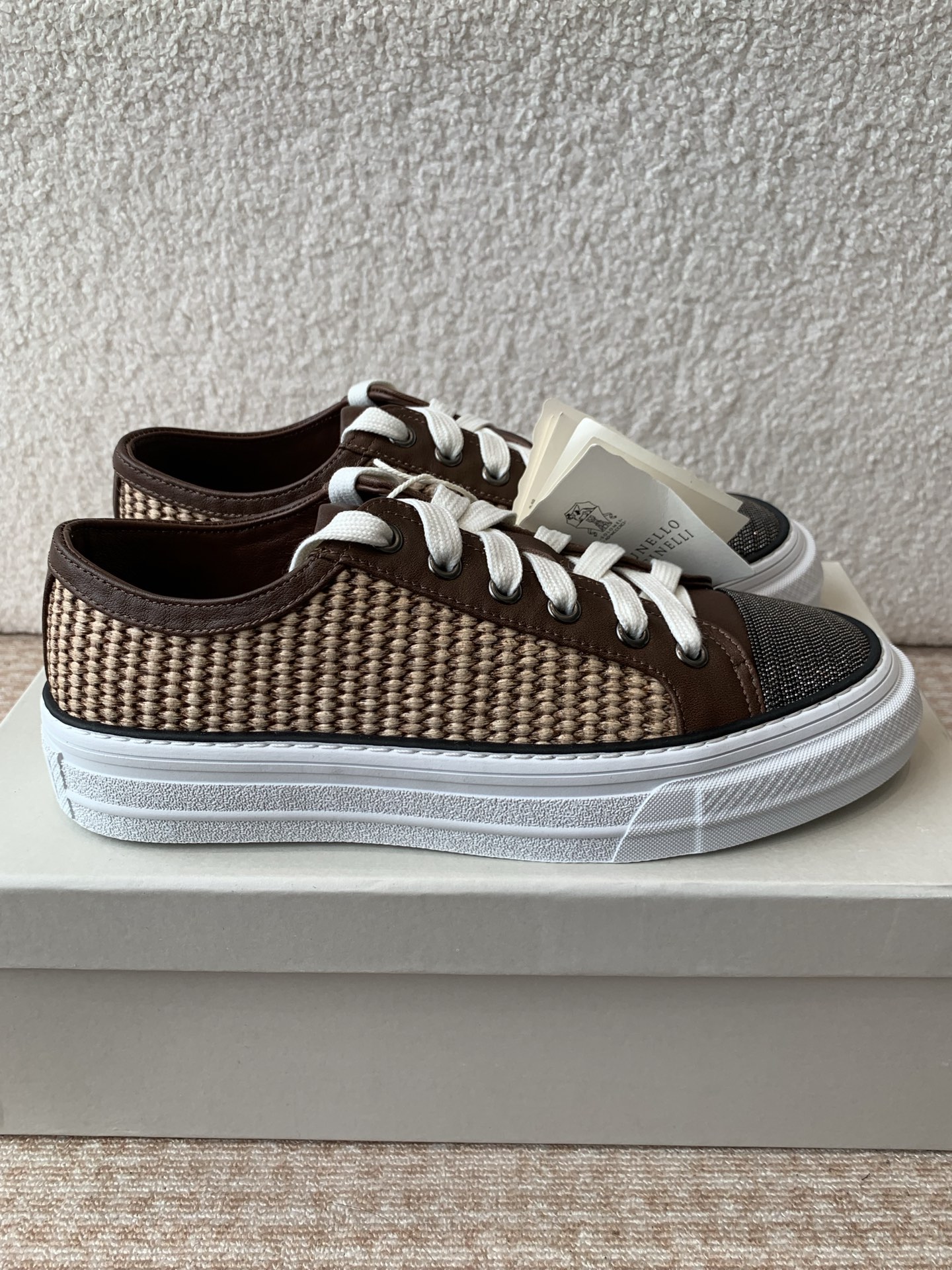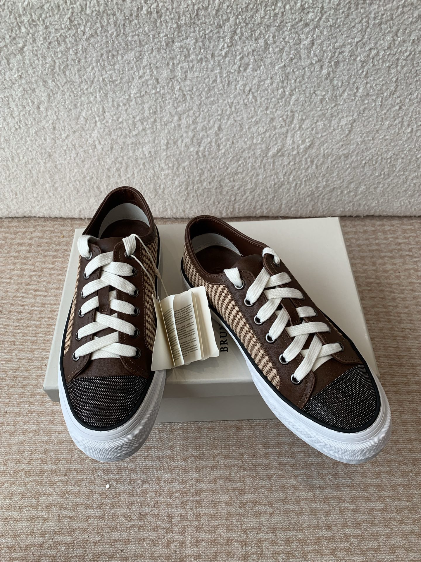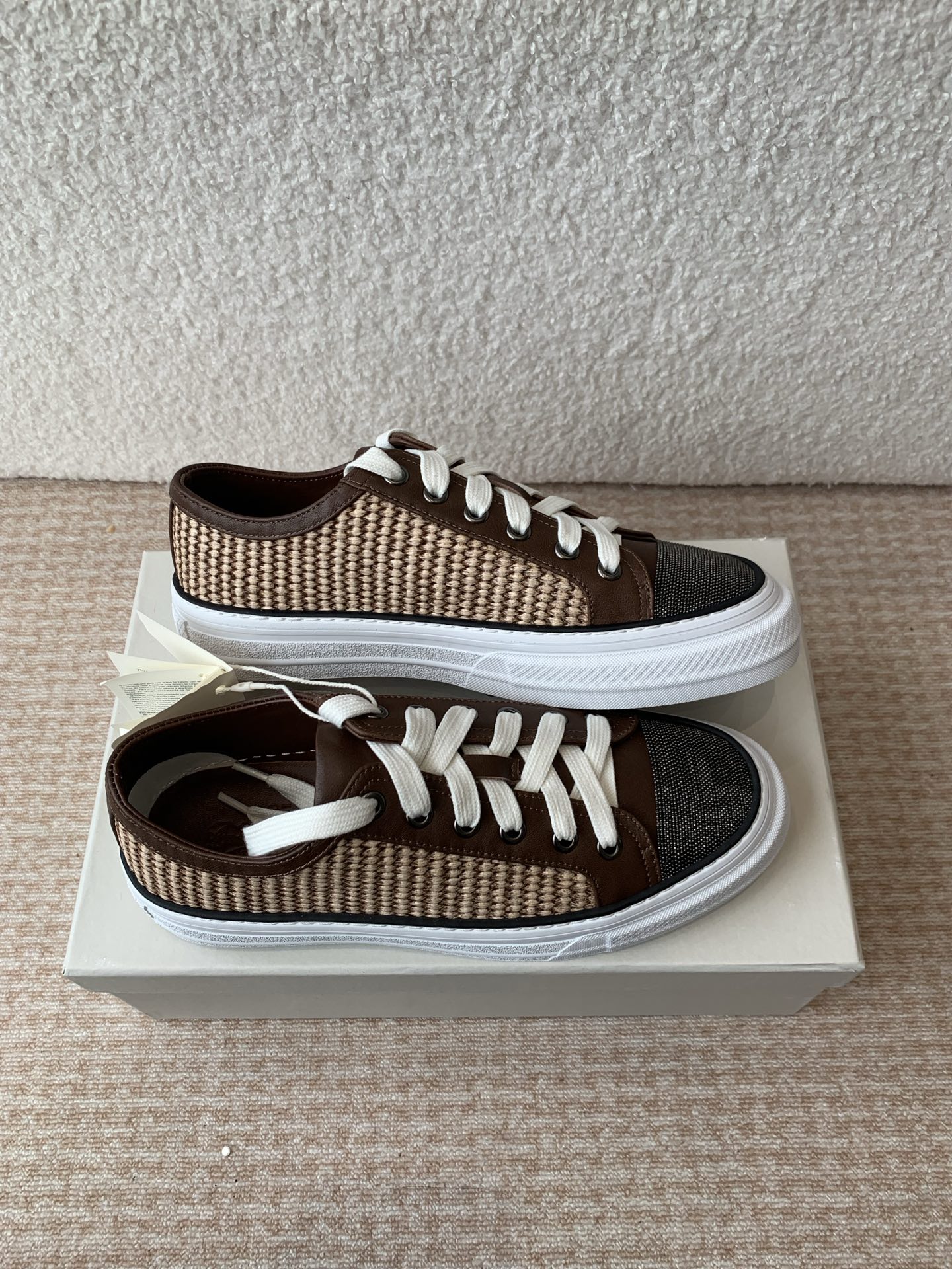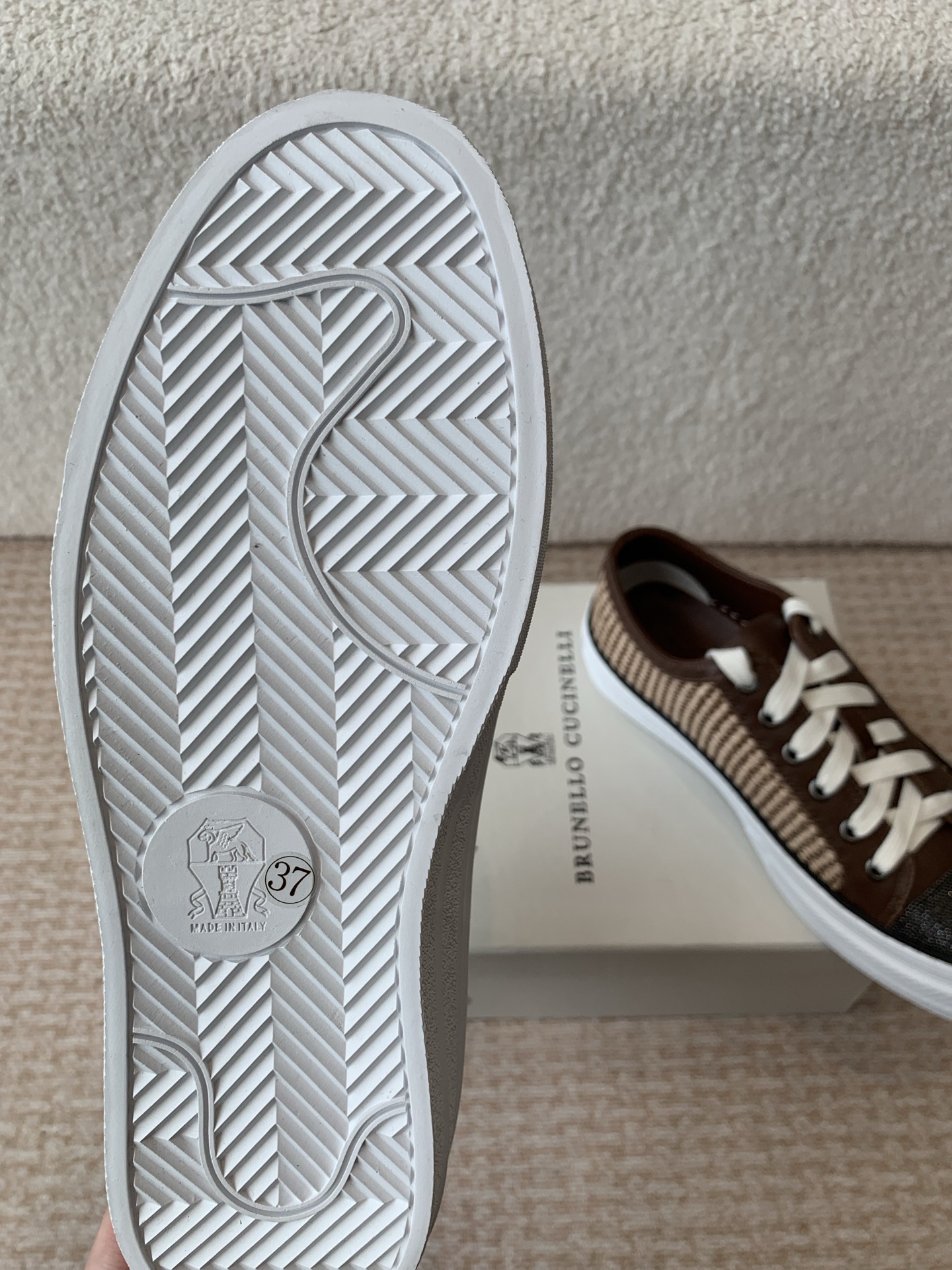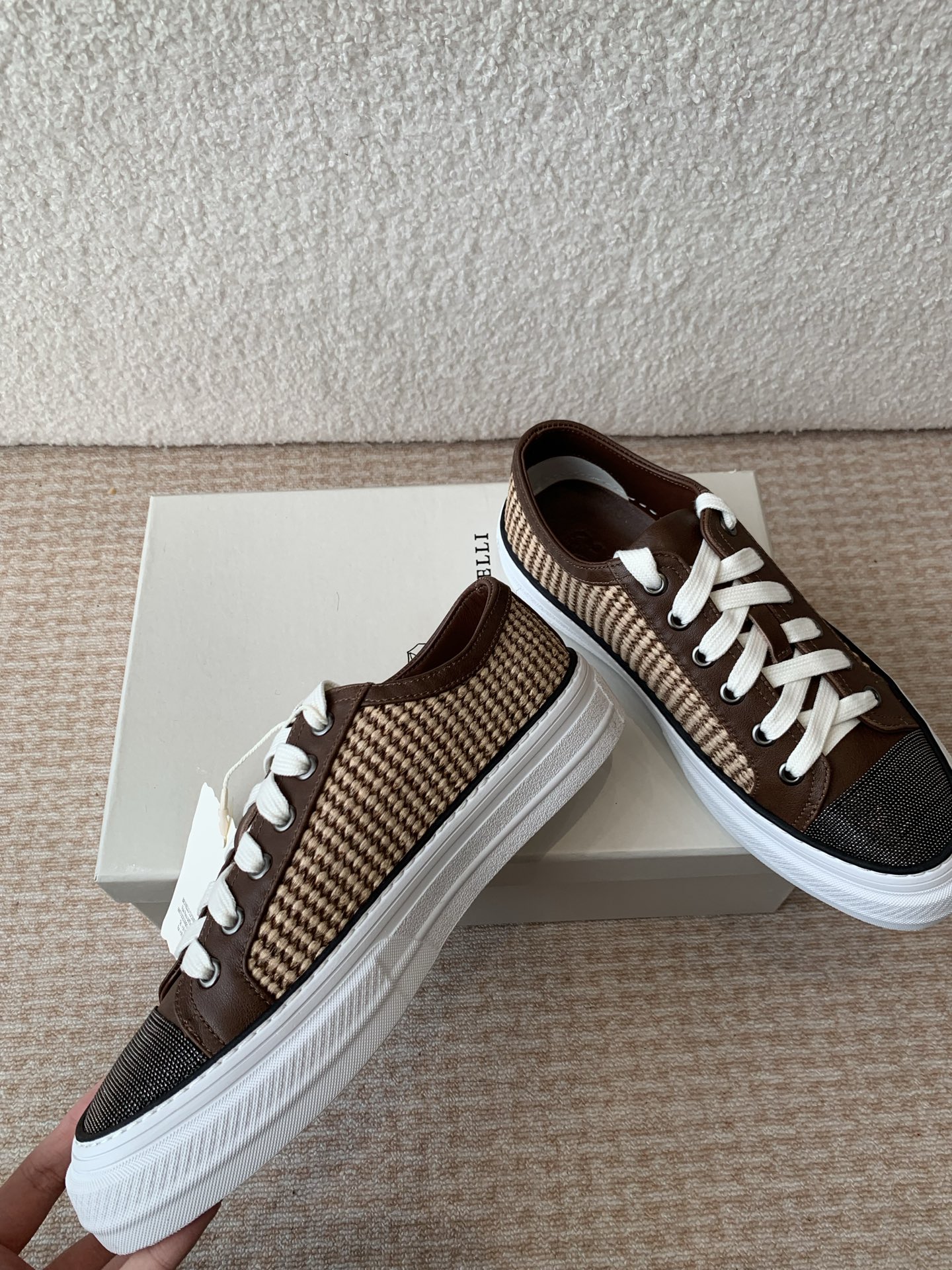 这款鞋子是AAAAA 1:1 质量 (非常棒). 使用了和原版一模一样的材料. 商标部分也保持了和Brunello Cucinelli一样. 图片拍摄是实物鞋子拍摄, 您所收到的实物保证和我们图片一模一样.