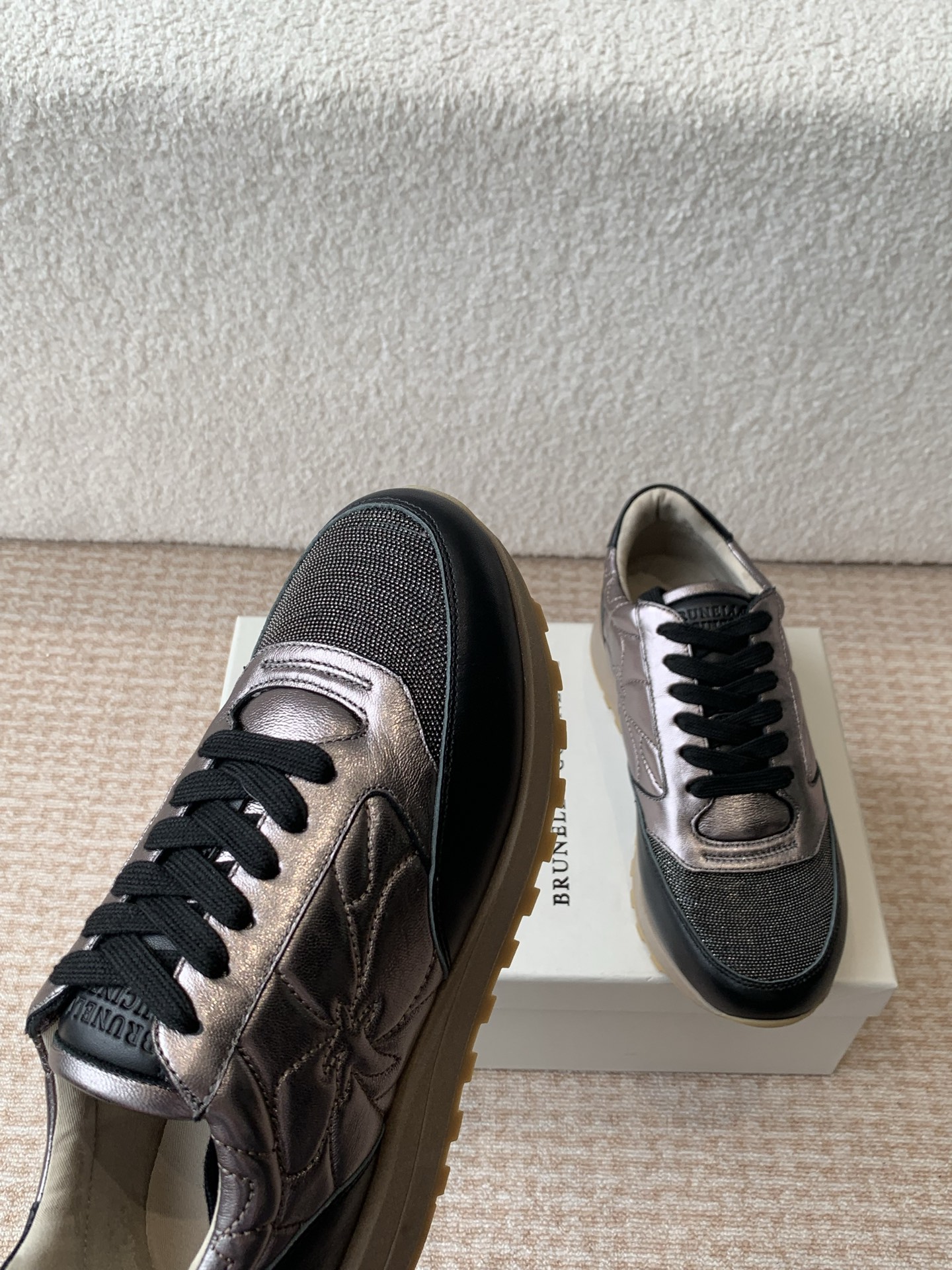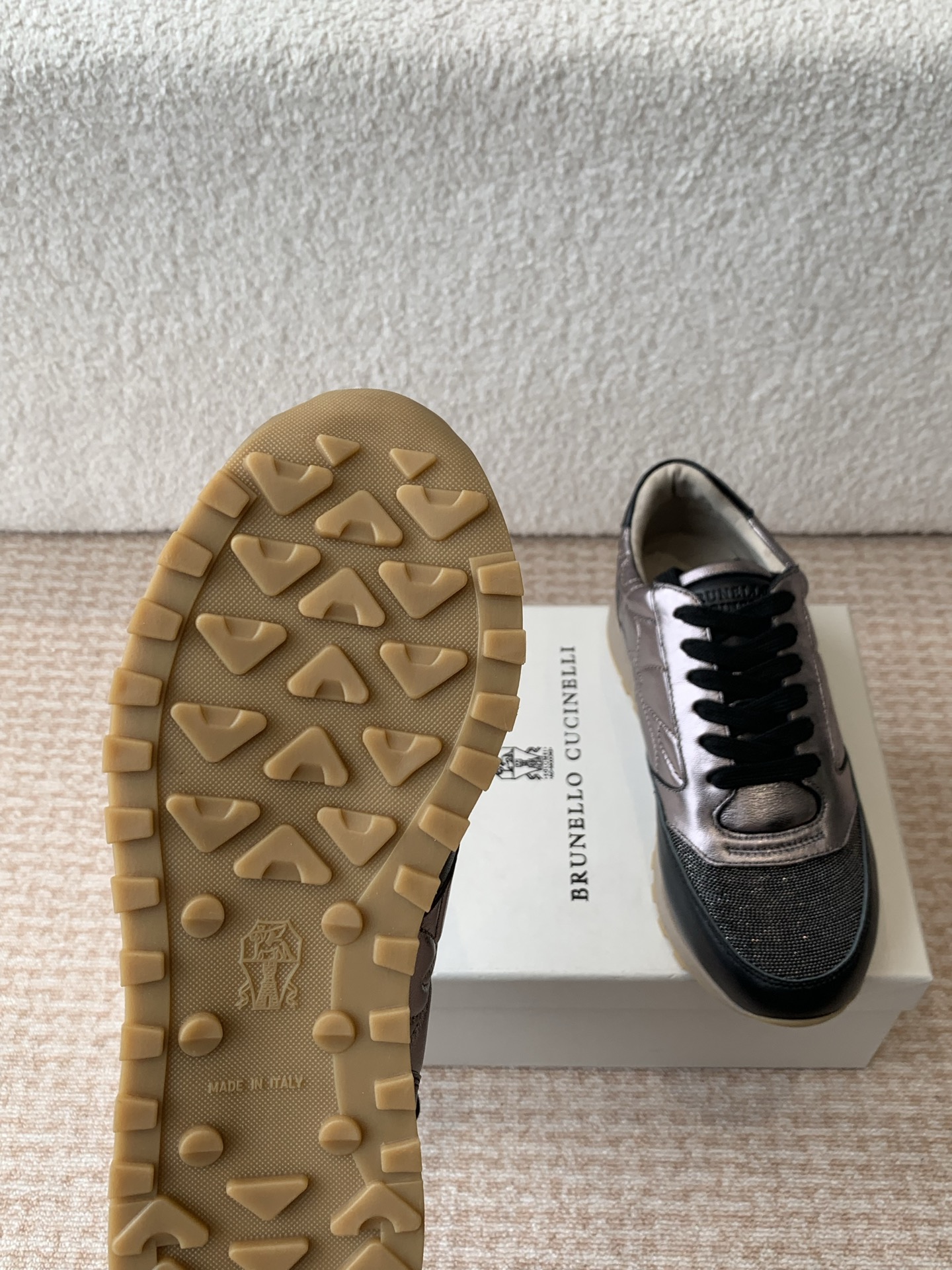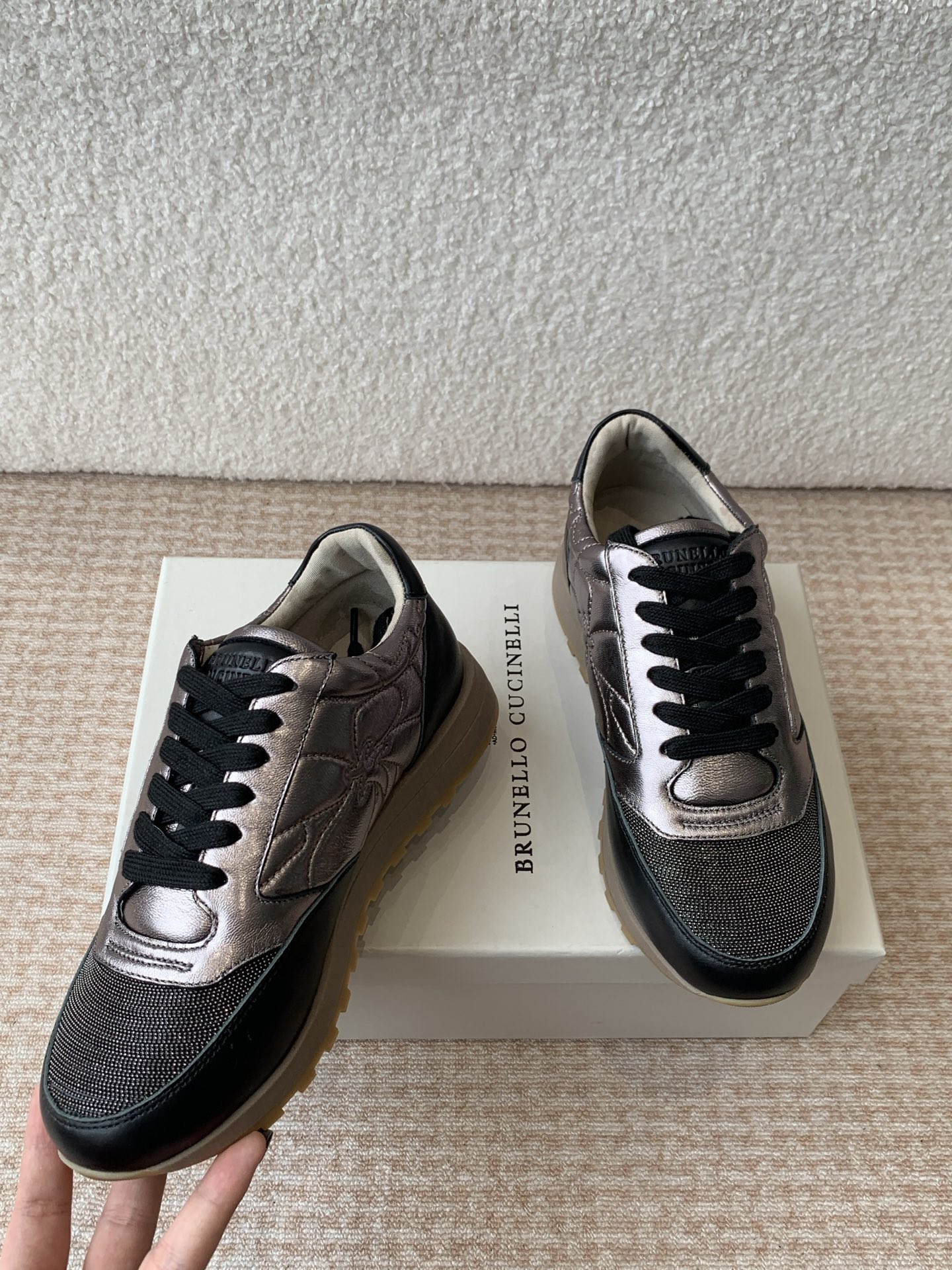 这款鞋子是AAAAA 1:1 质量 (非常棒). 使用了和原版一模一样的材料. 商标部分也保持了和Brunello Cucinelli一样. 图片拍摄是实物鞋子拍摄, 您所收到的实物保证和我们图片一模一样.