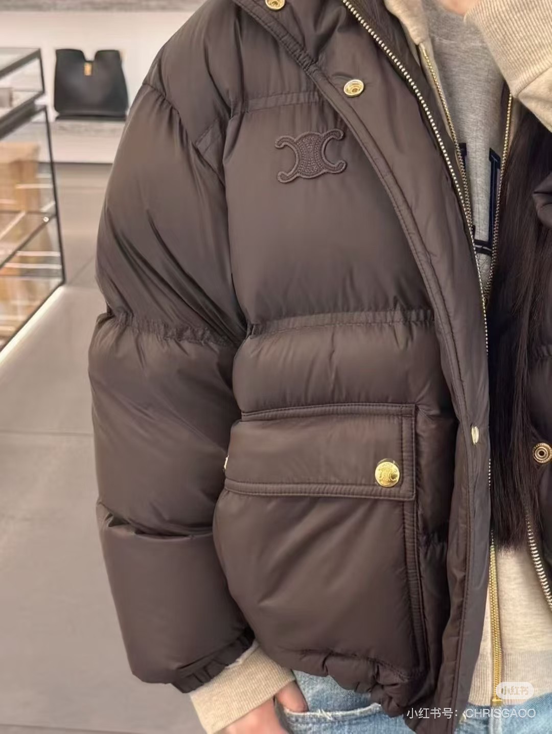 这款衣服是AAAAA 1:1 质量 (非常棒). 使用了和原版一模一样的材料. 商标部分也保持了和思琳/Celine一样. 图片拍摄是实物衣服拍摄, 您所收到的实物保证和我们图片一模一样.