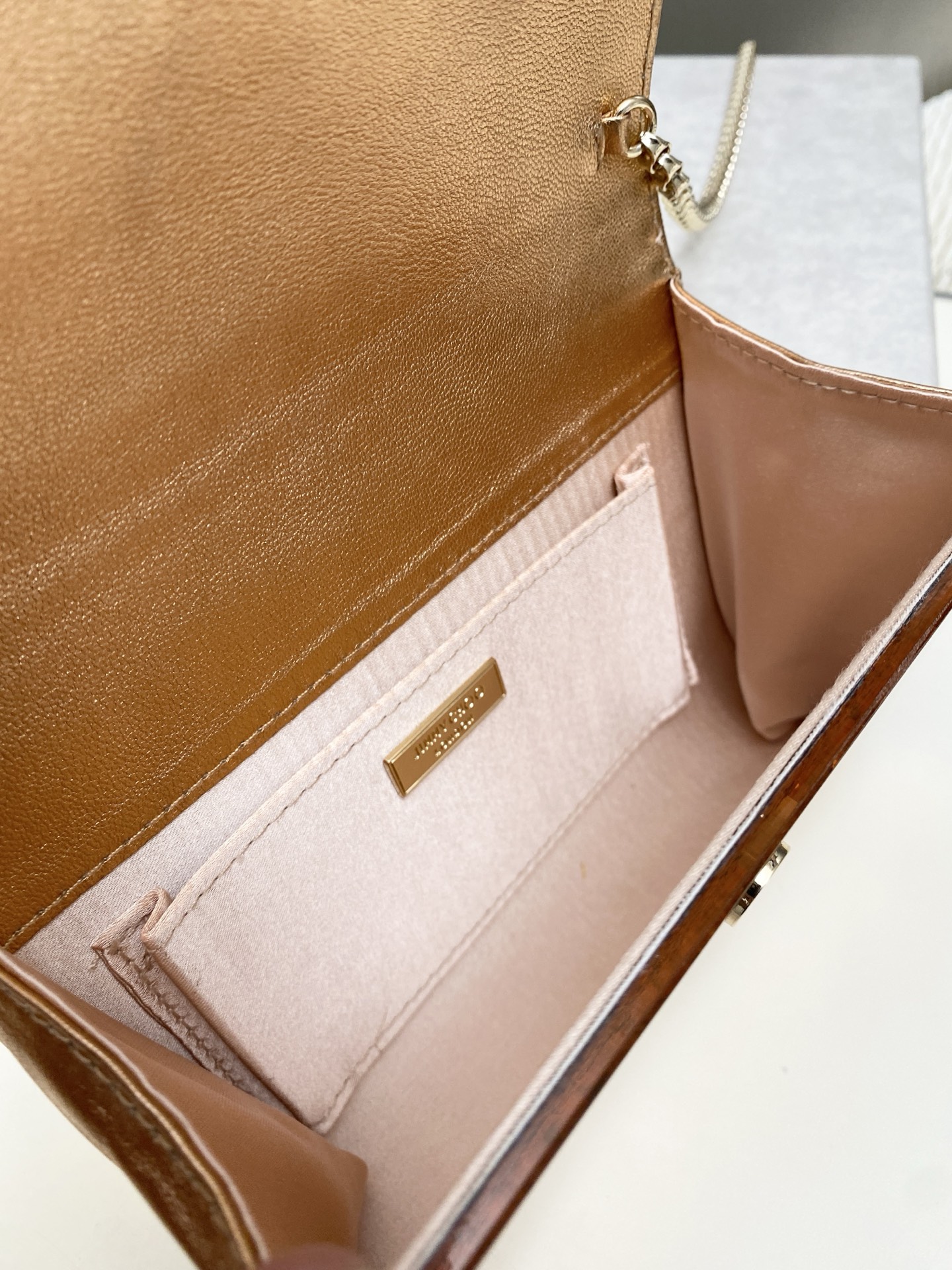 这款包包是AAAAA 1:1 质量 (非常棒). 使用了和原版一模一样的材料. 商标部分也保持了和吉米乔/JIMMY CHOO一样. 图片拍摄是实物包包拍摄, 您所收到的实物保证和我们图片一模一样.