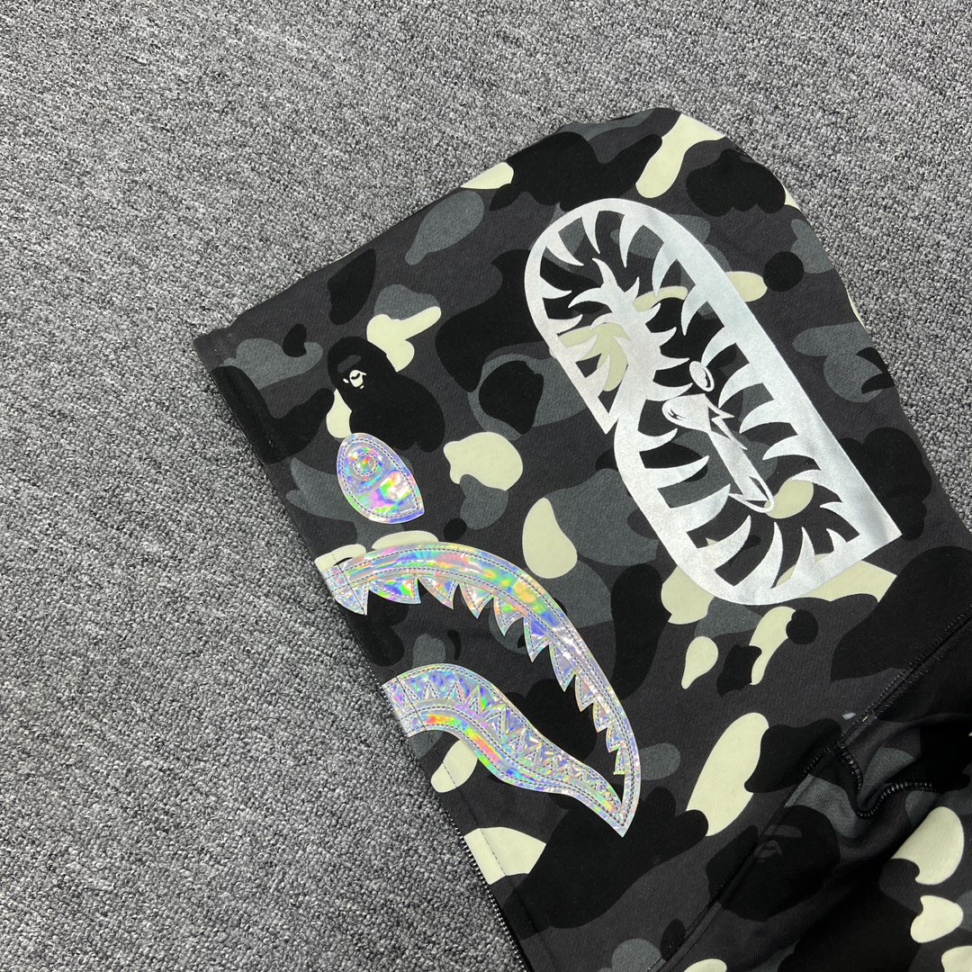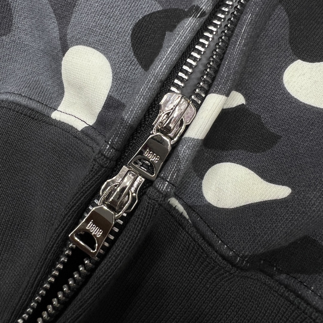这款衣服是AAAAA 1:1 质量 (非常棒). 使用了和原版一模一样的材料. 商标部分也保持了和Bape一样. 图片拍摄是实物衣服拍摄, 您所收到的实物保证和我们图片一模一样.