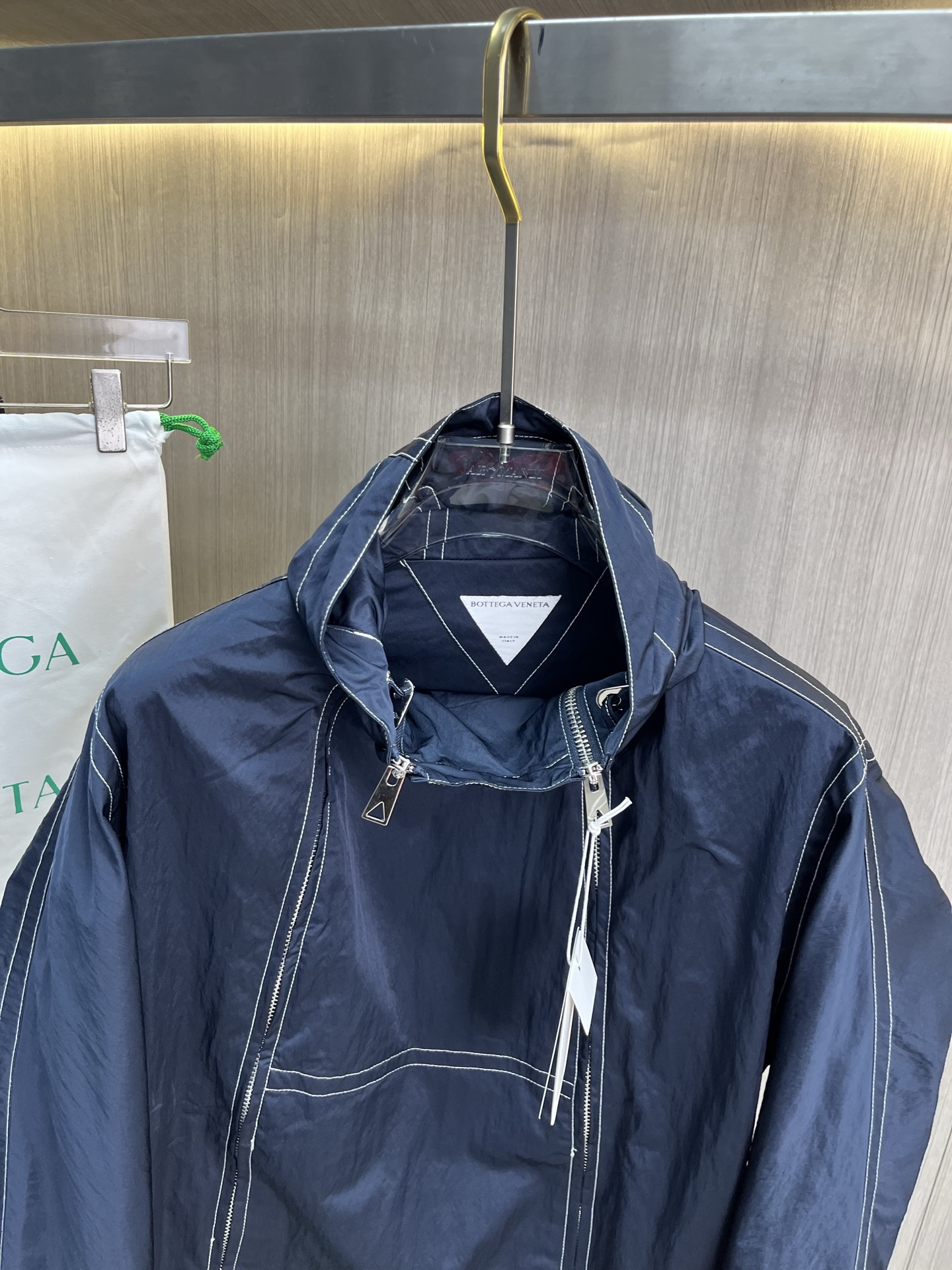 这款衣服是AAAAA 1:1 质量 (非常棒). 使用了和原版一模一样的材料. 商标部分也保持了和葆蝶家/Bottega Veneta一样. 图片拍摄是实物衣服拍摄, 您所收到的实物保证和我们图片一模一样.