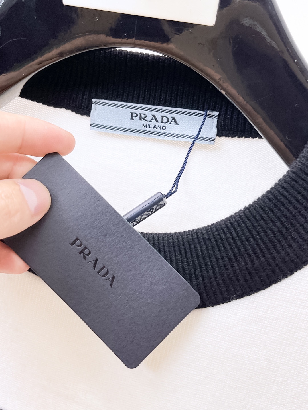 这款衣服是AAAAA 1:1 质量 (非常棒). 使用了和原版一模一样的材料. 商标部分也保持了和普拉达/Prada一样. 图片拍摄是实物衣服拍摄, 您所收到的实物保证和我们图片一模一样.