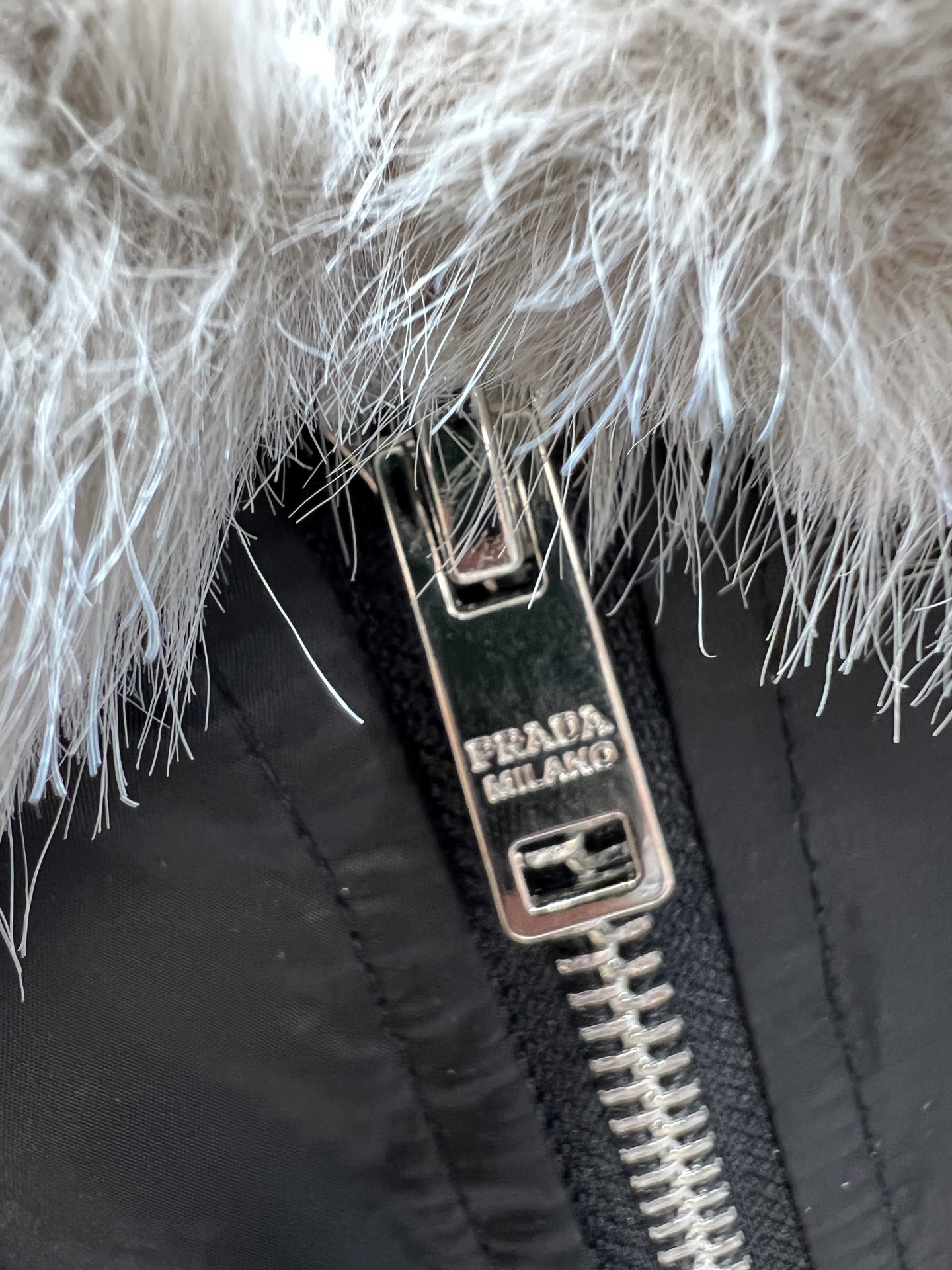 这款衣服是AAAAA 1:1 质量 (非常棒). 使用了和原版一模一样的材料. 商标部分也保持了和普拉达/Prada一样. 图片拍摄是实物衣服拍摄, 您所收到的实物保证和我们图片一模一样.