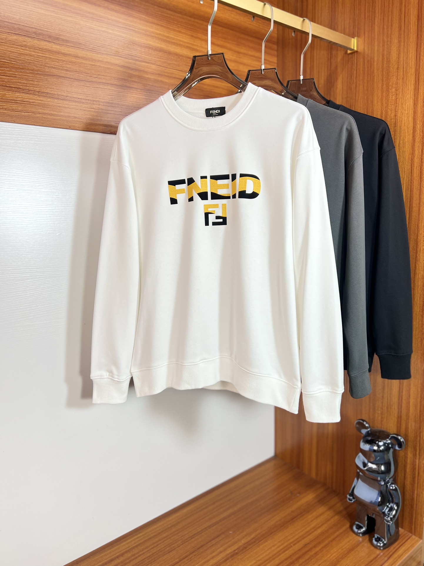 这款衣服是AAAAA 1:1 质量 (非常棒). 使用了和原版一模一样的材料. 商标部分也保持了和芬迪/Fendi一样. 图片拍摄是实物衣服拍摄, 您所收到的实物保证和我们图片一模一样.