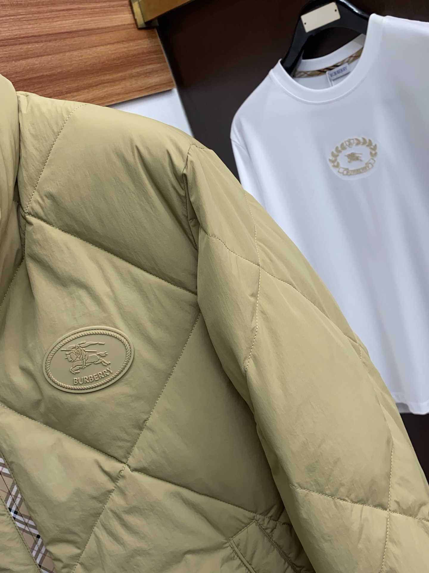 这款衣服是AAAAA 1:1 质量 (非常棒). 使用了和原版一模一样的材料. 商标部分也保持了和巴宝莉/Burberry一样. 图片拍摄是实物衣服拍摄, 您所收到的实物保证和我们图片一模一样.