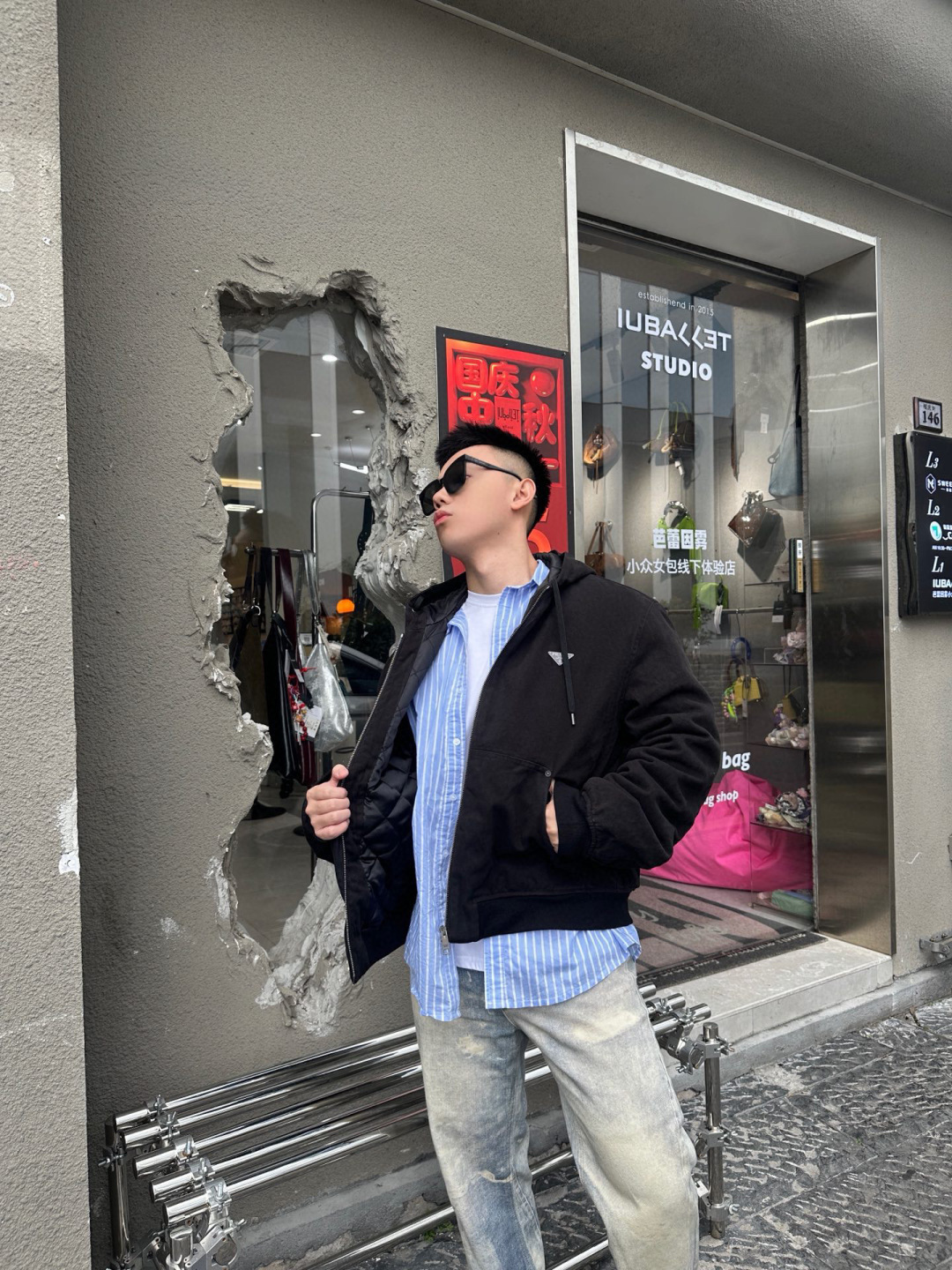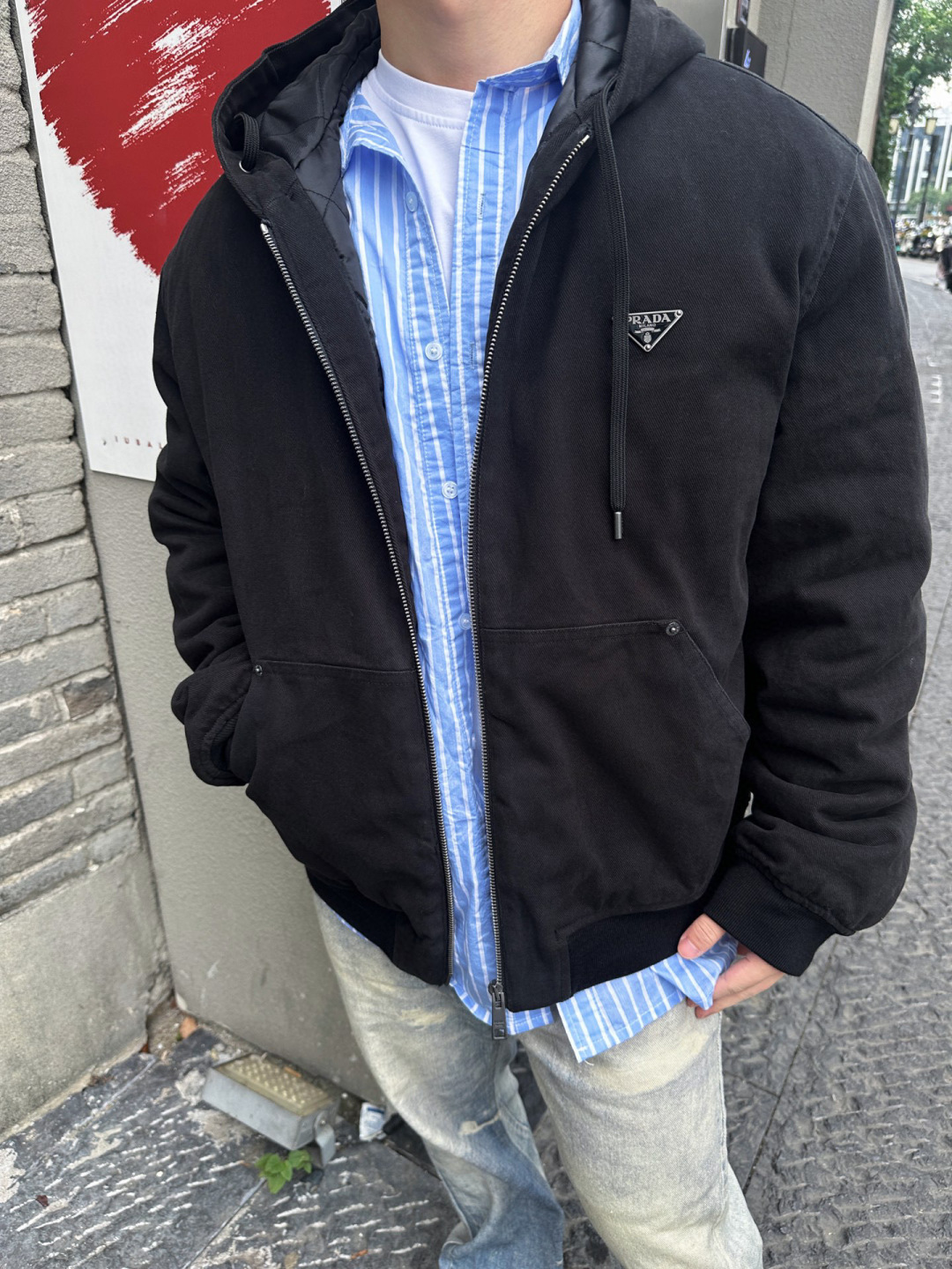 这款衣服是AAAAA 1:1 质量 (非常棒). 使用了和原版一模一样的材料. 商标部分也保持了和普拉达/Prada一样. 图片拍摄是实物衣服拍摄, 您所收到的实物保证和我们图片一模一样.