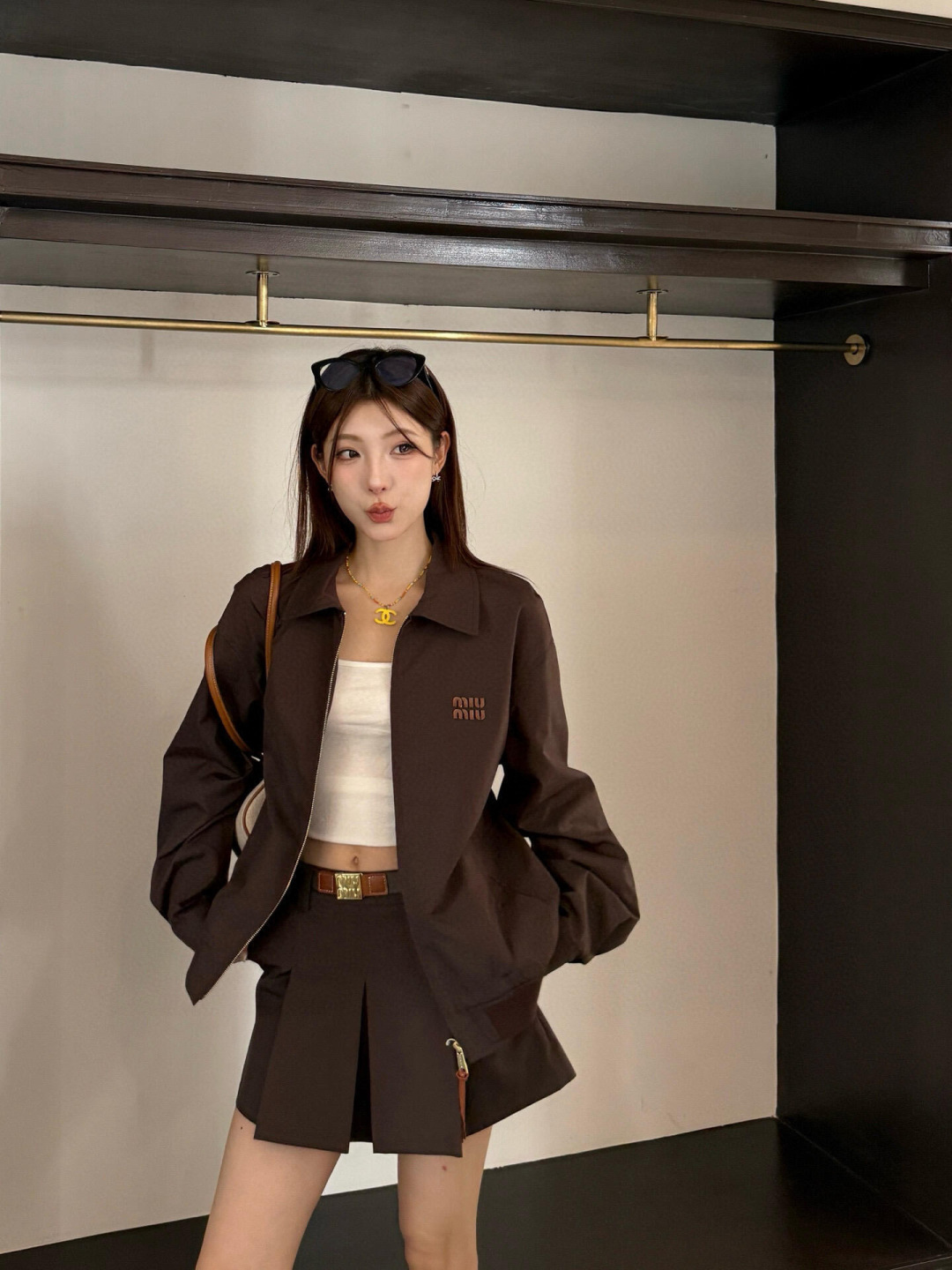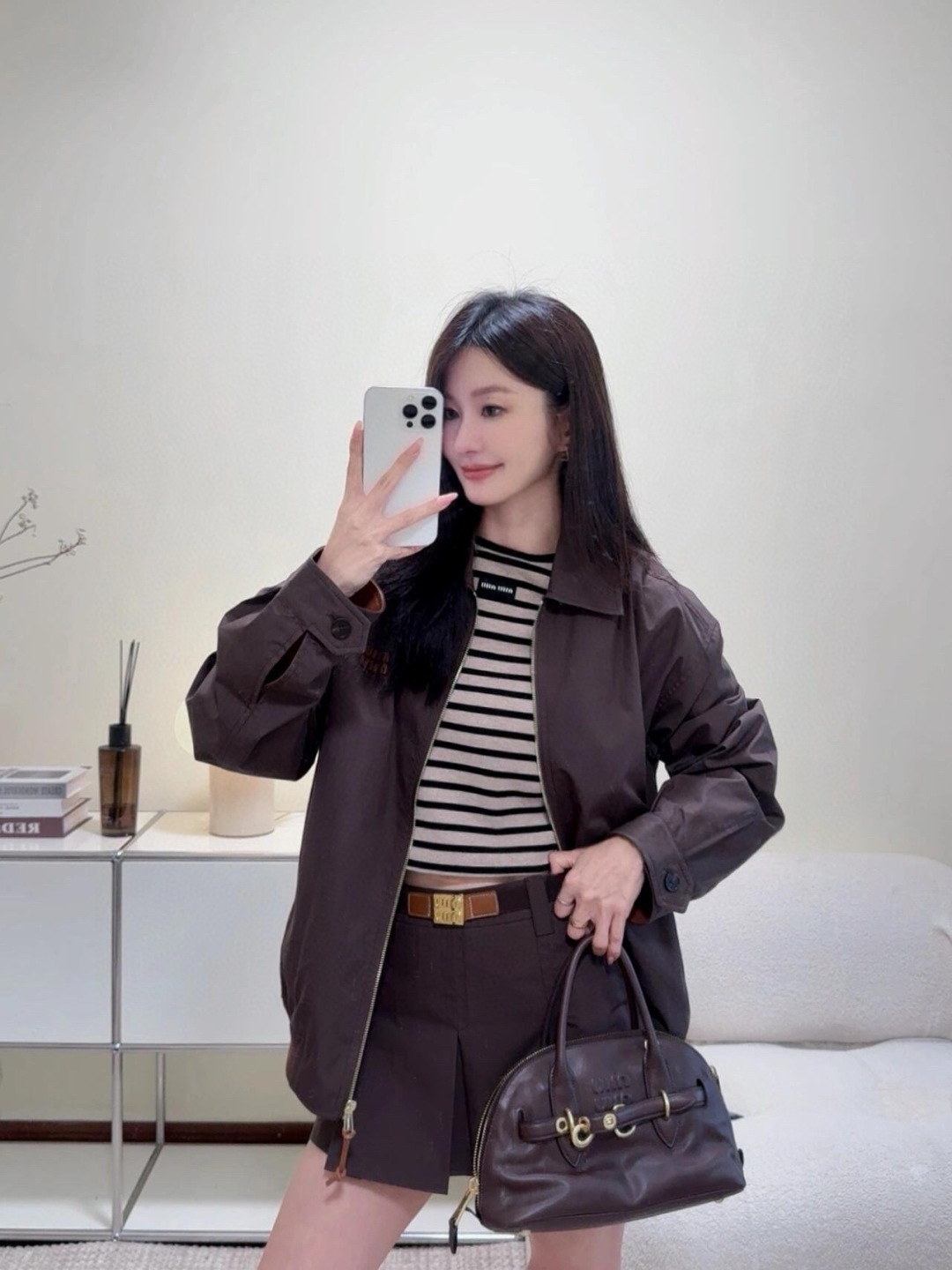 这款衣服是AAAAA 1:1 质量 (非常棒). 使用了和原版一模一样的材料. 商标部分也保持了和缪缪/Miu Miu一样. 图片拍摄是实物衣服拍摄, 您所收到的实物保证和我们图片一模一样.
