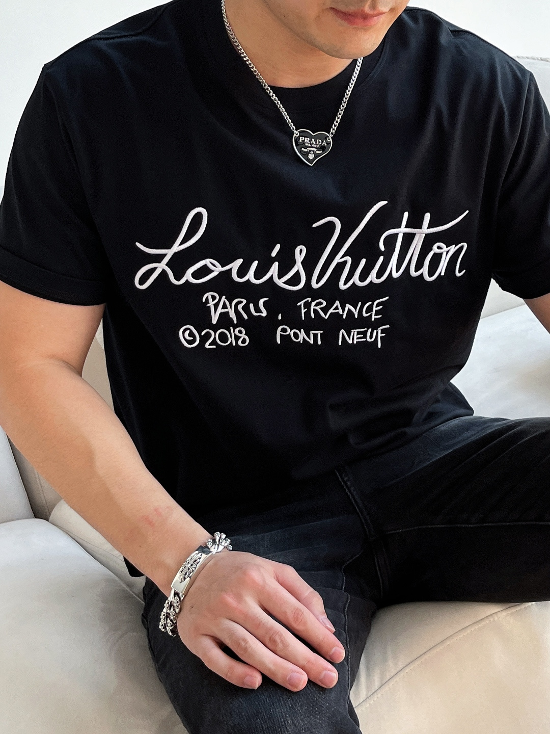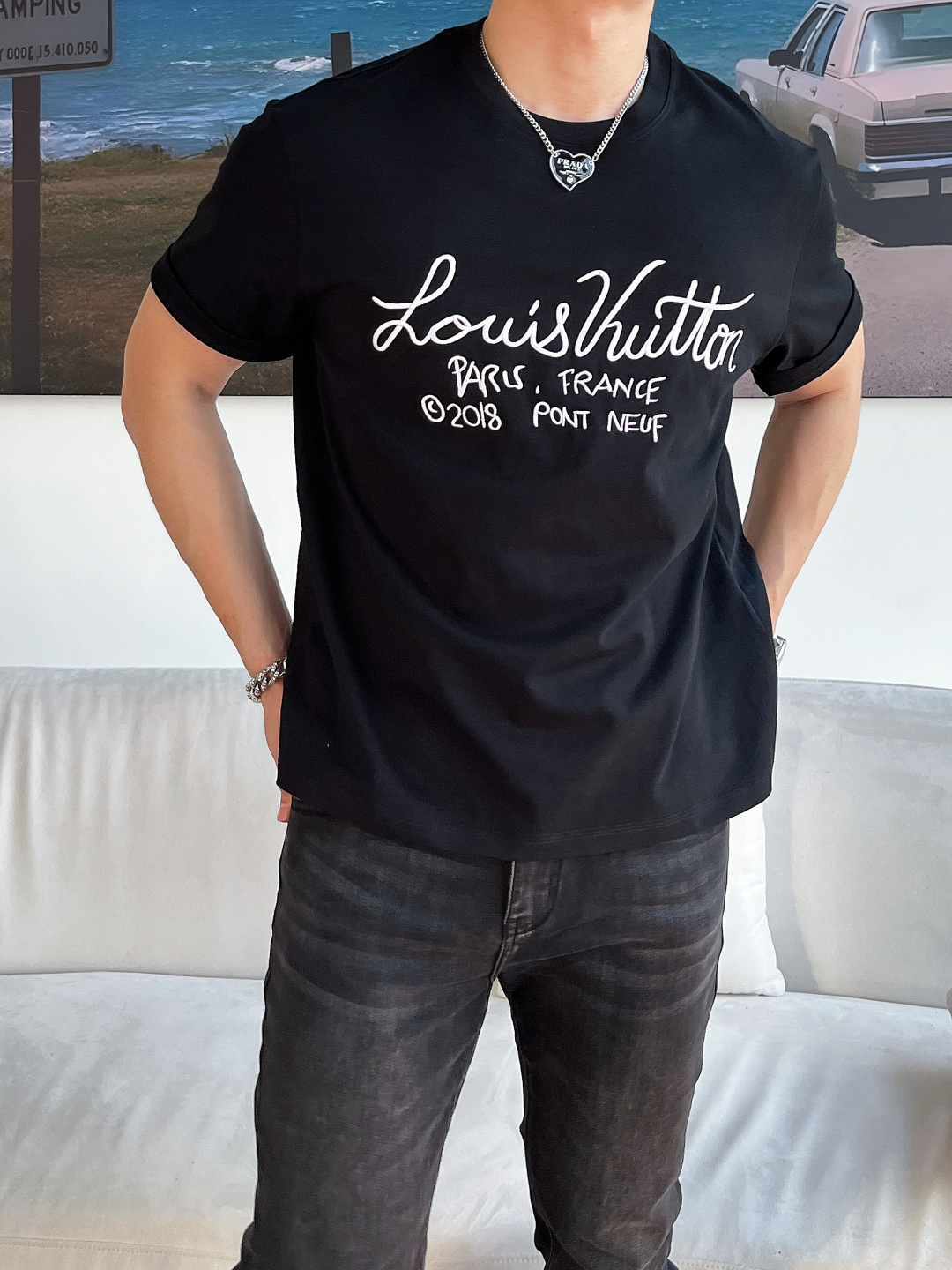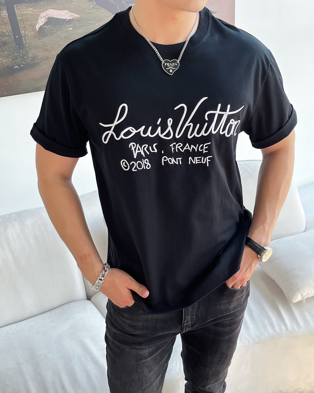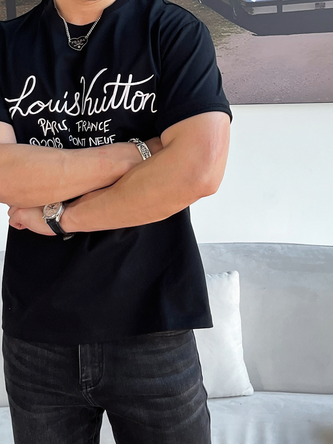 这款衣服是AAAAA 1:1 质量 (非常棒). 使用了和原版一模一样的材料. 商标部分也保持了和路易威登/Louis Vuitton一样. 图片拍摄是实物衣服拍摄, 您所收到的实物保证和我们图片一模一样.