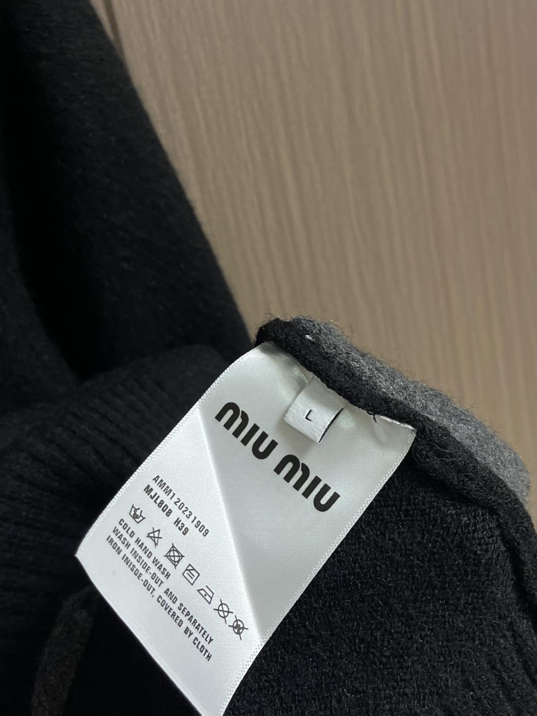 这款衣服是AAAAA 1:1 质量 (非常棒). 使用了和原版一模一样的材料. 商标部分也保持了和缪缪/Miu Miu一样. 图片拍摄是实物衣服拍摄, 您所收到的实物保证和我们图片一模一样.