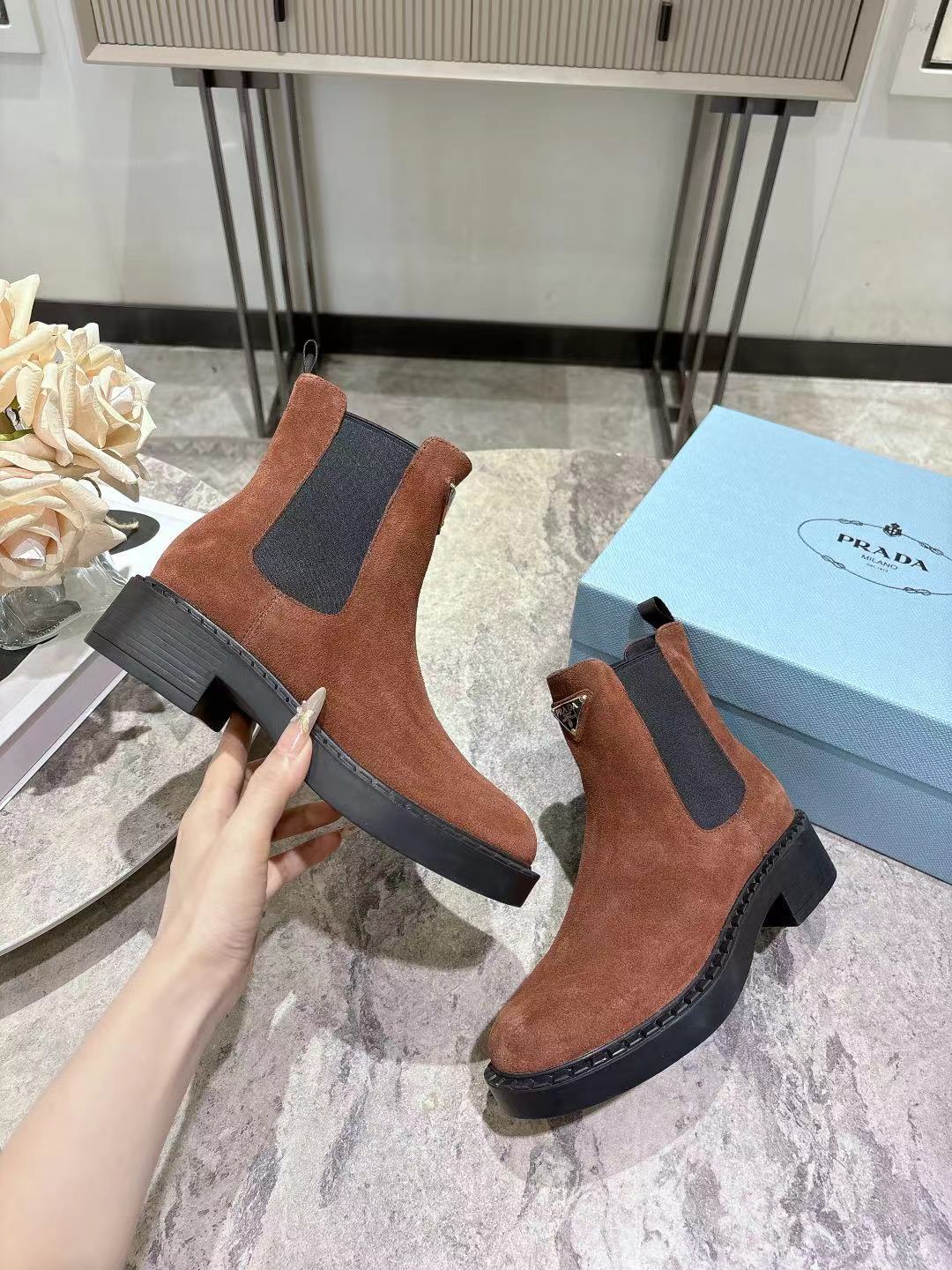 这款鞋子是AAAAA 1:1 质量 (非常棒). 使用了和原版一模一样的材料. 商标部分也保持了和普拉达/Prada一样. 图片拍摄是实物鞋子拍摄, 您所收到的实物保证和我们图片一模一样.