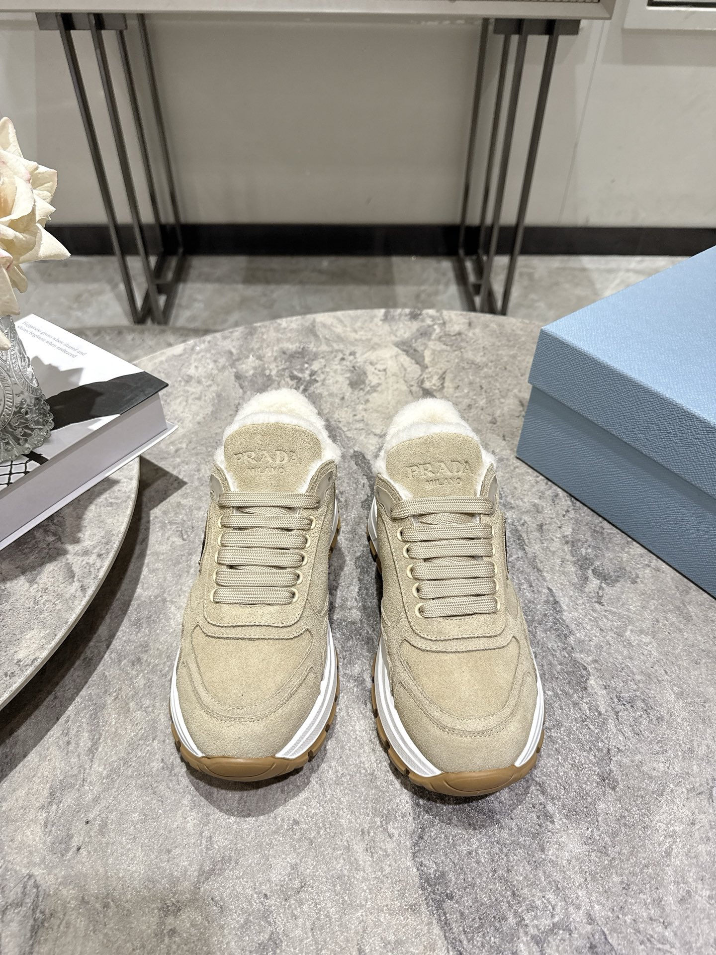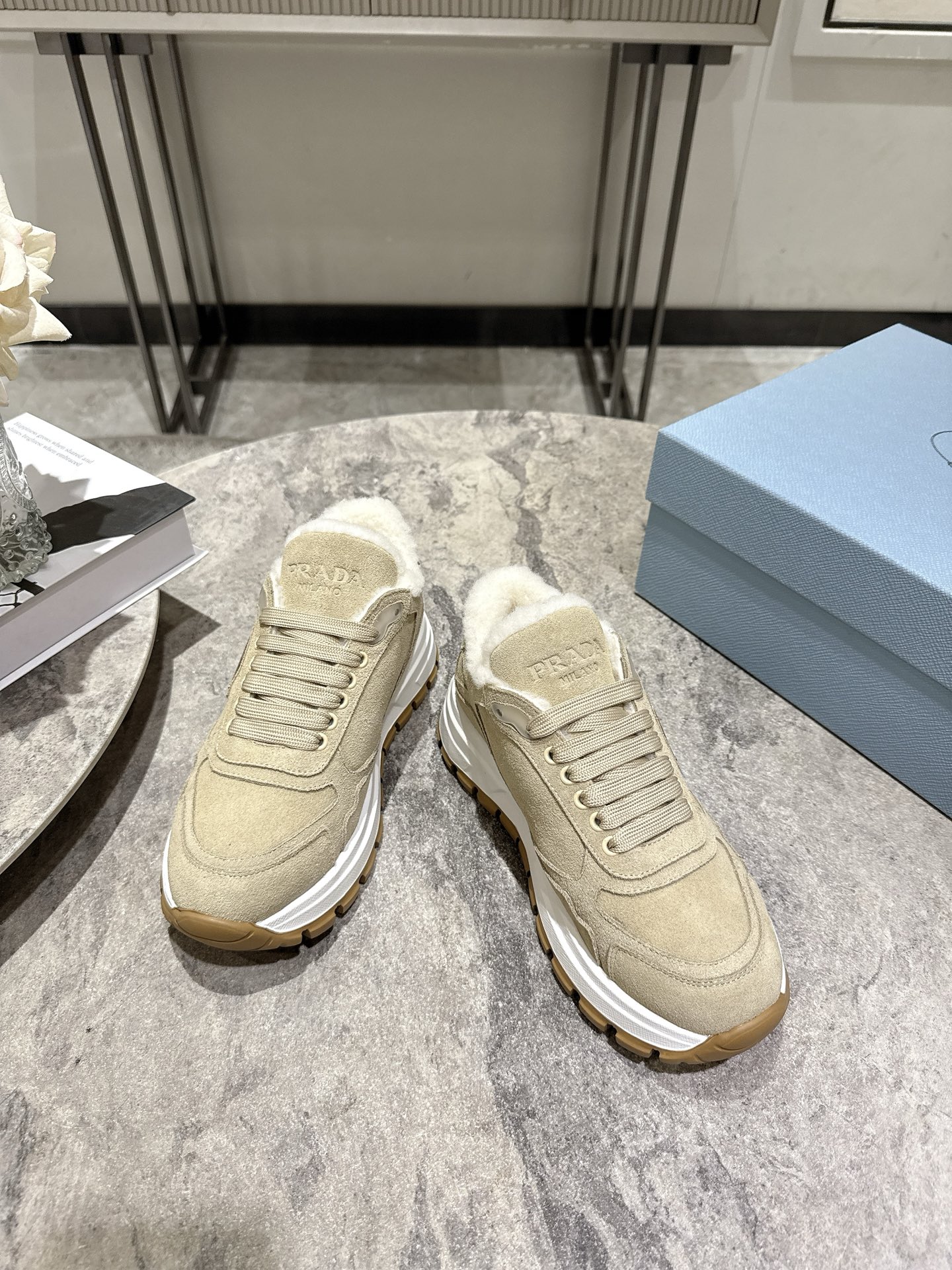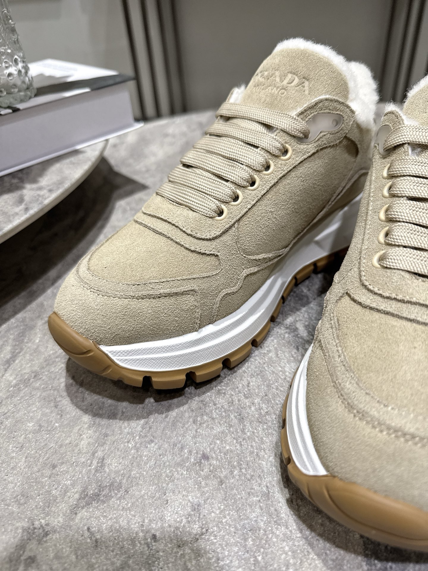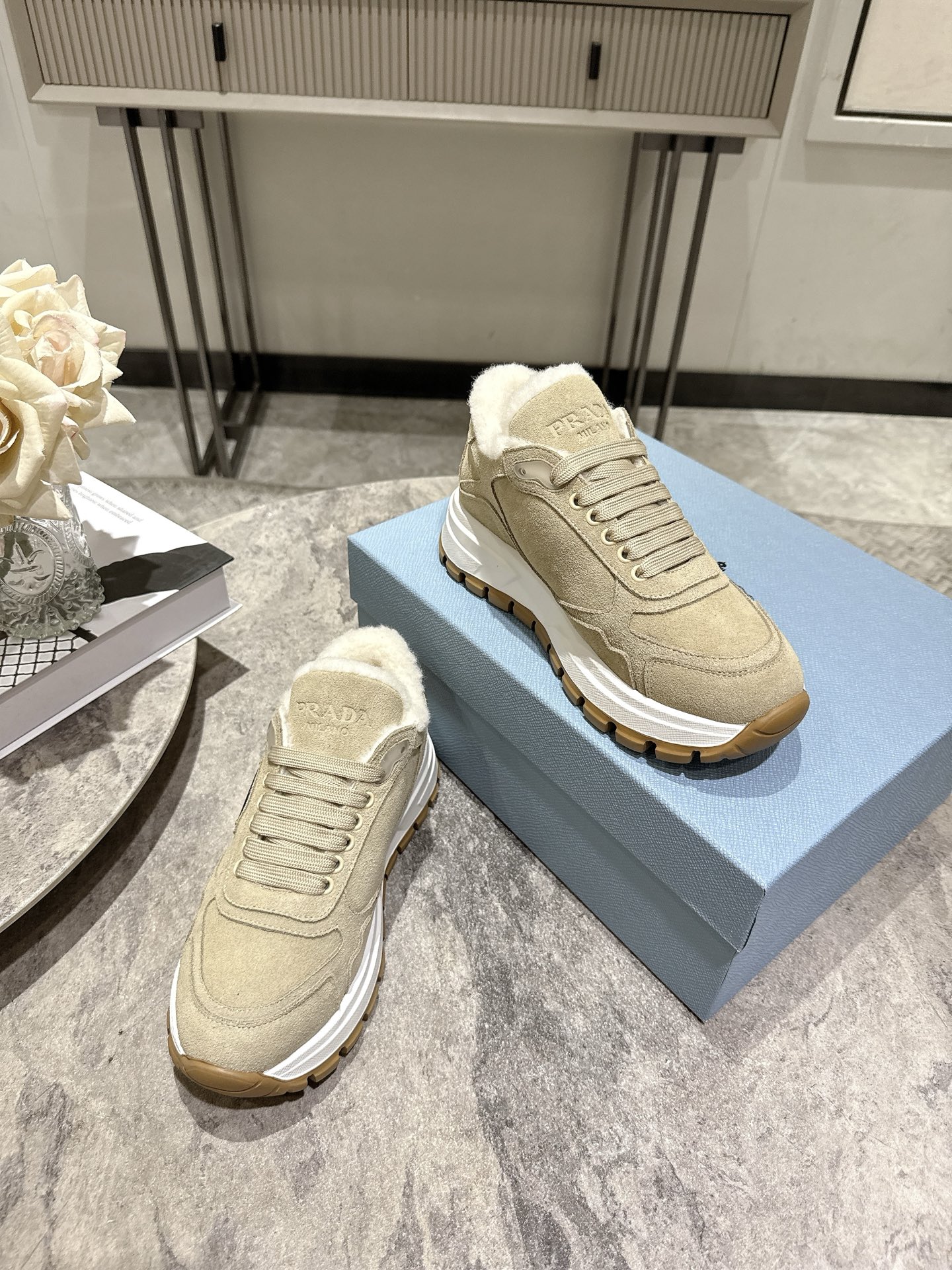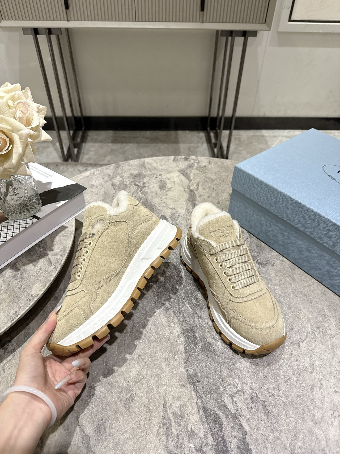 这款鞋子是AAAAA 1:1 质量 (非常棒). 使用了和原版一模一样的材料. 商标部分也保持了和普拉达/Prada一样. 图片拍摄是实物鞋子拍摄, 您所收到的实物保证和我们图片一模一样.
