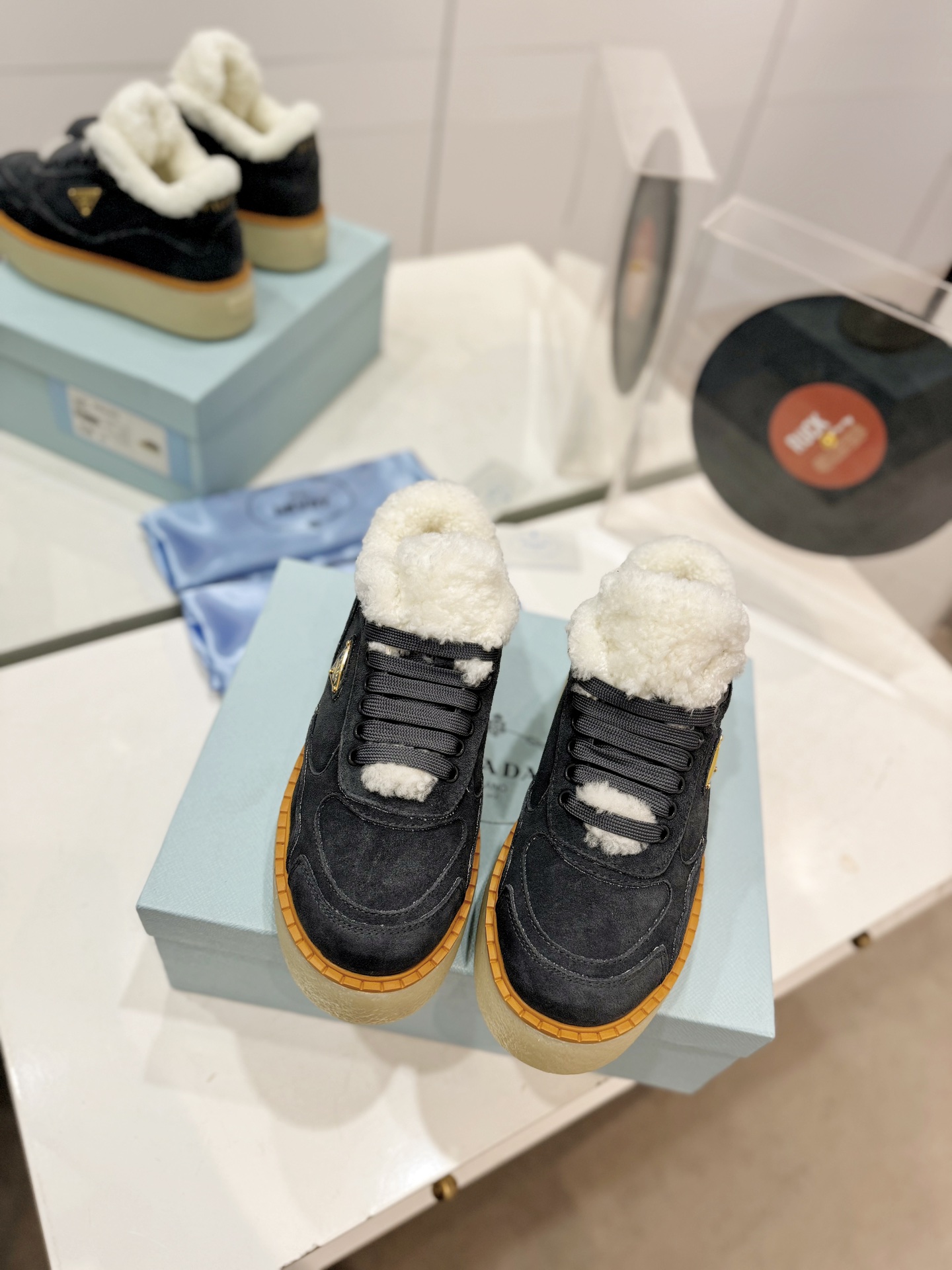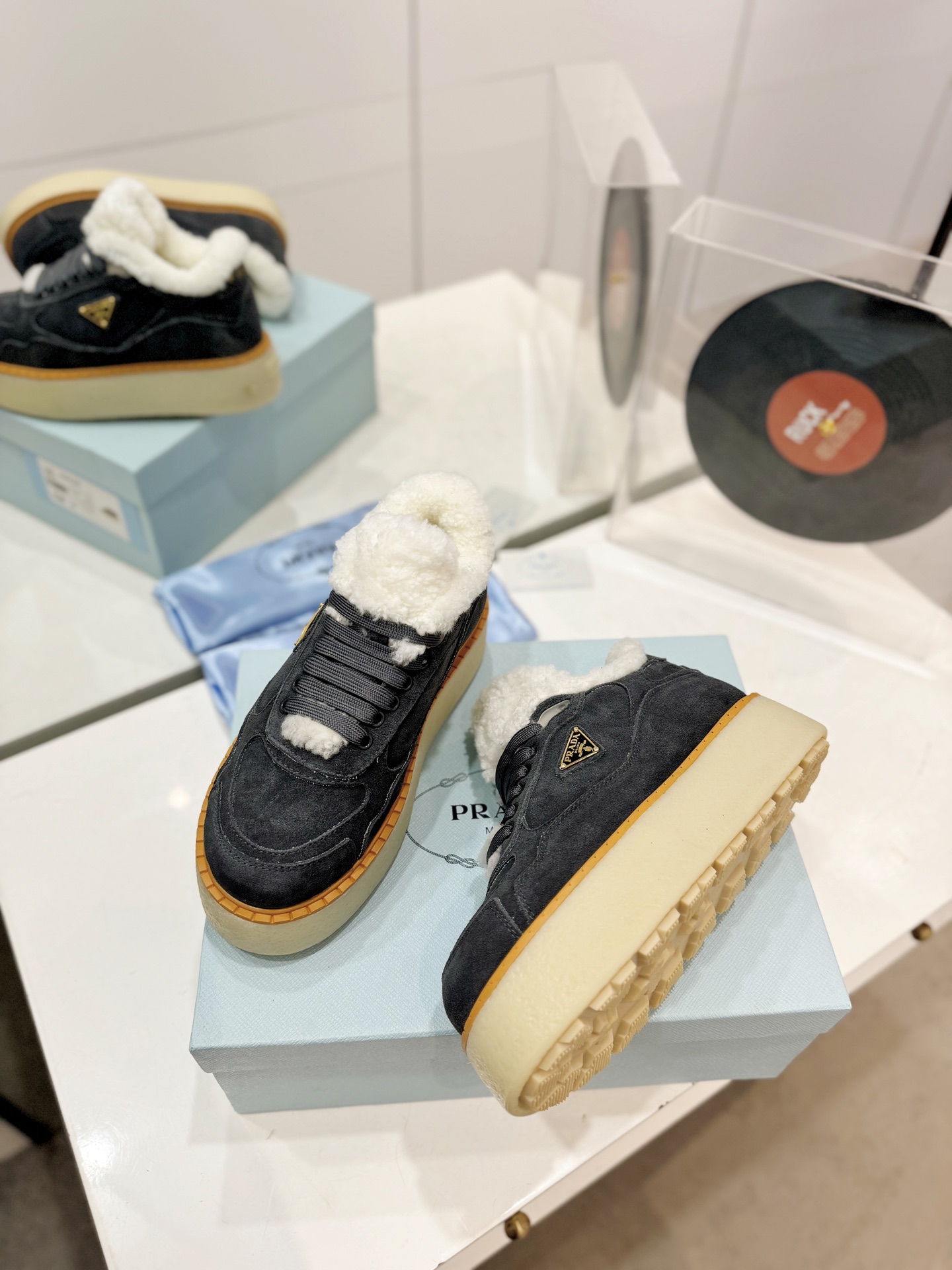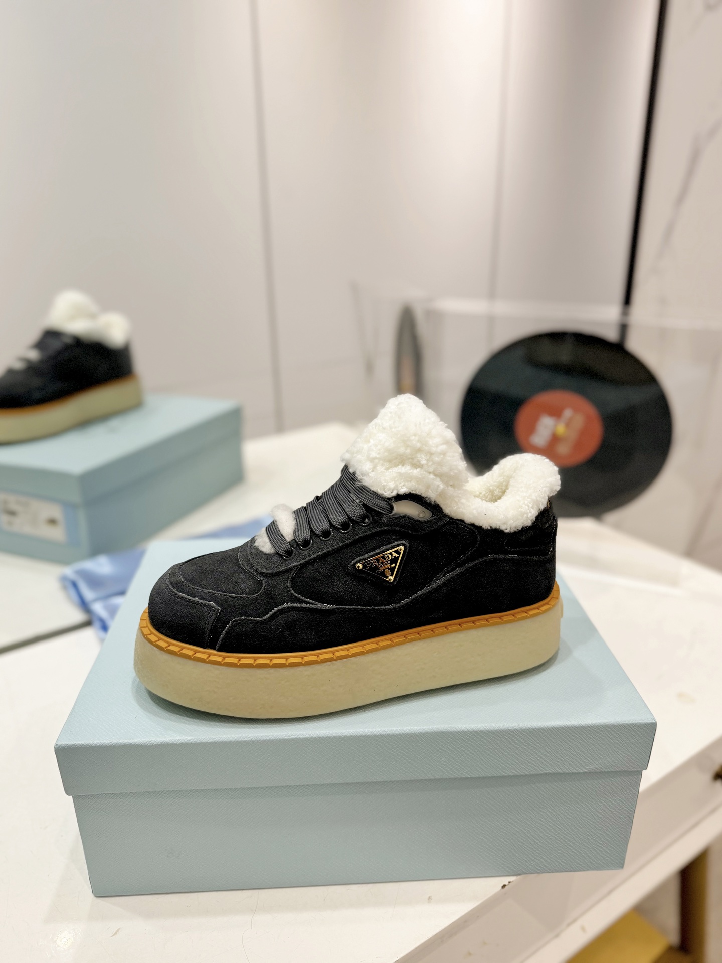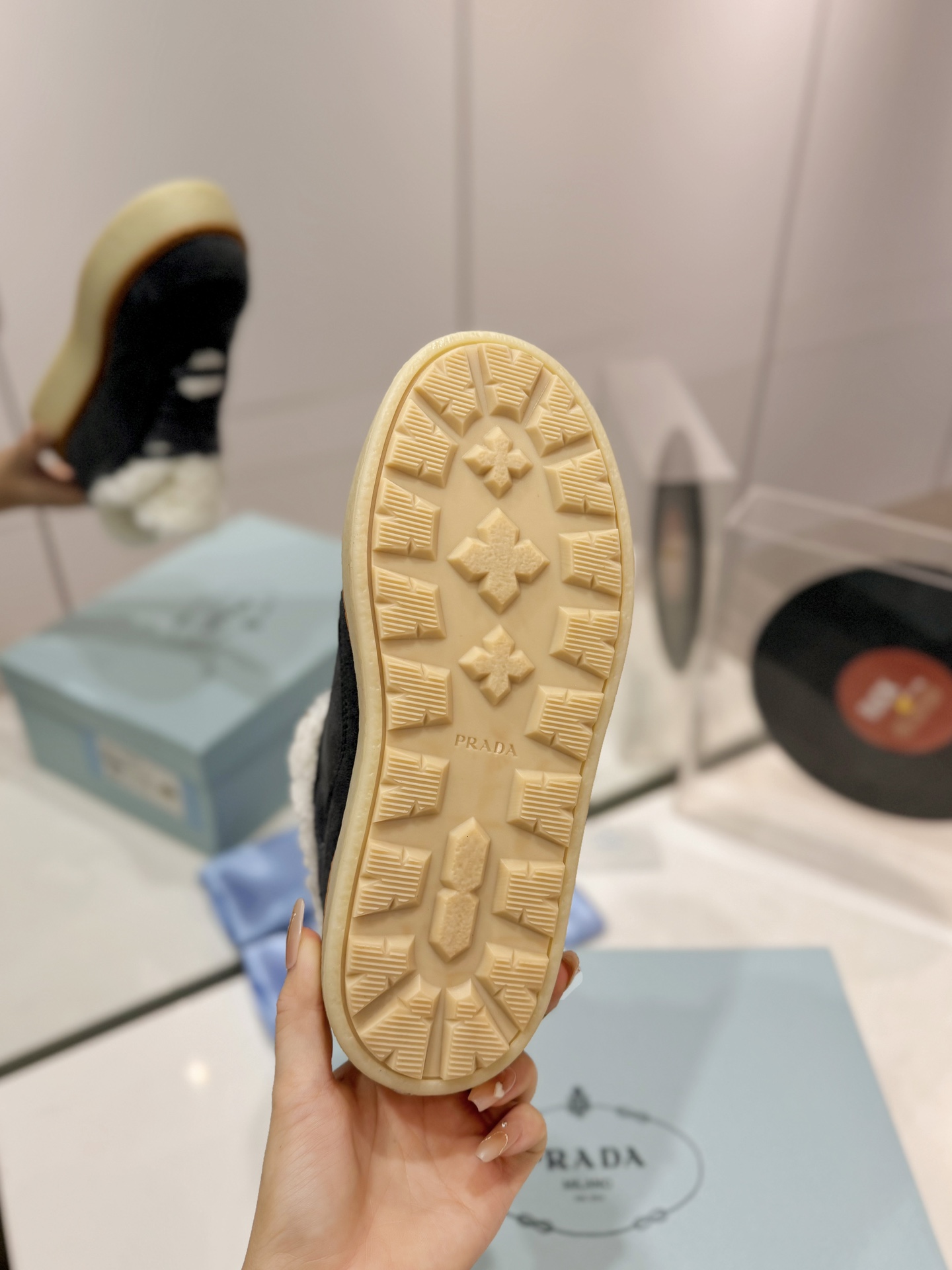 这款鞋子是AAAAA 1:1 质量 (非常棒). 使用了和原版一模一样的材料. 商标部分也保持了和普拉达/Prada一样. 图片拍摄是实物鞋子拍摄, 您所收到的实物保证和我们图片一模一样.