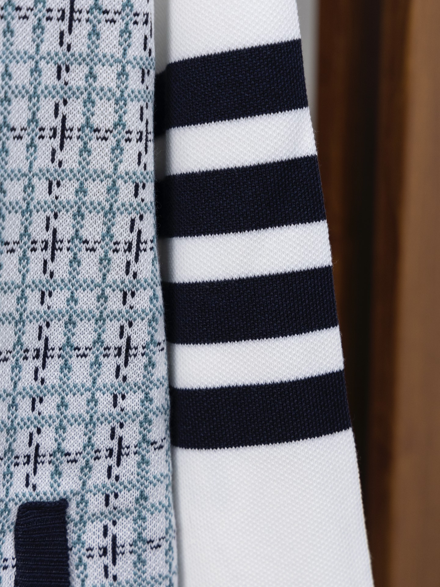 这款衣服是AAAAA 1:1 质量 (非常棒). 使用了和原版一模一样的材料. 商标部分也保持了和汤姆布朗/Thom Browne一样. 图片拍摄是实物衣服拍摄, 您所收到的实物保证和我们图片一模一样.