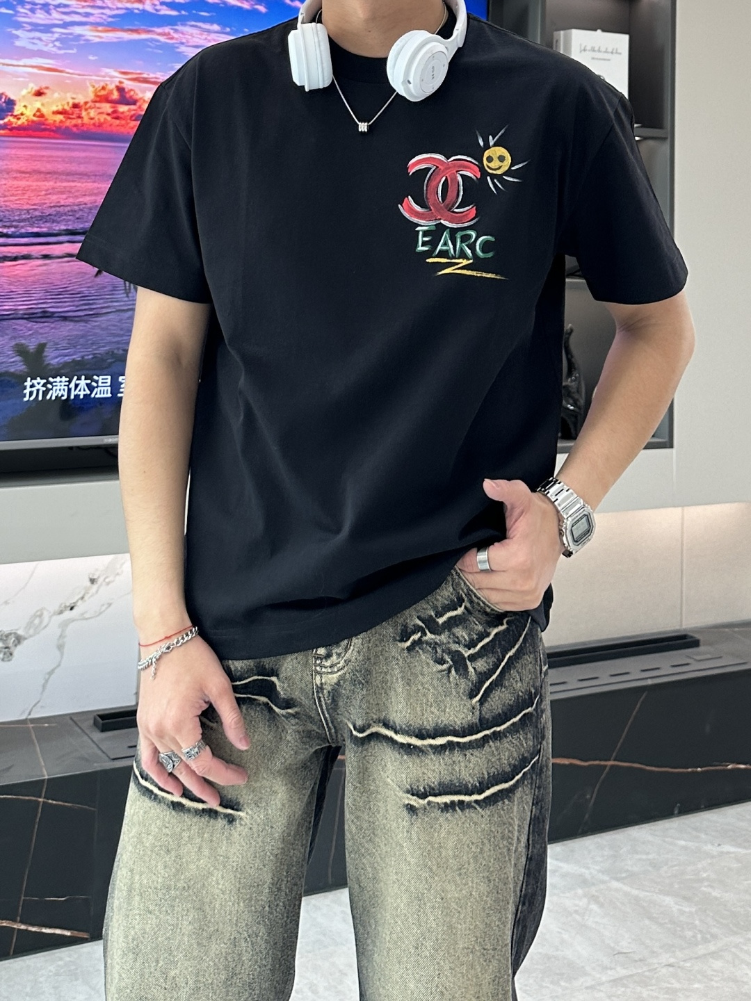 这款衣服是AAAAA 1:1 质量 (非常棒). 使用了和原版一模一样的材料. 商标部分也保持了和香奈儿/Chanel一样. 图片拍摄是实物衣服拍摄, 您所收到的实物保证和我们图片一模一样.