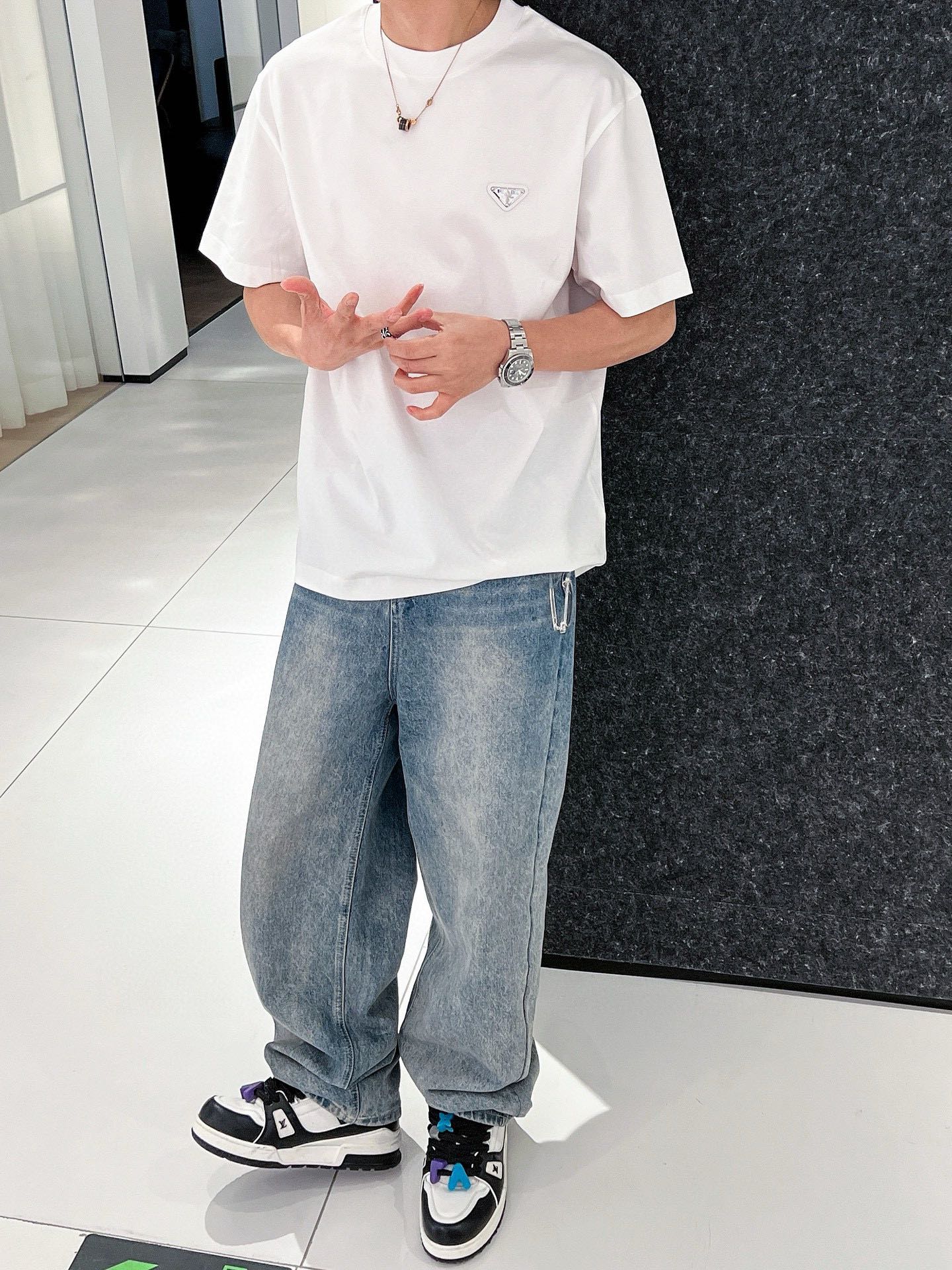 这款衣服是AAAAA 1:1 质量 (非常棒). 使用了和原版一模一样的材料. 商标部分也保持了和普拉达/Prada一样. 图片拍摄是实物衣服拍摄, 您所收到的实物保证和我们图片一模一样.