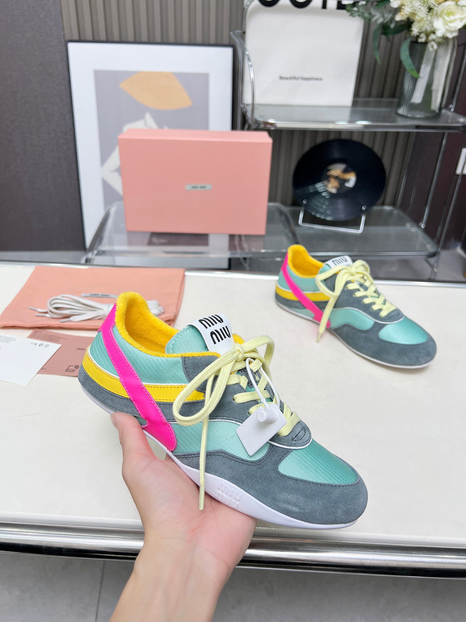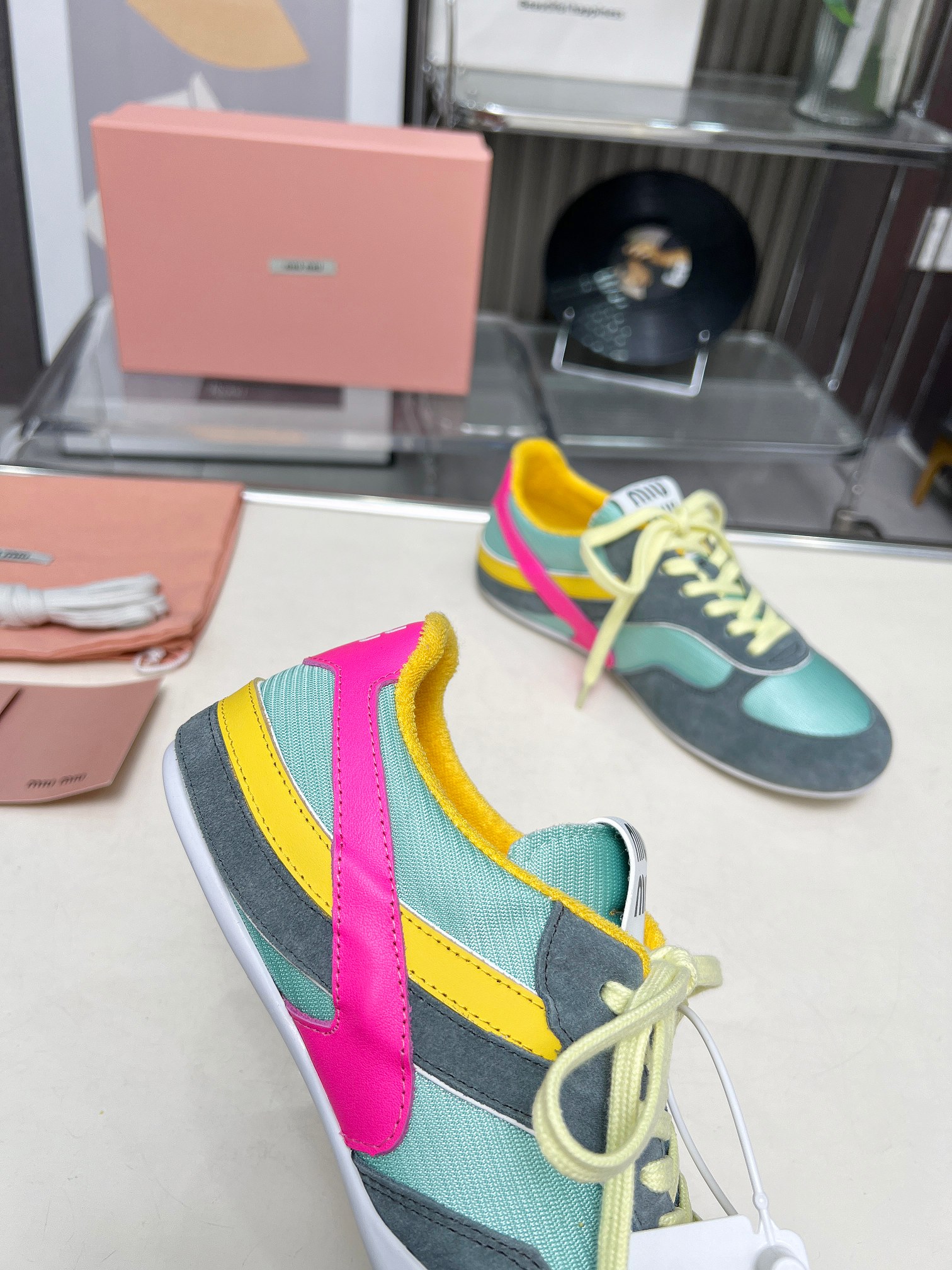 这款鞋子是AAAAA 1:1 质量 (非常棒). 使用了和原版一模一样的材料. 商标部分也保持了和缪缪/Miu Miu一样. 图片拍摄是实物鞋子拍摄, 您所收到的实物保证和我们图片一模一样.