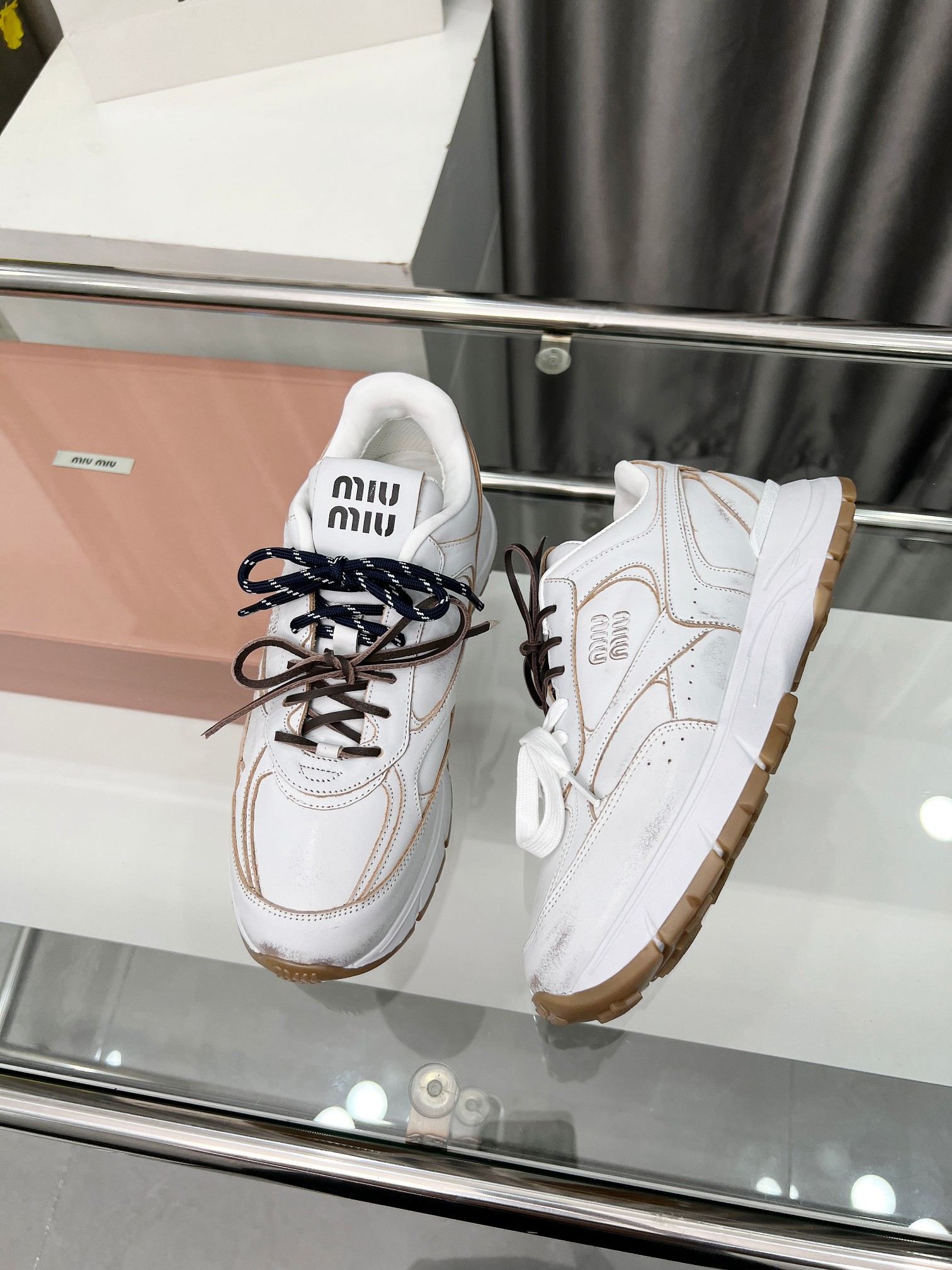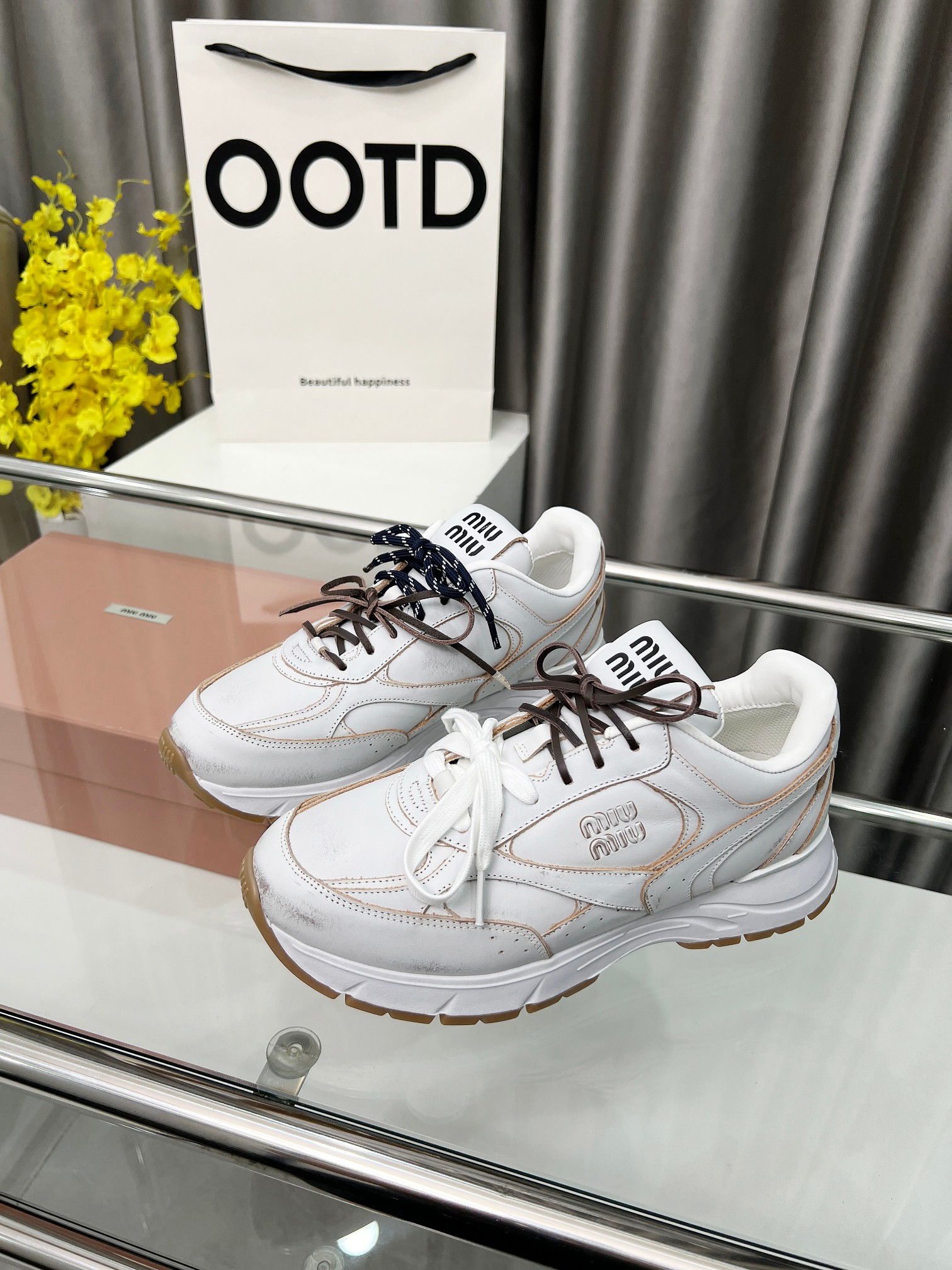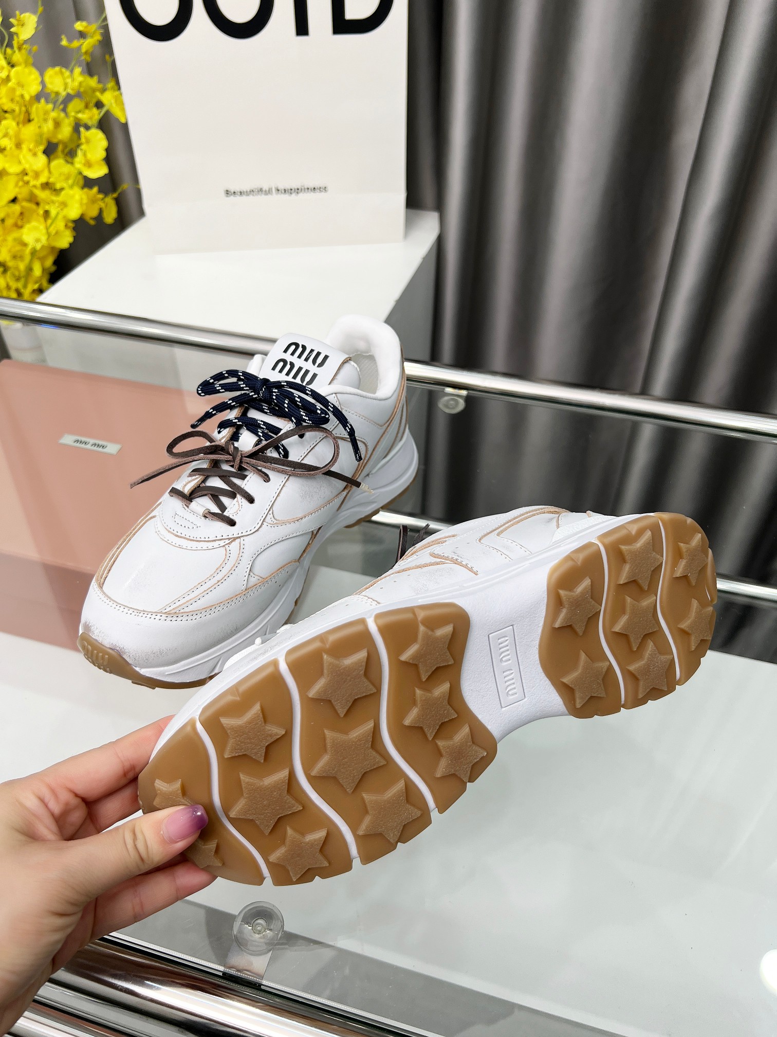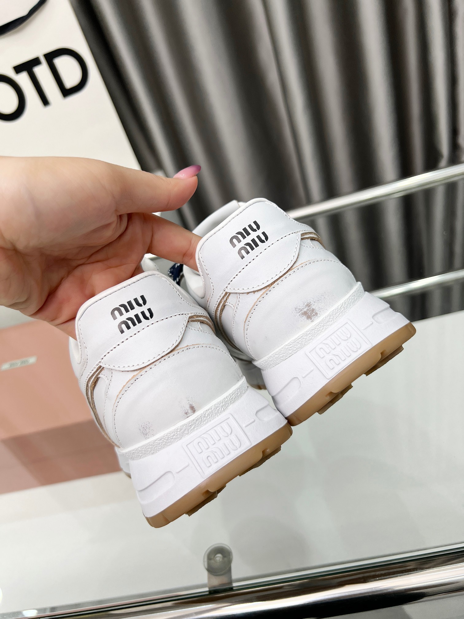 这款鞋子是AAAAA 1:1 质量 (非常棒). 使用了和原版一模一样的材料. 商标部分也保持了和缪缪/Miu Miu一样. 图片拍摄是实物鞋子拍摄, 您所收到的实物保证和我们图片一模一样.