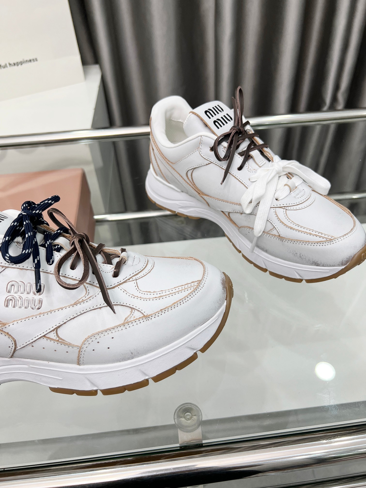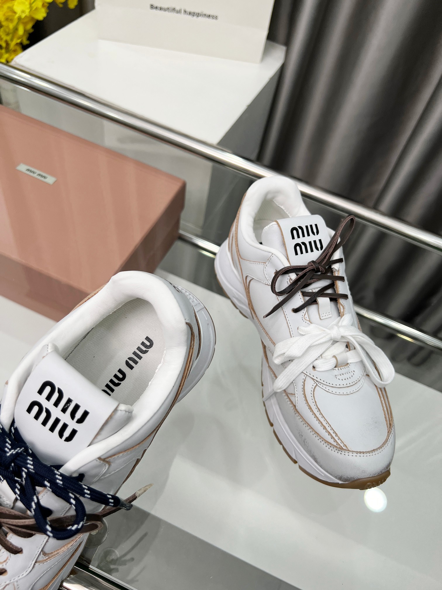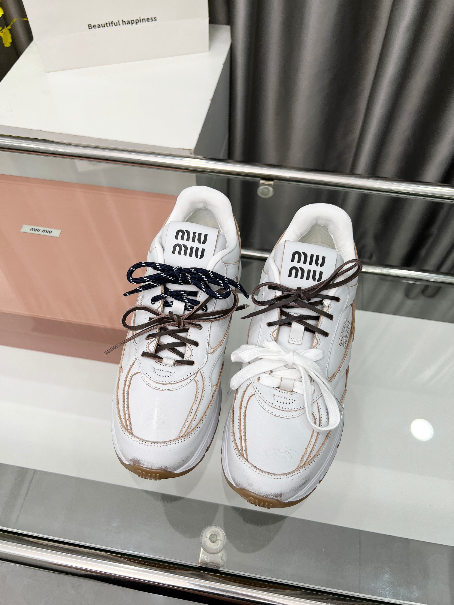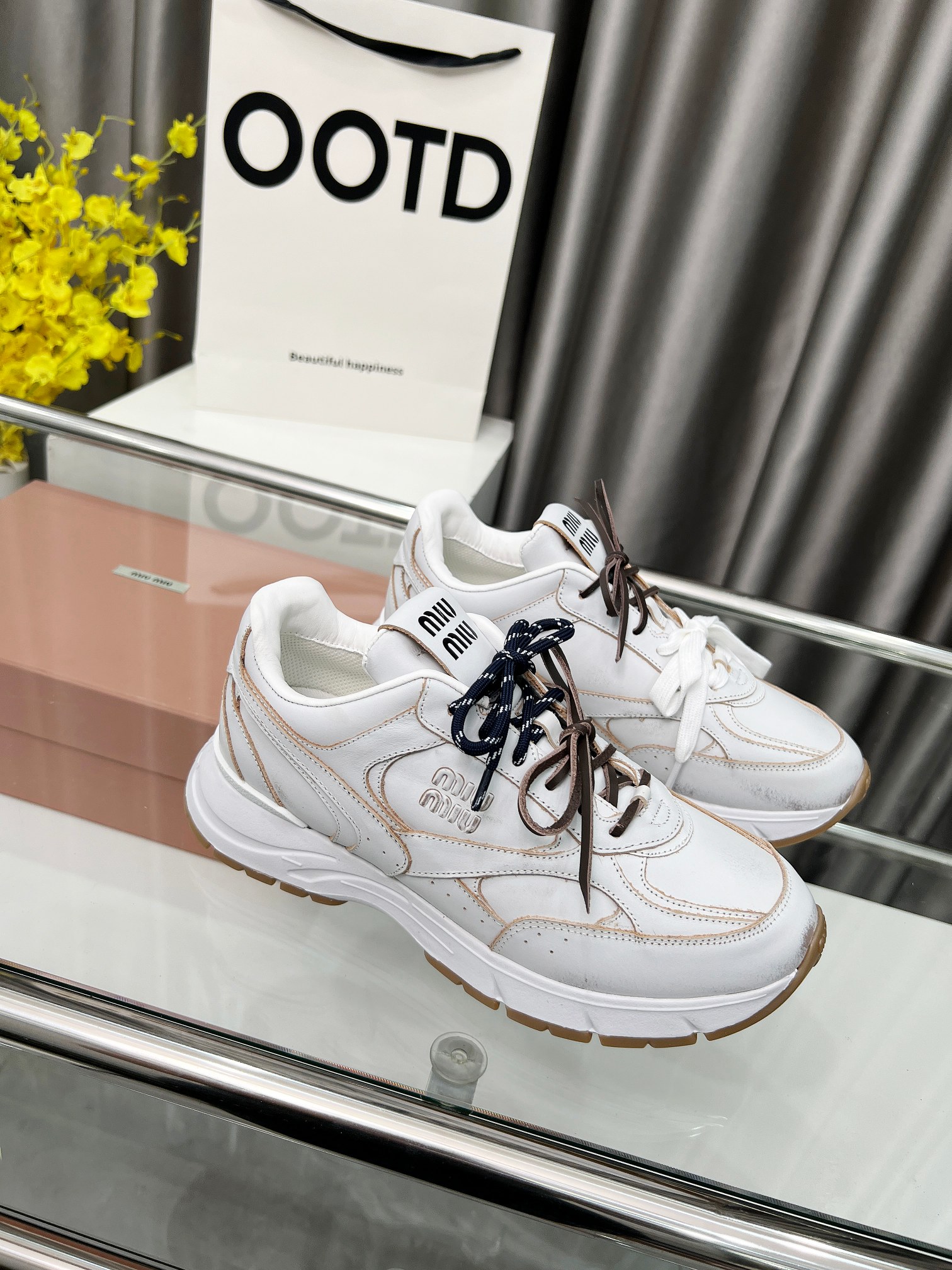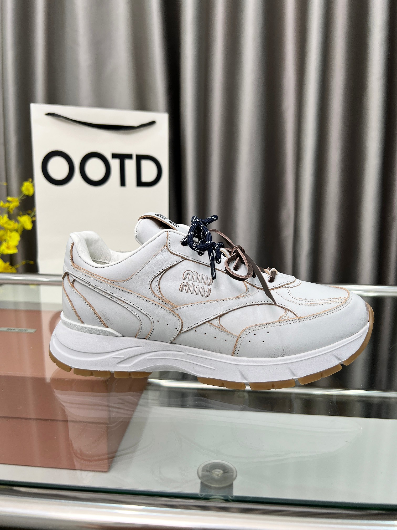 这款鞋子是AAAAA 1:1 质量 (非常棒). 使用了和原版一模一样的材料. 商标部分也保持了和缪缪/Miu Miu一样. 图片拍摄是实物鞋子拍摄, 您所收到的实物保证和我们图片一模一样.