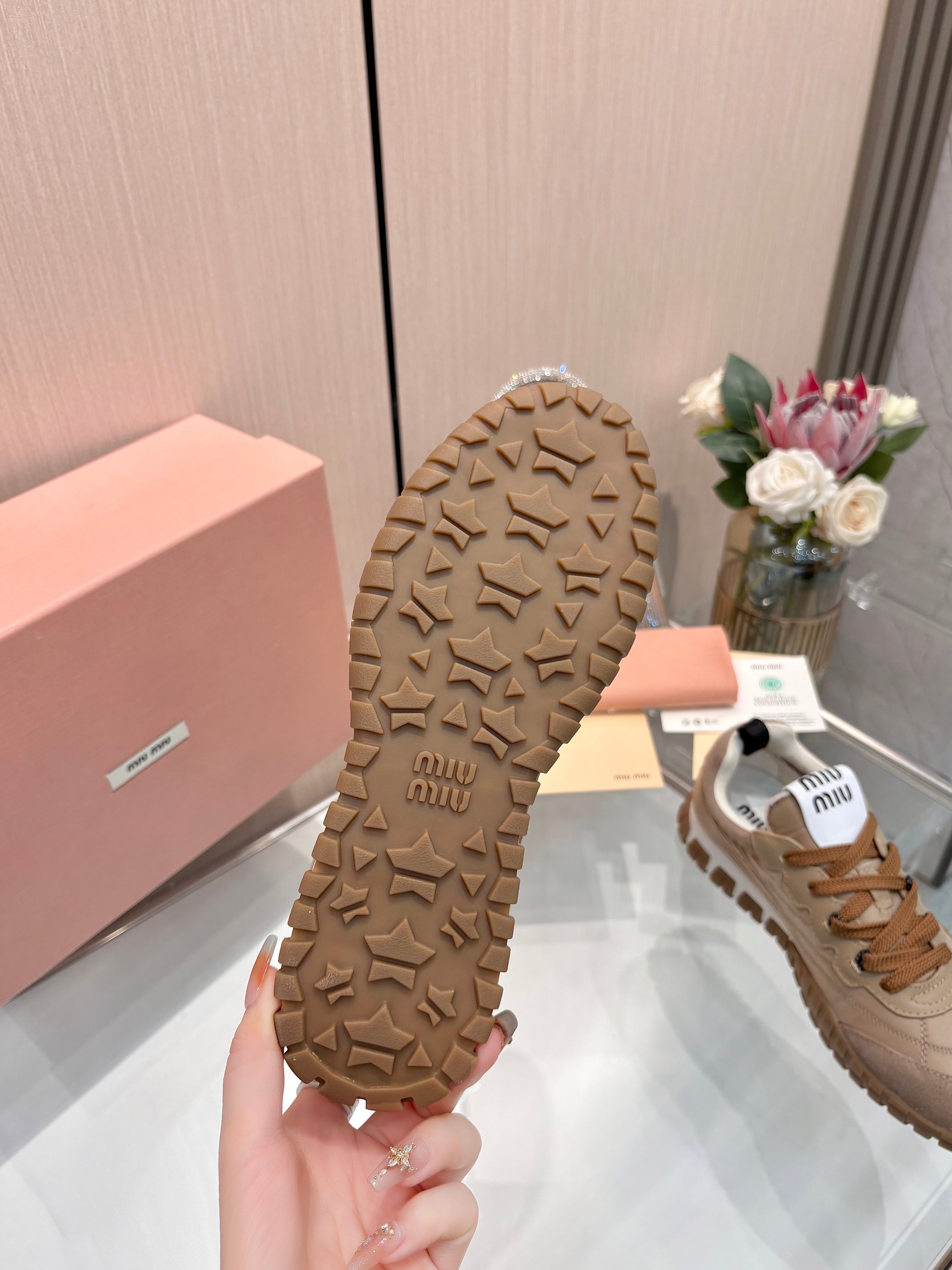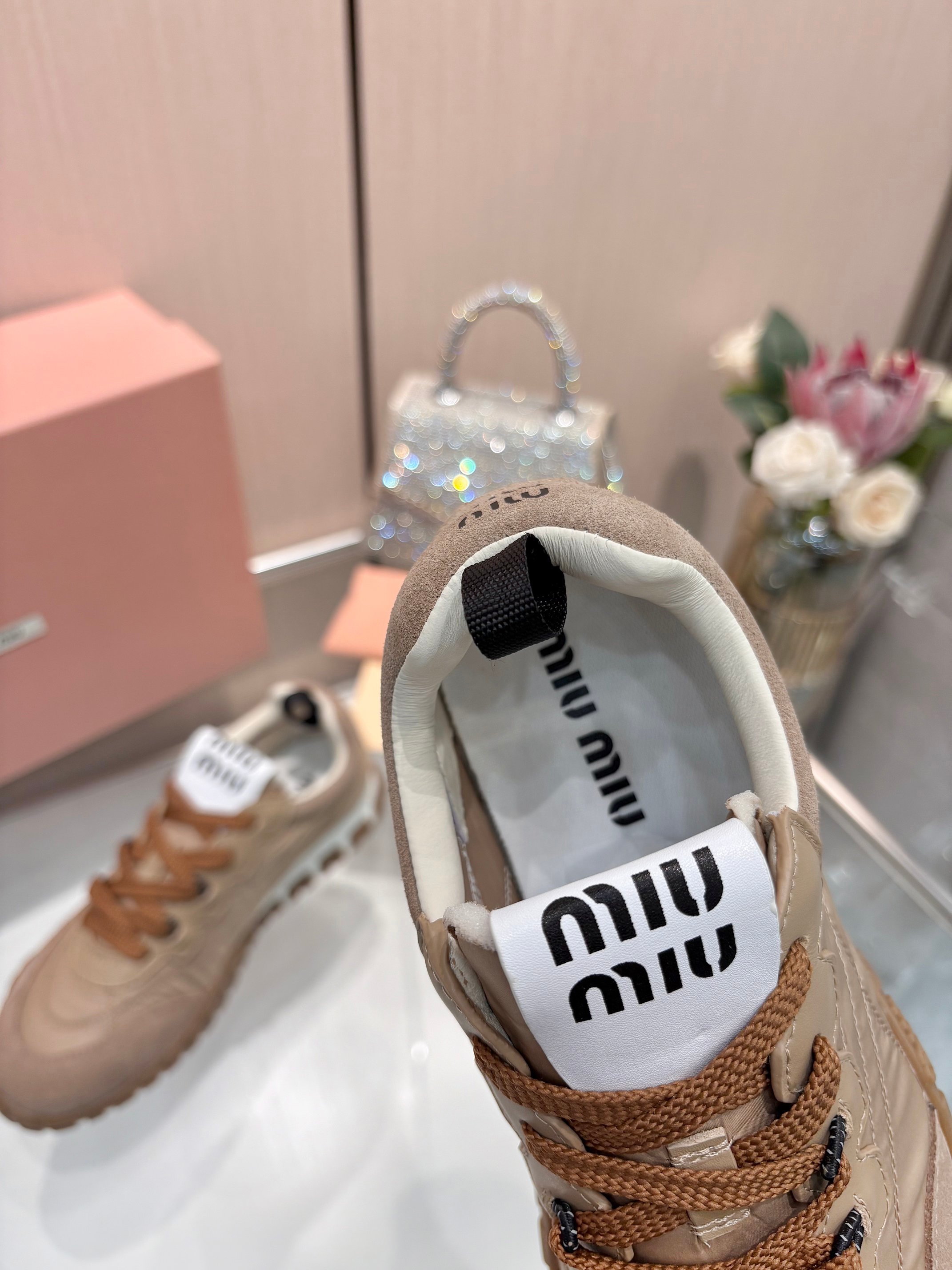 这款鞋子是AAAAA 1:1 质量 (非常棒). 使用了和原版一模一样的材料. 商标部分也保持了和缪缪/Miu Miu一样. 图片拍摄是实物鞋子拍摄, 您所收到的实物保证和我们图片一模一样.