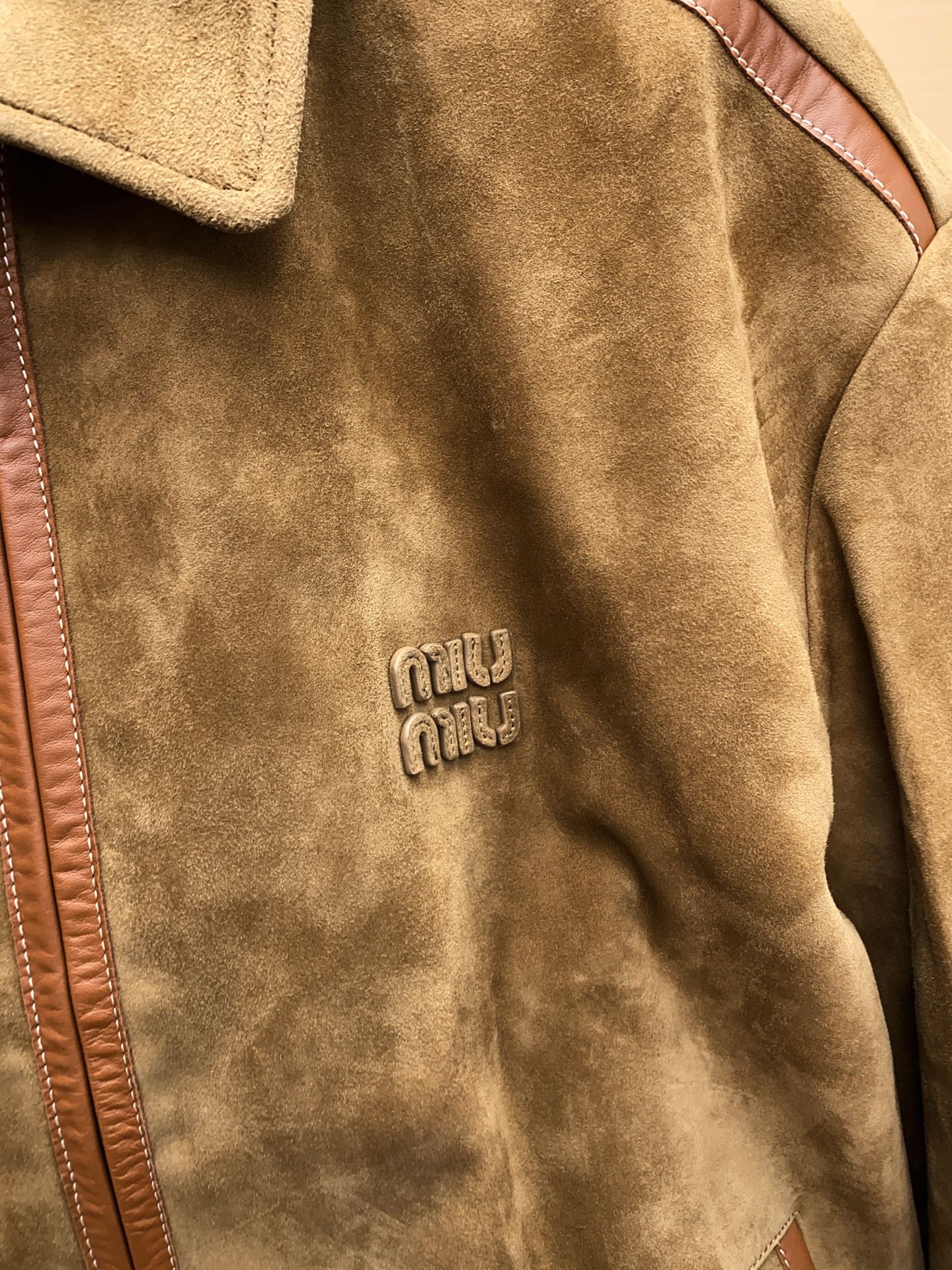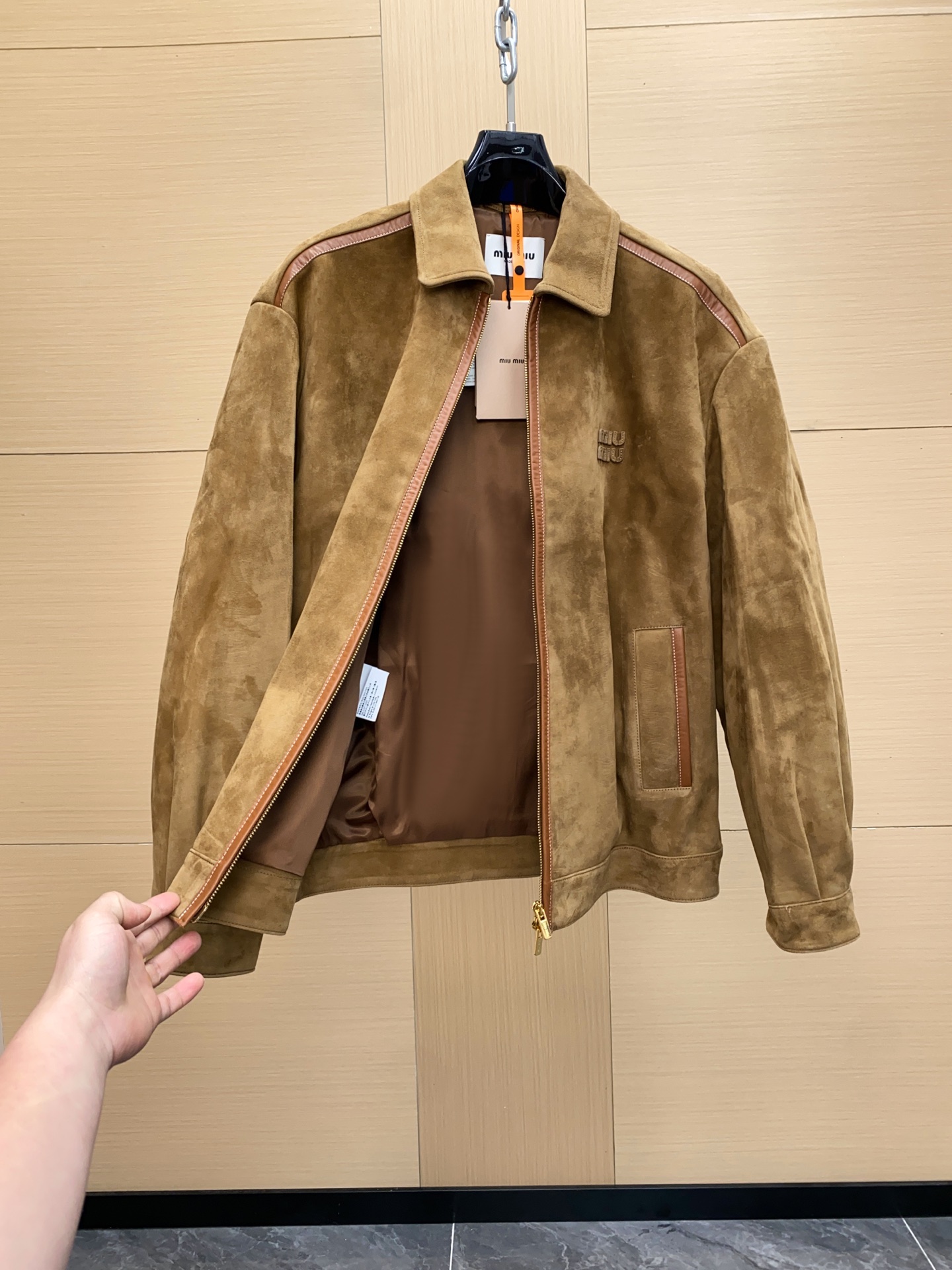 这款衣服是AAAAA 1:1 质量 (非常棒). 使用了和原版一模一样的材料. 商标部分也保持了和缪缪/Miu Miu一样. 图片拍摄是实物衣服拍摄, 您所收到的实物保证和我们图片一模一样.