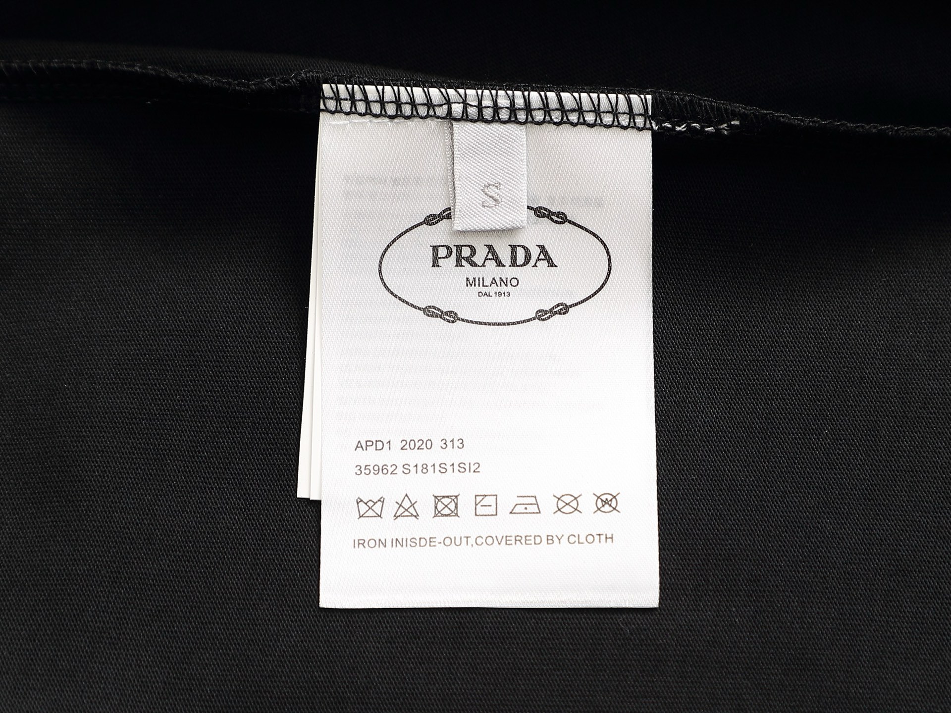 这款衣服是AAAAA 1:1 质量 (非常棒). 使用了和原版一模一样的材料. 商标部分也保持了和普拉达/Prada一样. 图片拍摄是实物衣服拍摄, 您所收到的实物保证和我们图片一模一样.