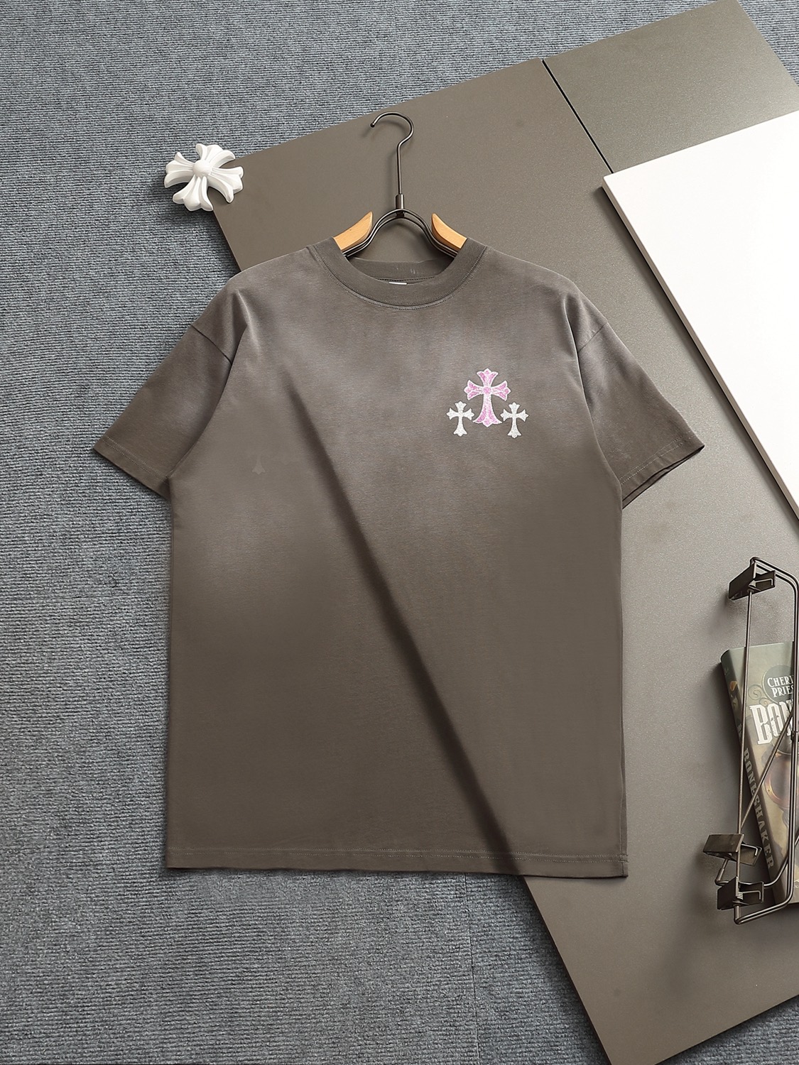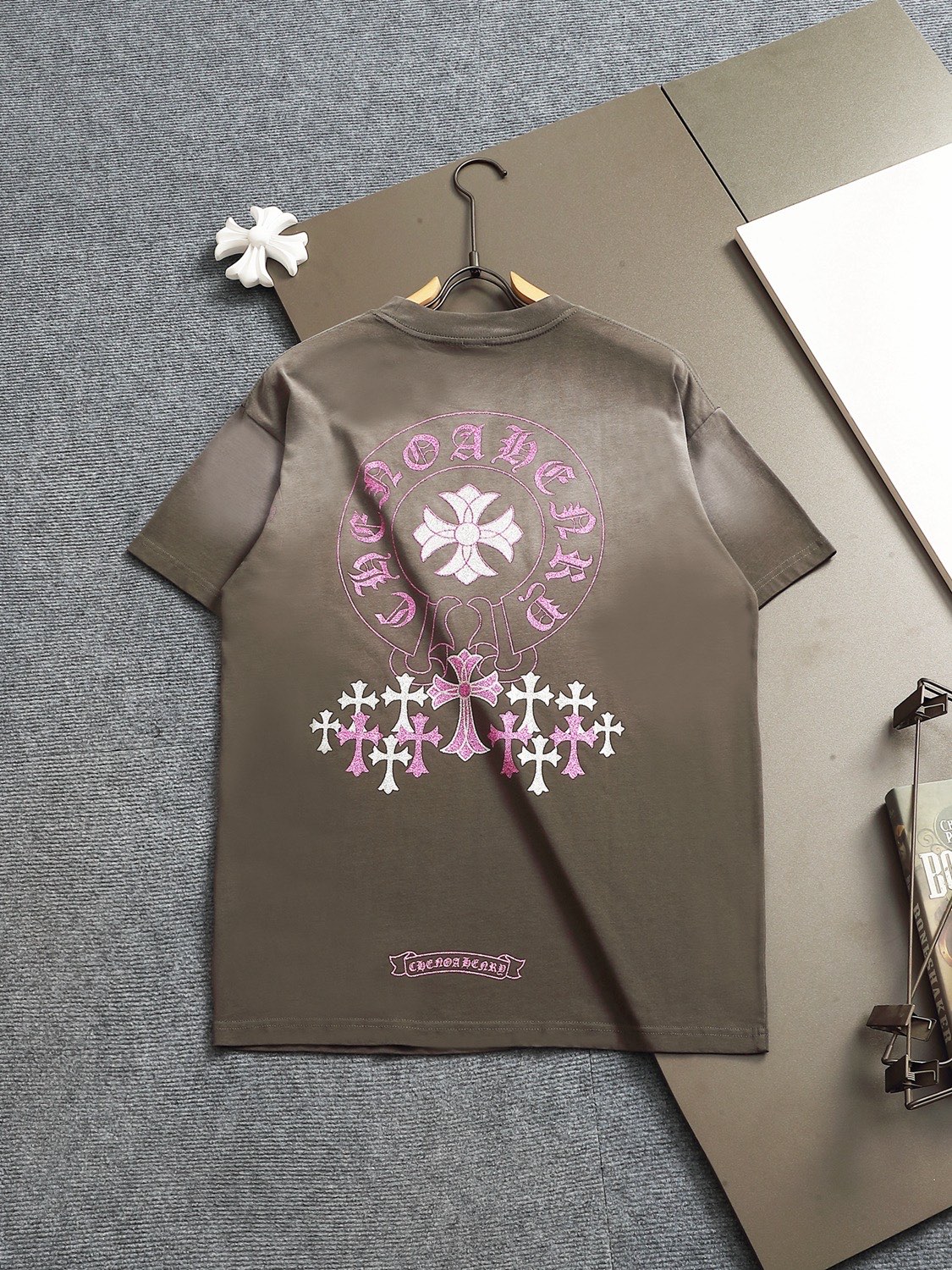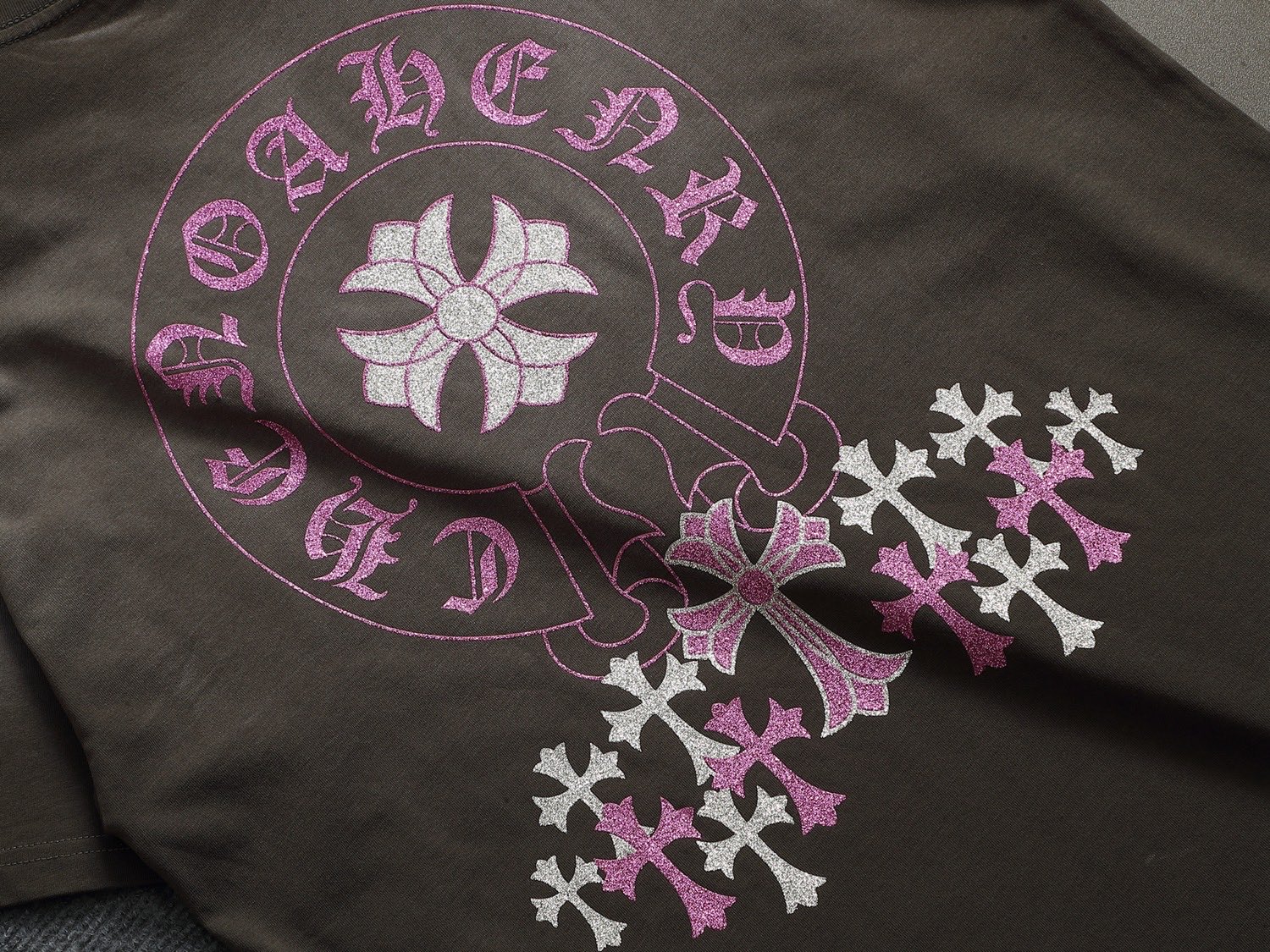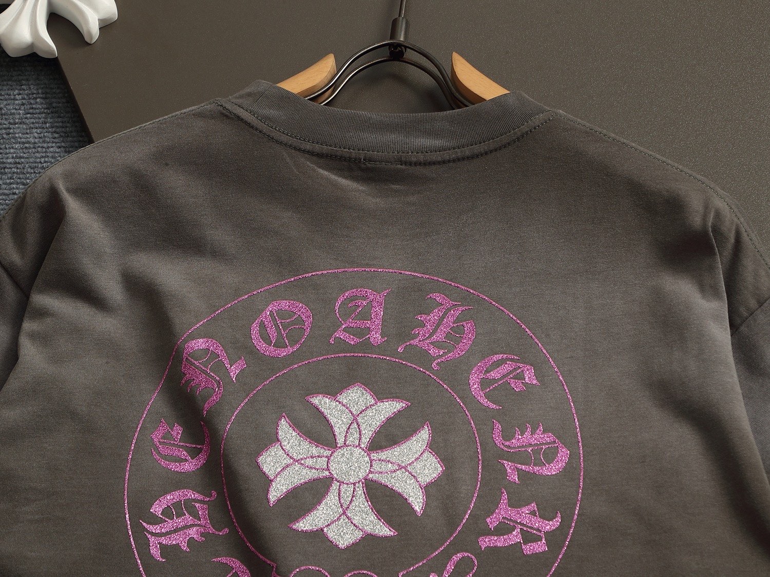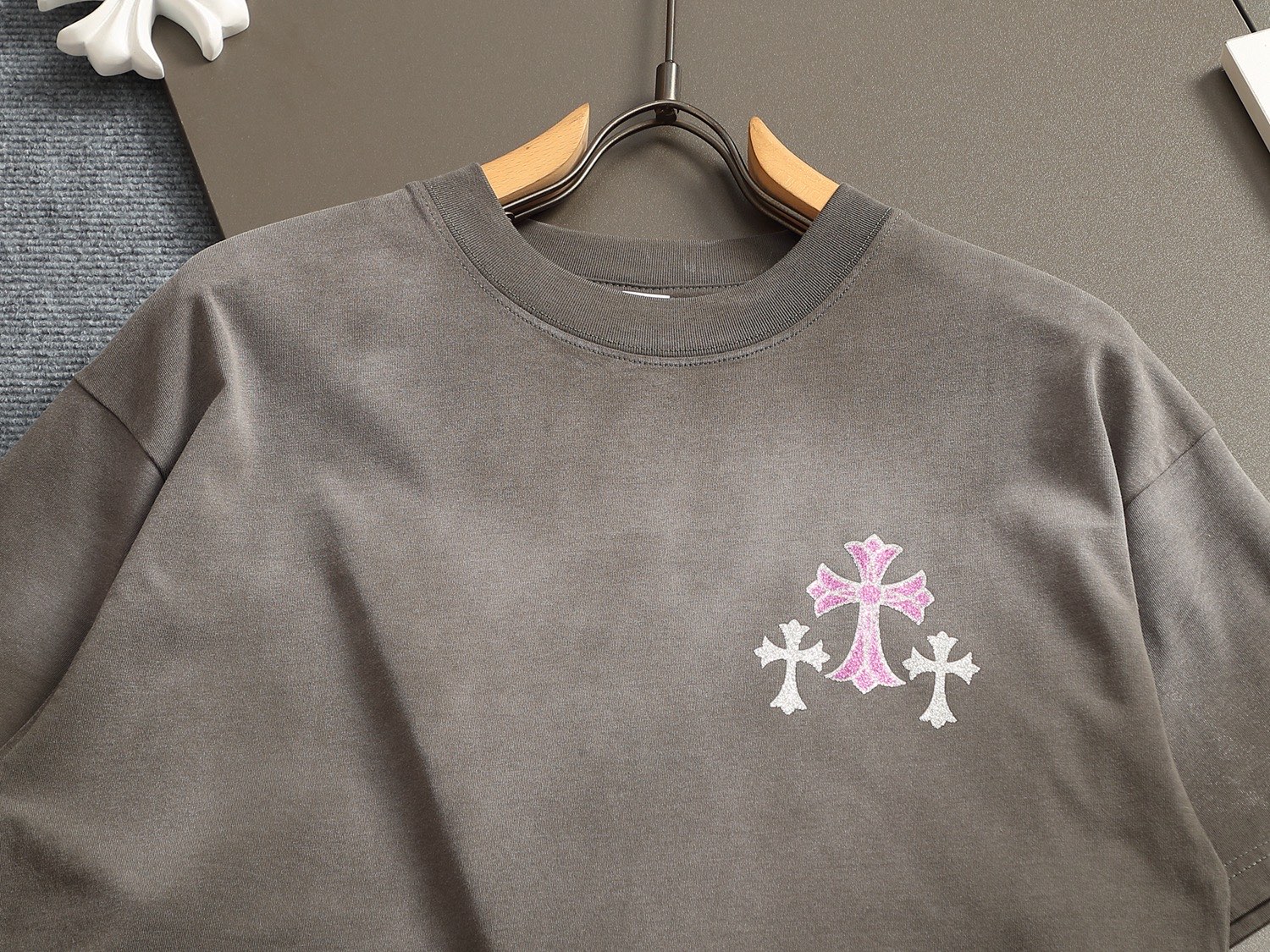 这款衣服是AAAAA 1:1 质量 (非常棒). 使用了和原版一模一样的材料. 商标部分也保持了和克罗心/Chrome Hearts一样. 图片拍摄是实物衣服拍摄, 您所收到的实物保证和我们图片一模一样.