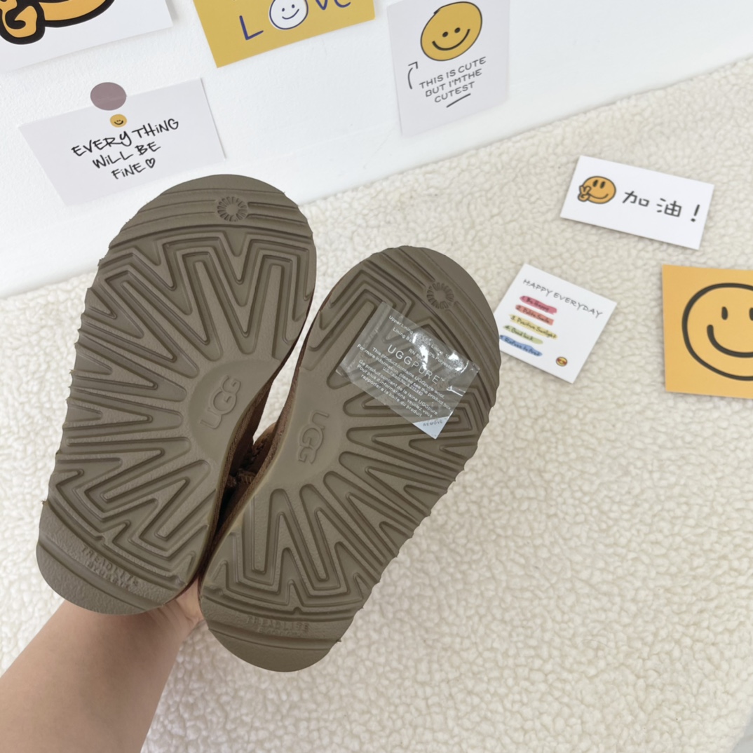 这款兒童鞋是AAAAA 1:1 质量 (非常棒). 使用了和原版一模一样的材料. 商标部分也保持了和UGG雪地靴一样. 图片拍摄是实物兒童鞋拍摄, 您所收到的实物保证和我们图片一模一样.