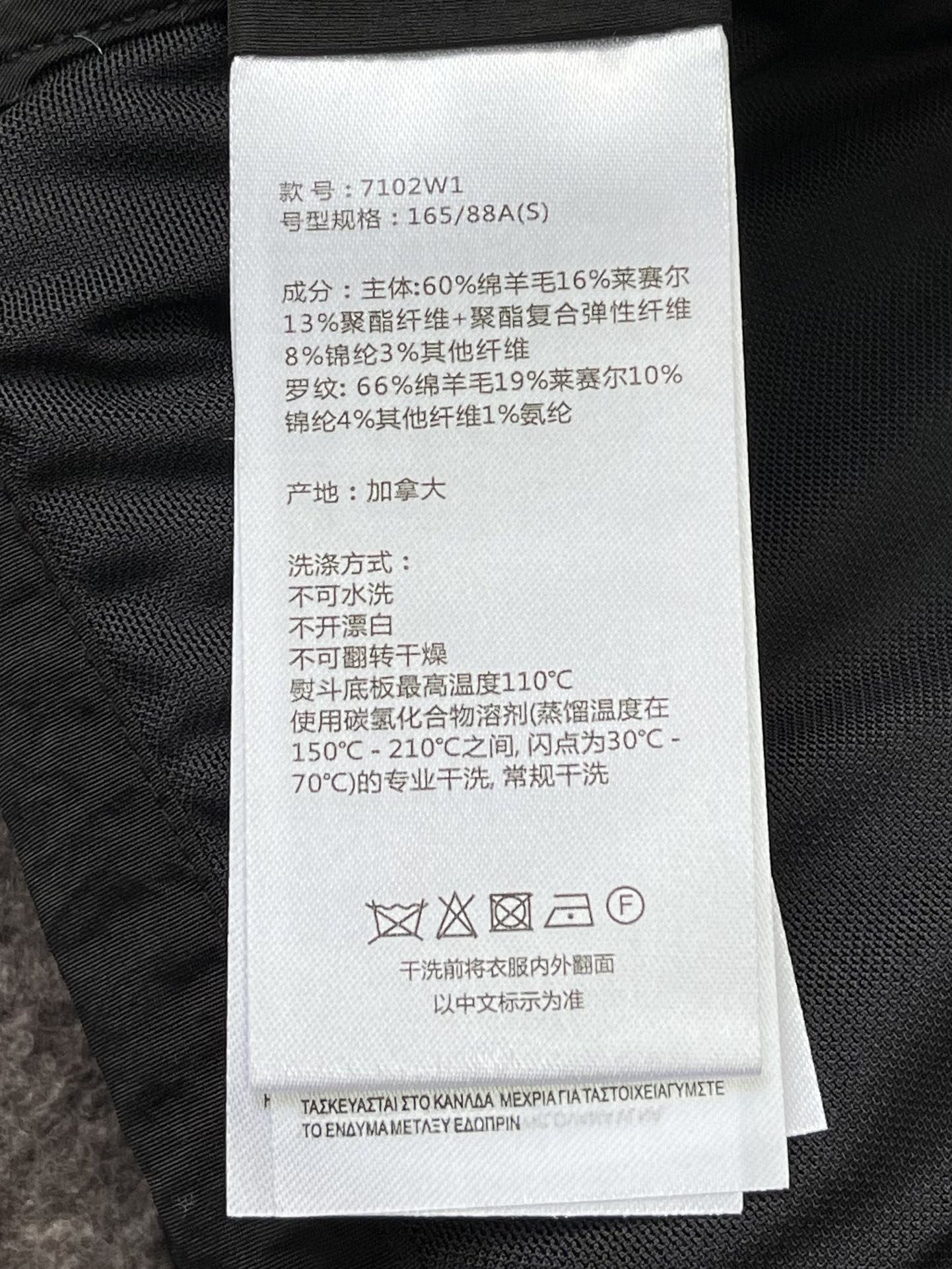这款衣服是AAAAA 1:1 质量 (非常棒). 使用了和原版一模一样的材料. 商标部分也保持了和Canada Goose一样. 图片拍摄是实物衣服拍摄, 您所收到的实物保证和我们图片一模一样.