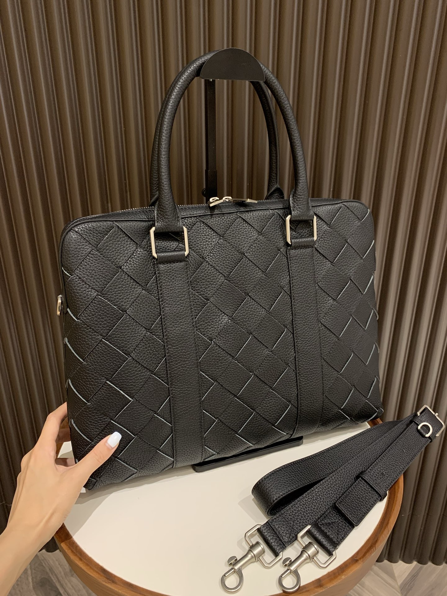这款包包是AAAAA 1:1 质量 (非常棒). 使用了和原版一模一样的材料. 商标部分也保持了和葆蝶家/Bottega Veneta一样. 图片拍摄是实物包包拍摄, 您所收到的实物保证和我们图片一模一样.