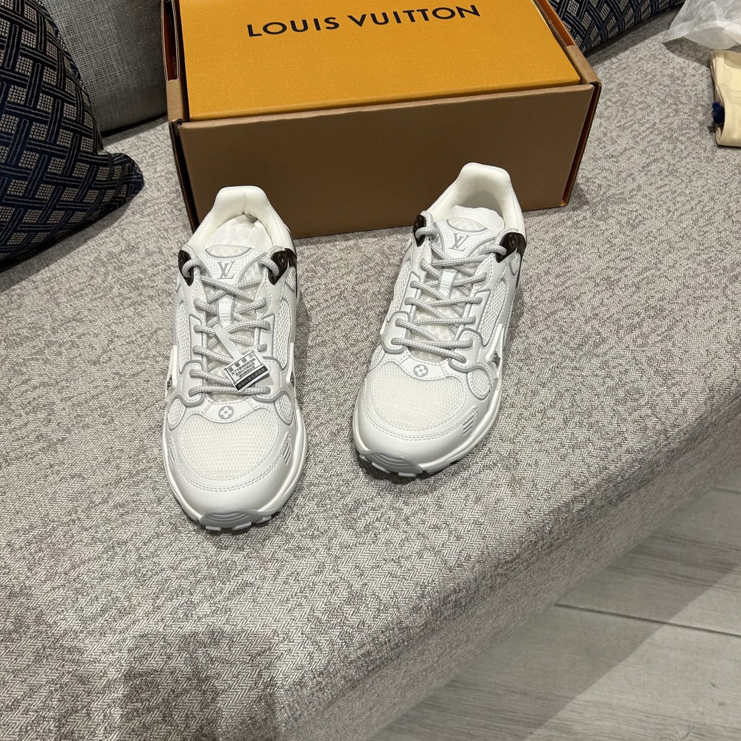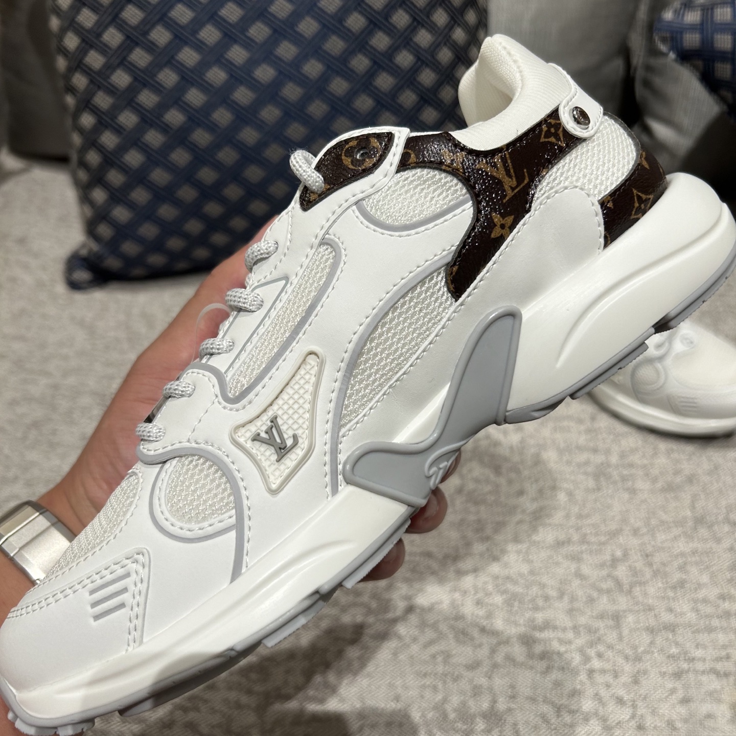 这款鞋子是AAAAA 1:1 质量 (非常棒). 使用了和原版一模一样的材料. 商标部分也保持了和路易威登/Louis Vuitton一样. 图片拍摄是实物鞋子拍摄, 您所收到的实物保证和我们图片一模一样.