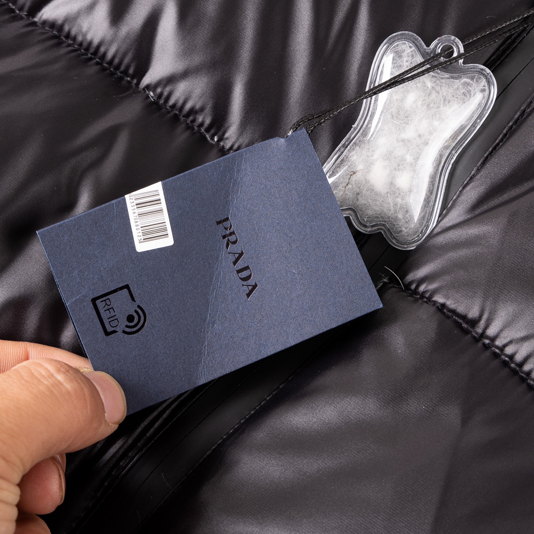 这款衣服是AAAAA 1:1 质量 (非常棒). 使用了和原版一模一样的材料. 商标部分也保持了和普拉达/Prada一样. 图片拍摄是实物衣服拍摄, 您所收到的实物保证和我们图片一模一样.