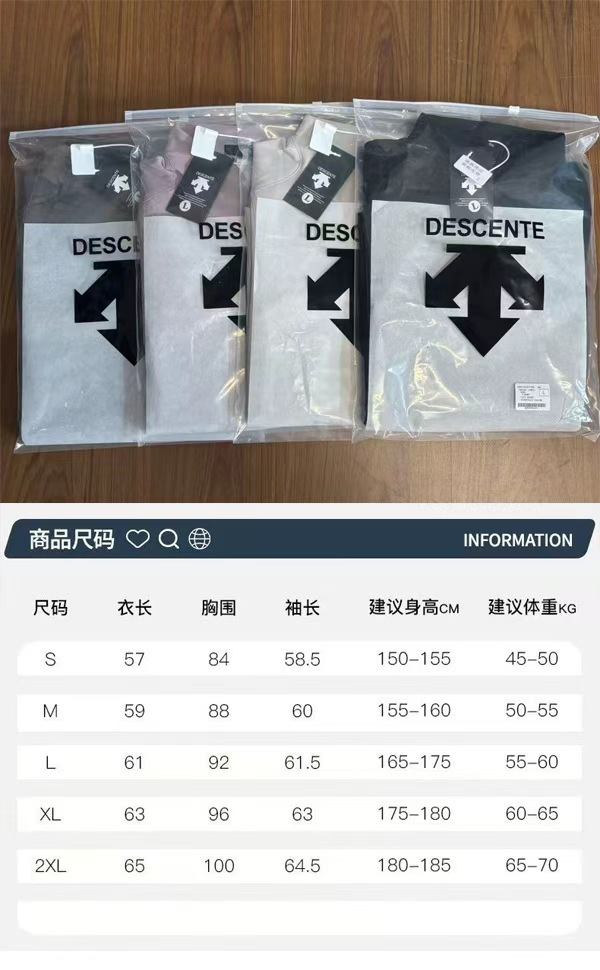 这款衣服是AAAAA 1:1 质量 (非常棒). 使用了和原版一模一样的材料. 商标部分也保持了和Descente一样. 图片拍摄是实物衣服拍摄, 您所收到的实物保证和我们图片一模一样.