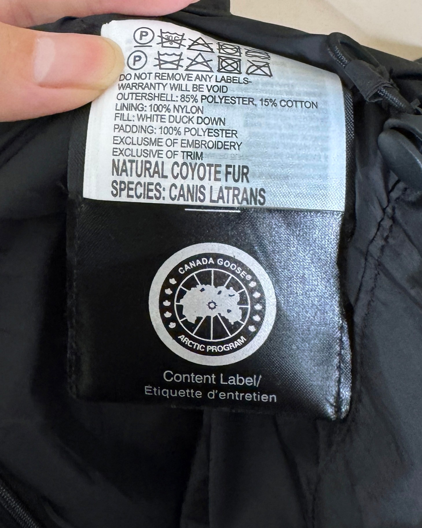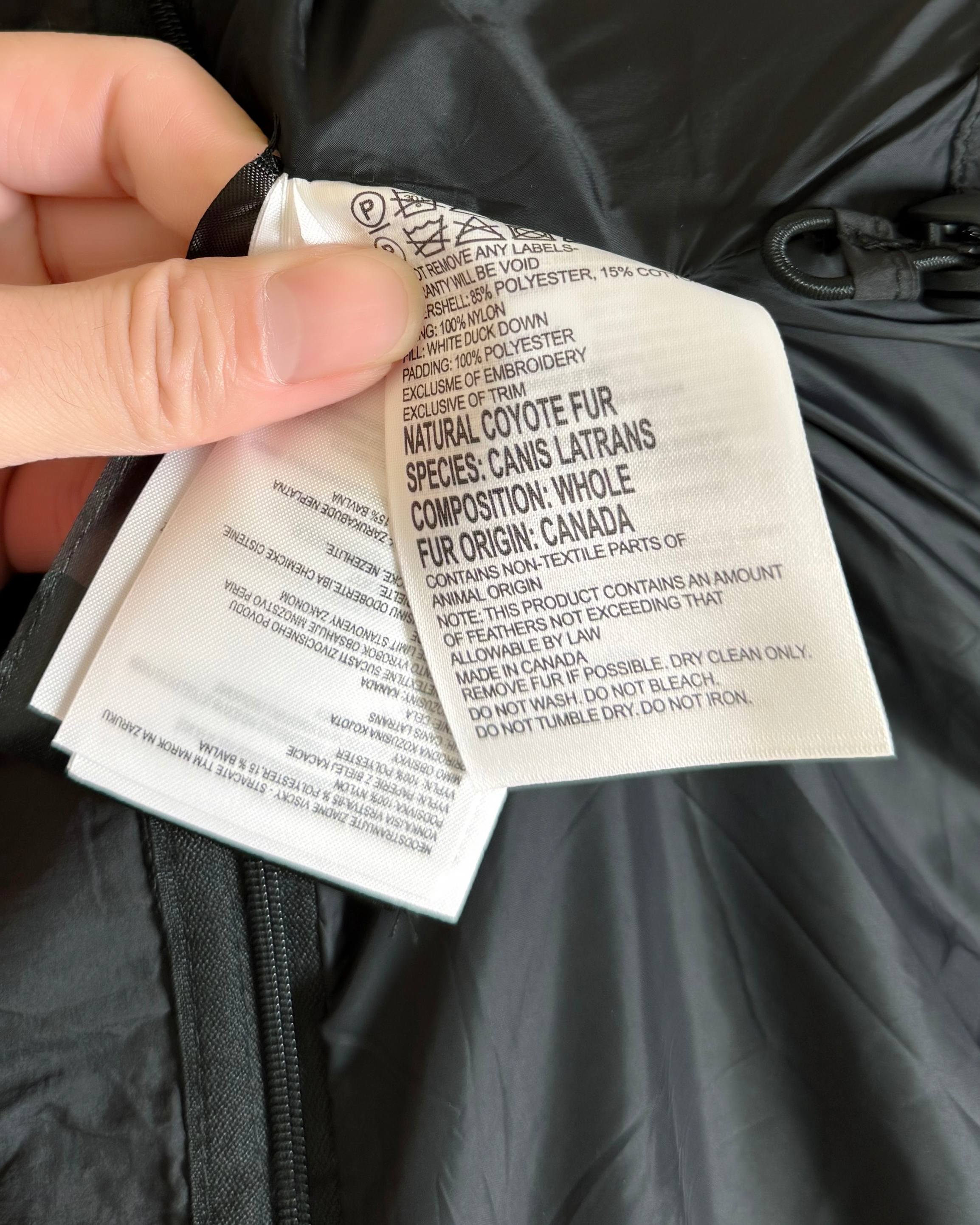 这款衣服是AAAAA 1:1 质量 (非常棒). 使用了和原版一模一样的材料. 商标部分也保持了和Canada Goose一样. 图片拍摄是实物衣服拍摄, 您所收到的实物保证和我们图片一模一样.