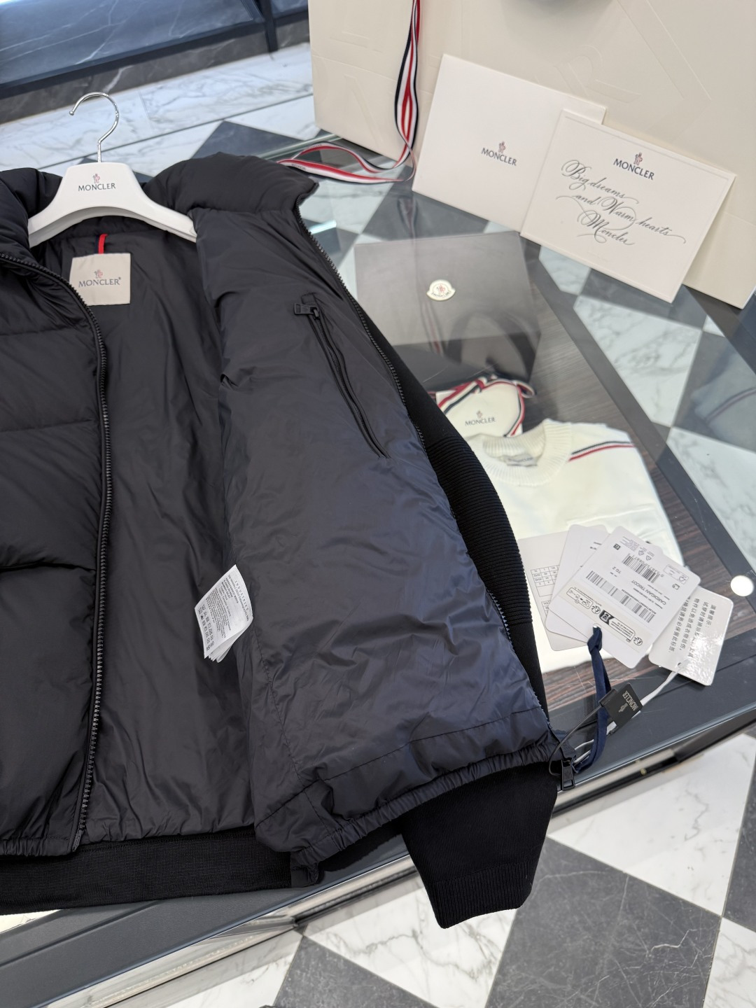 这款衣服是AAAAA 1:1 质量 (非常棒). 使用了和原版一模一样的材料. 商标部分也保持了和盟可睐/moncler一样. 图片拍摄是实物衣服拍摄, 您所收到的实物保证和我们图片一模一样.