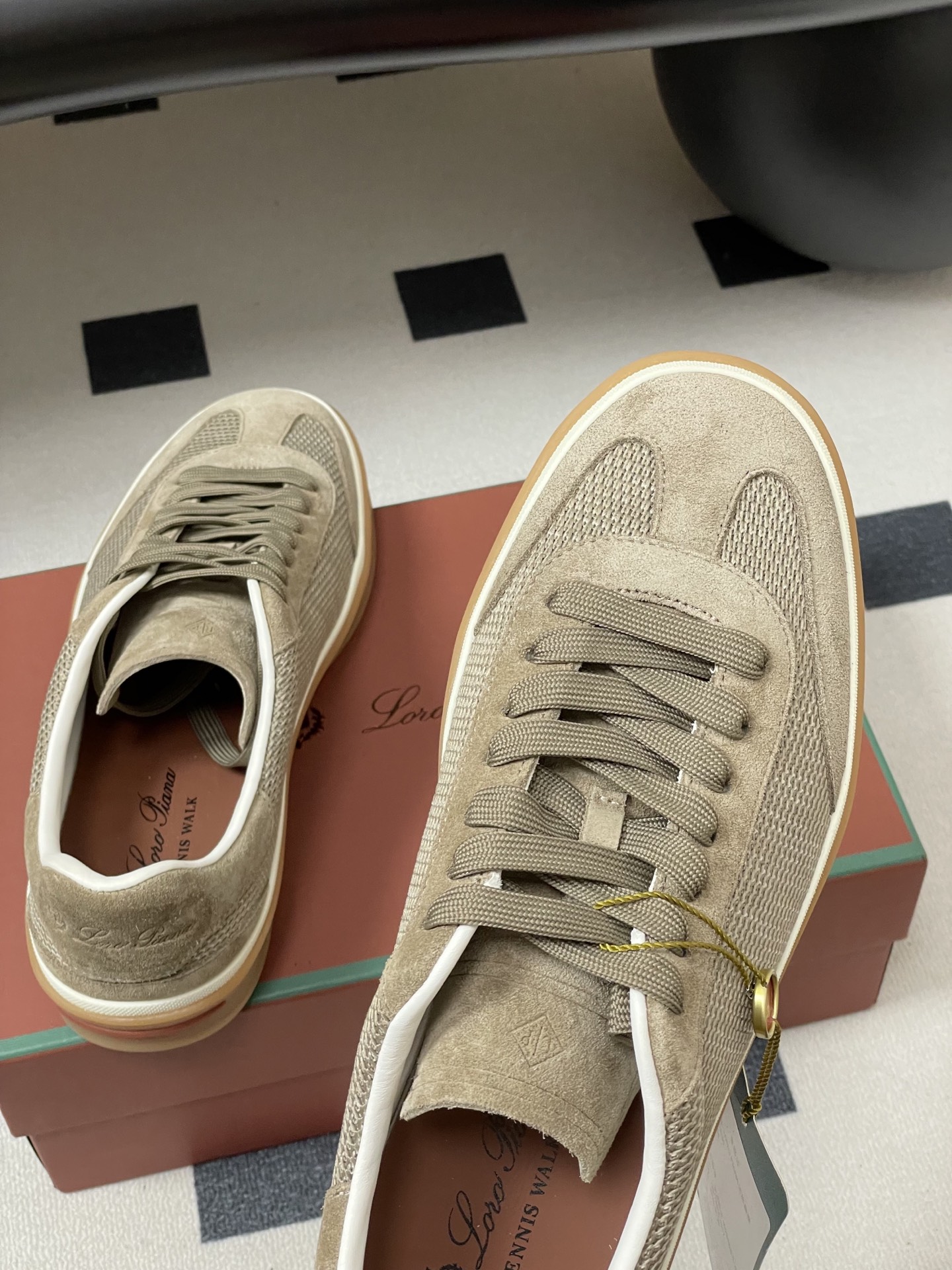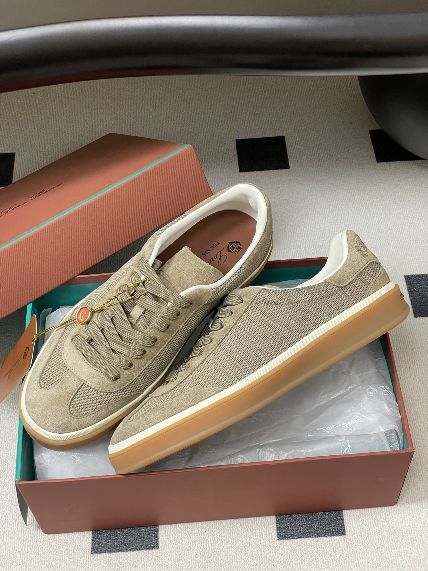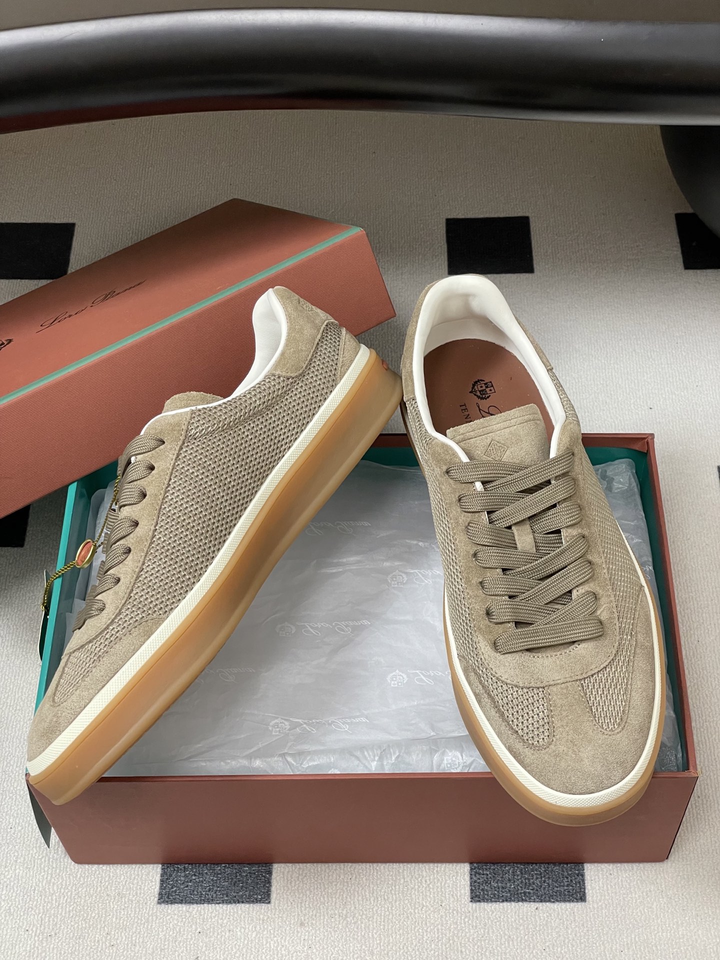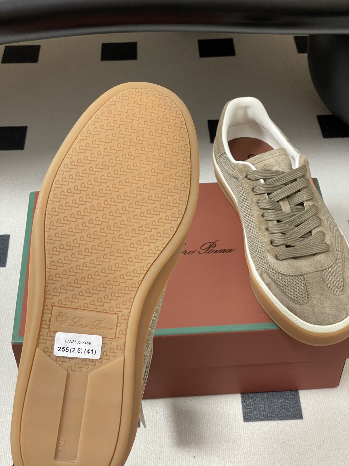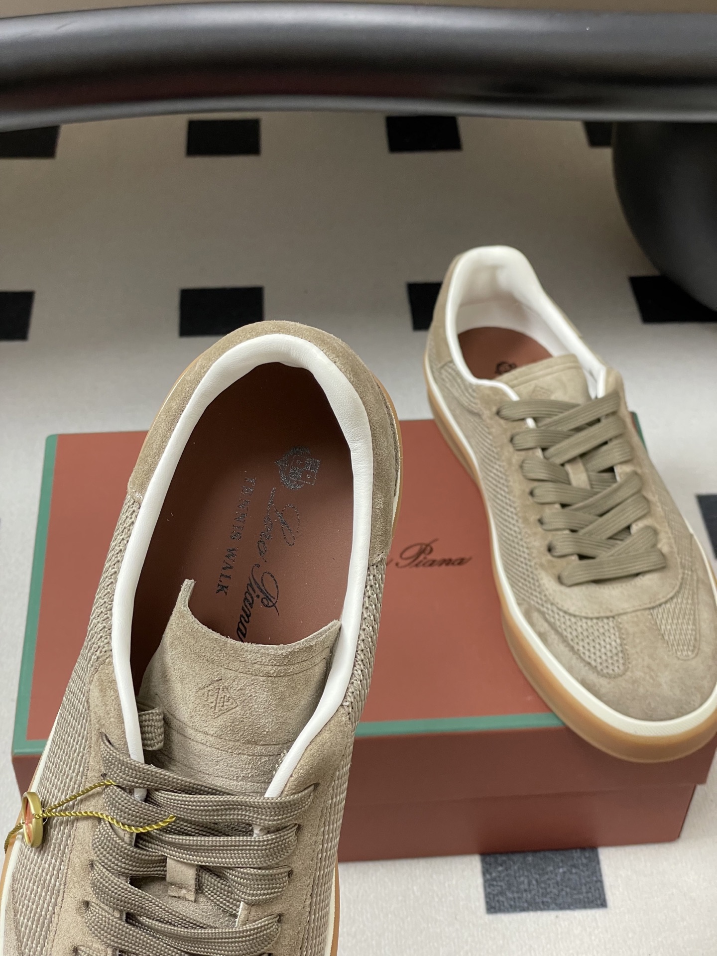 这款鞋子是AAAAA 1:1 质量 (非常棒). 使用了和原版一模一样的材料. 商标部分也保持了和洛罗皮亚纳/Loro Piana一样. 图片拍摄是实物鞋子拍摄, 您所收到的实物保证和我们图片一模一样.