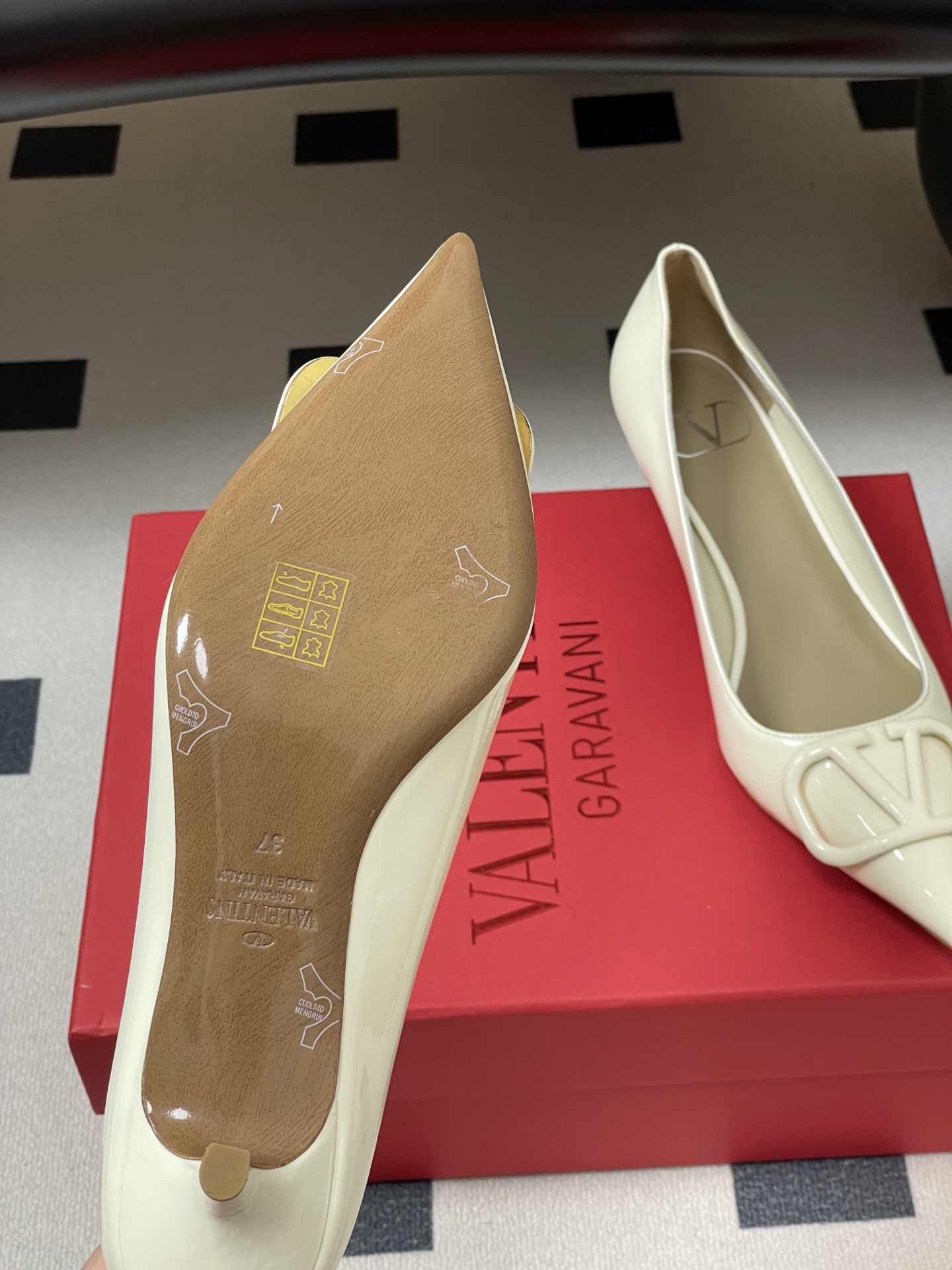 这款鞋子是AAAAA 1:1 质量 (非常棒). 使用了和原版一模一样的材料. 商标部分也保持了和华伦天奴/Valentino一样. 图片拍摄是实物鞋子拍摄, 您所收到的实物保证和我们图片一模一样.