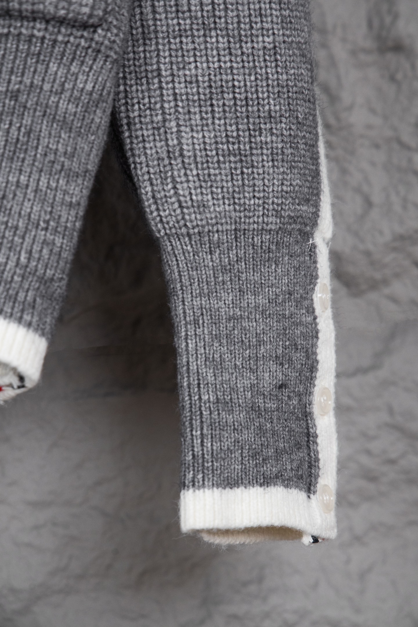 这款衣服是AAAAA 1:1 质量 (非常棒). 使用了和原版一模一样的材料. 商标部分也保持了和汤姆布朗/Thom Browne一样. 图片拍摄是实物衣服拍摄, 您所收到的实物保证和我们图片一模一样.