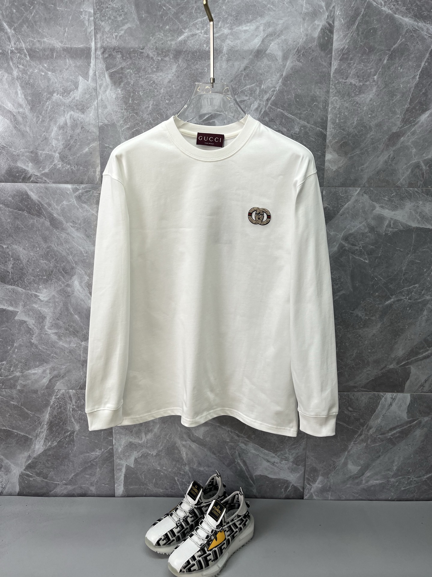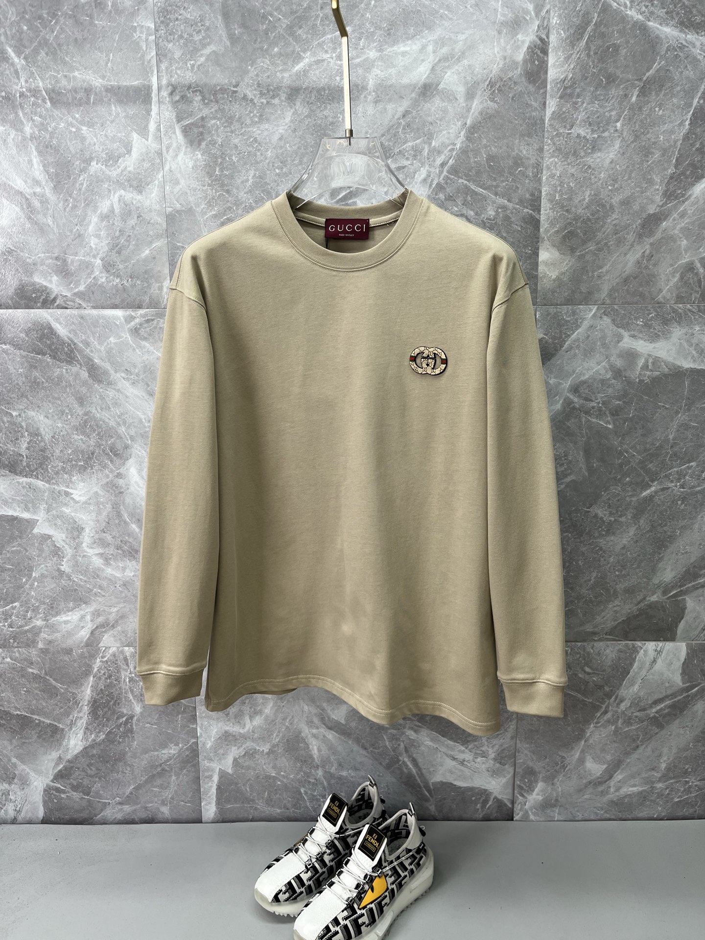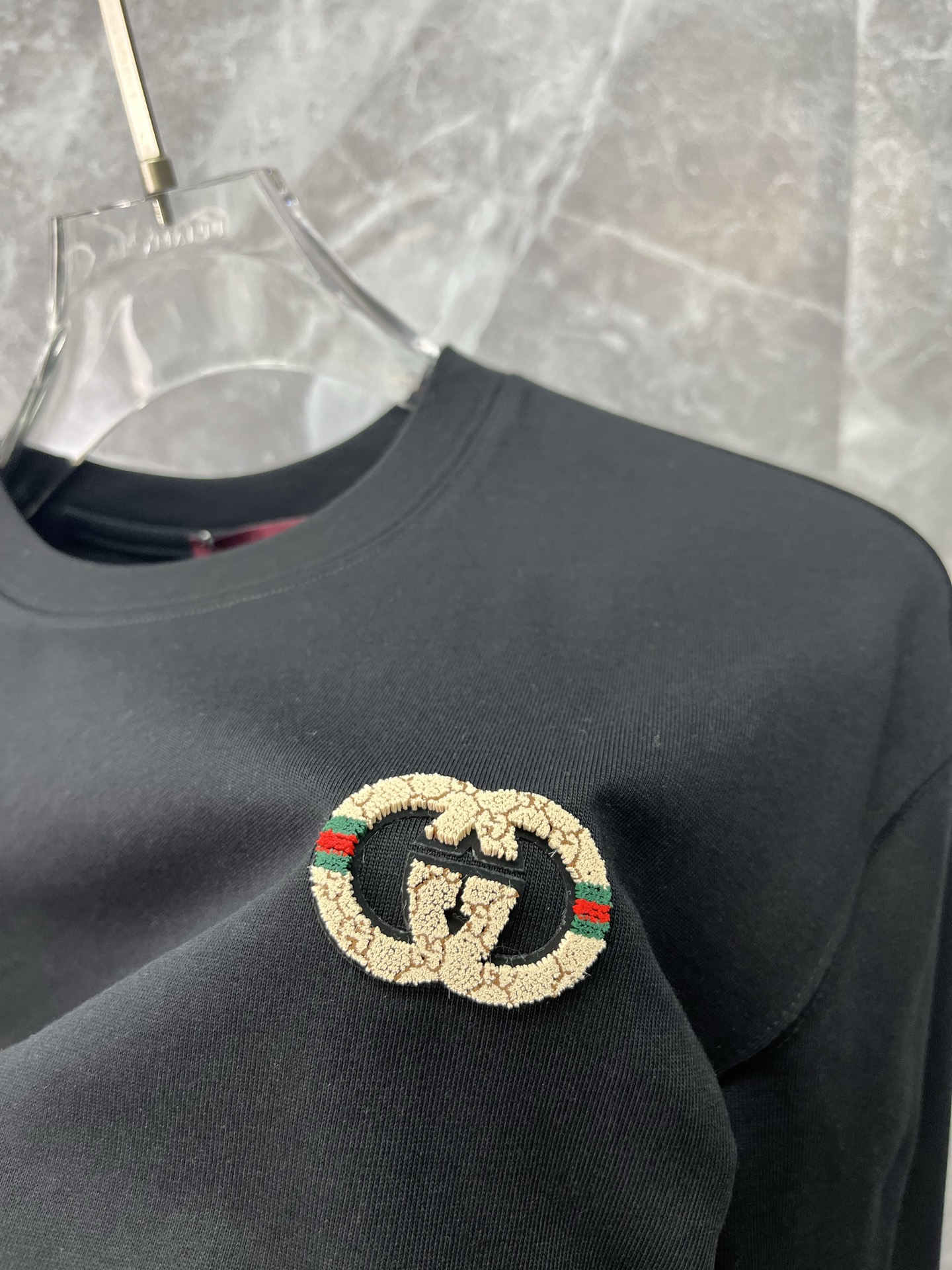 这款衣服是AAAAA 1:1 质量 (非常棒). 使用了和原版一模一样的材料. 商标部分也保持了和古奇/Gucci一样. 图片拍摄是实物衣服拍摄, 您所收到的实物保证和我们图片一模一样.