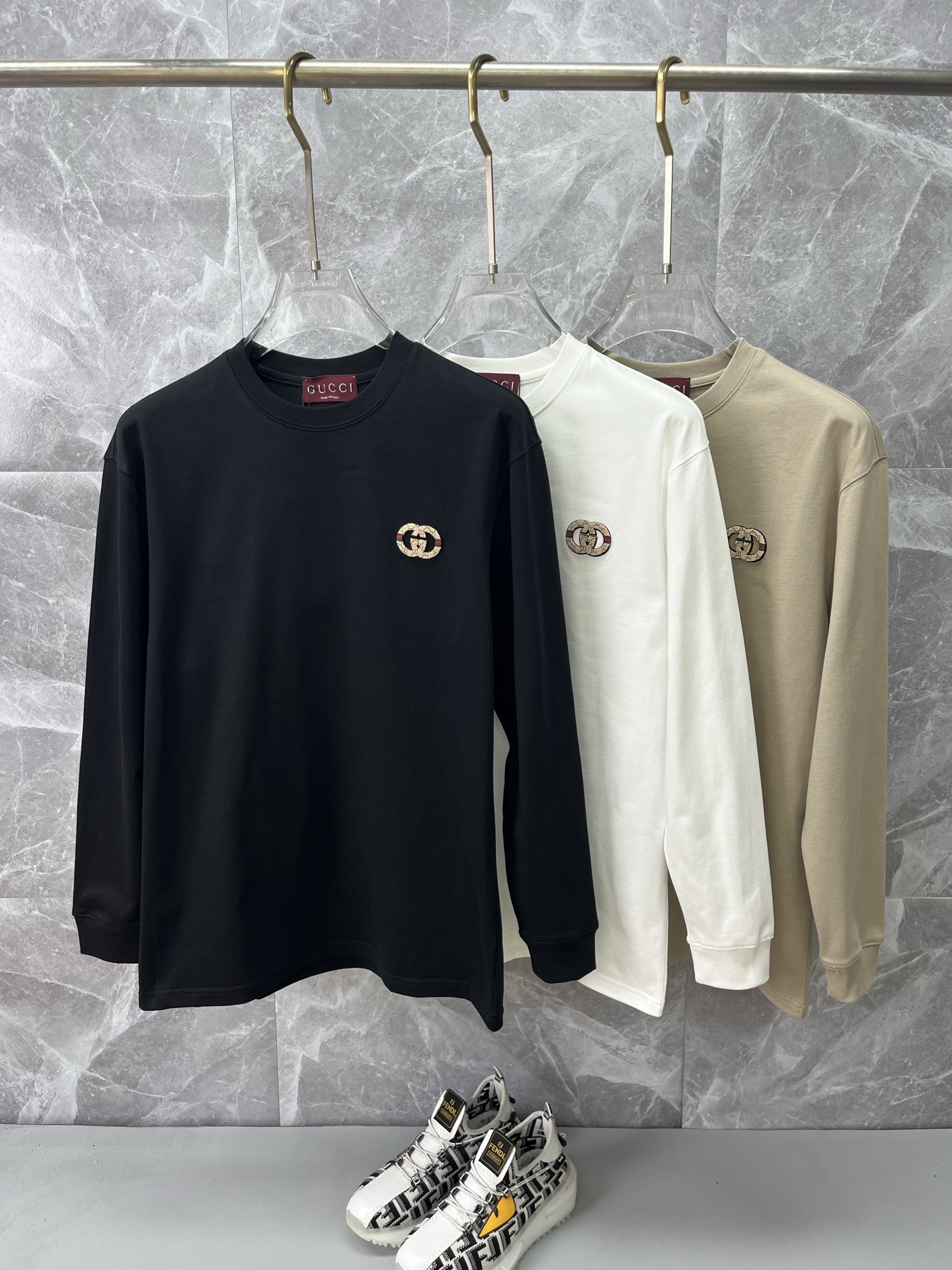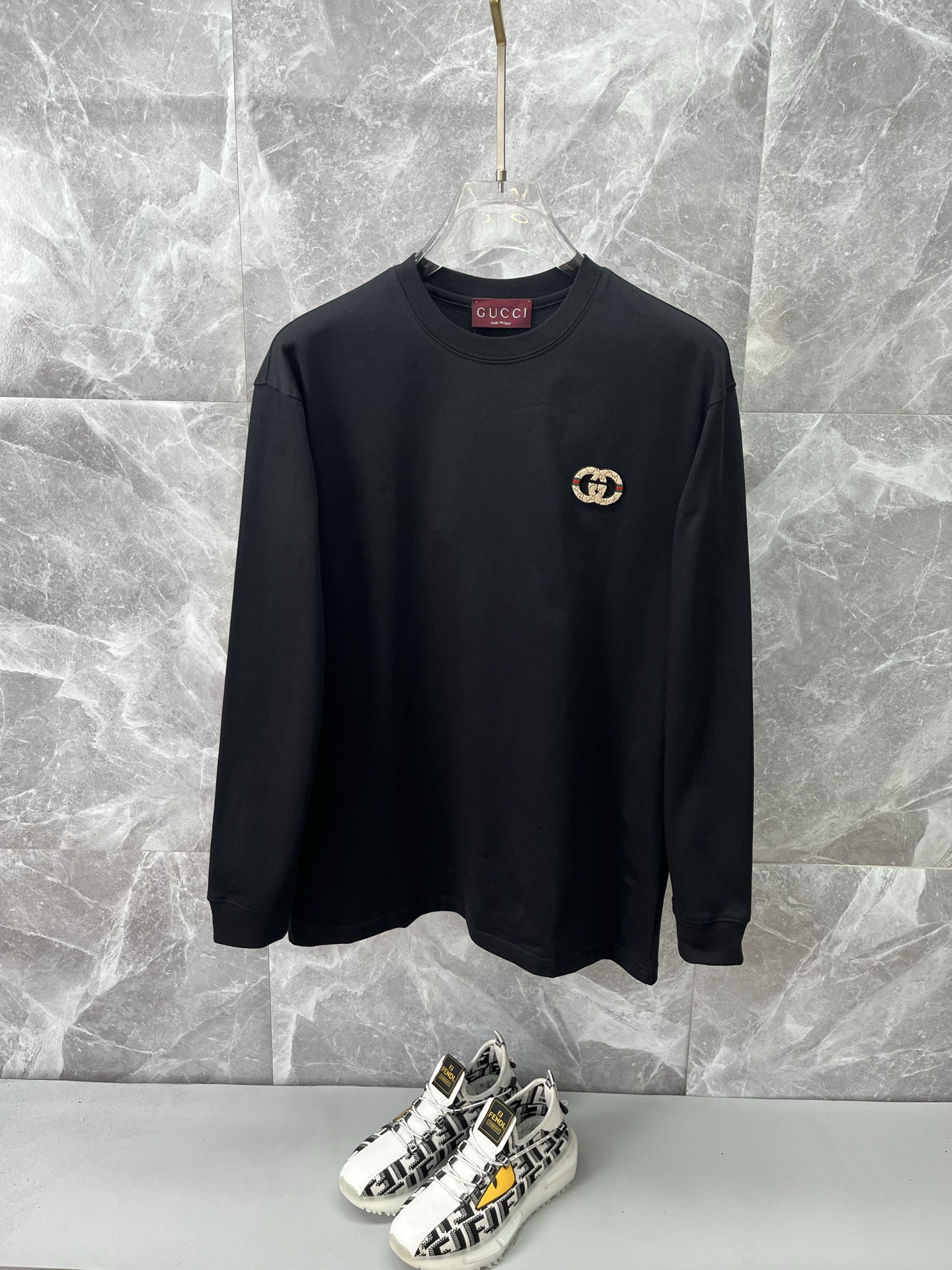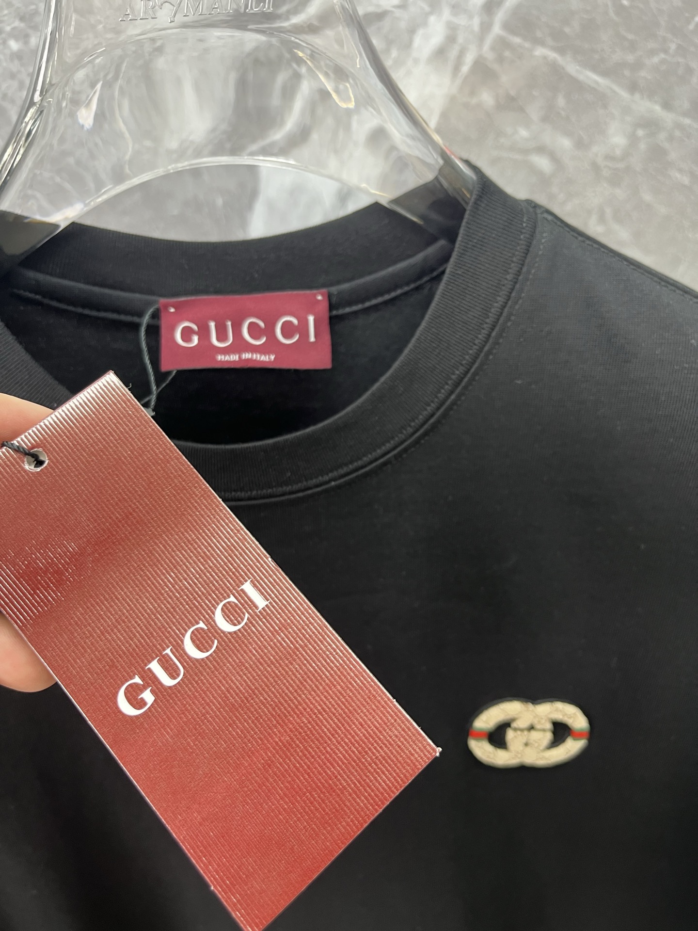 这款衣服是AAAAA 1:1 质量 (非常棒). 使用了和原版一模一样的材料. 商标部分也保持了和古奇/Gucci一样. 图片拍摄是实物衣服拍摄, 您所收到的实物保证和我们图片一模一样.
